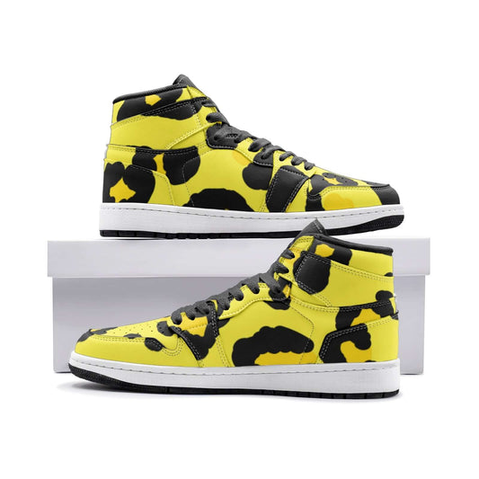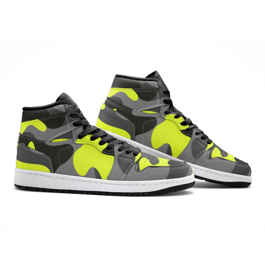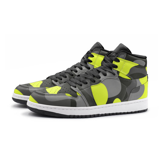 Camo Sneakers AJ1 Style | High-Top | Yellow, Black & Gray Camouflage