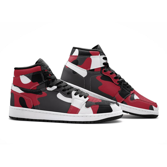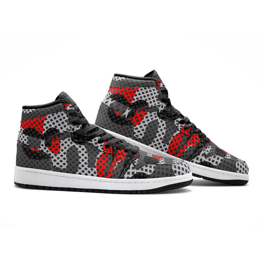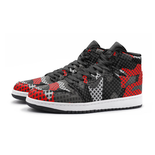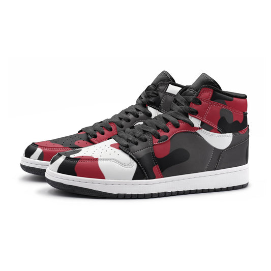 Red Camo Sneakers AJ1 Style | High Top Leather | Black and Gray Pixel