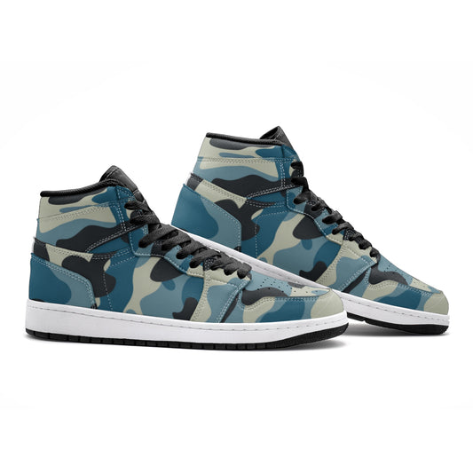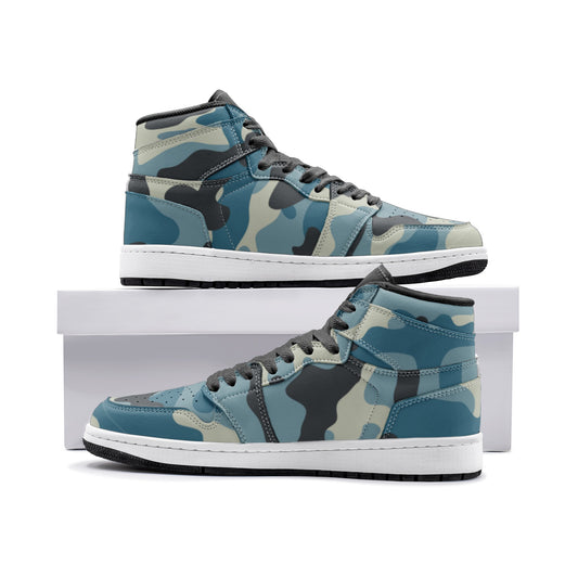 Military Blue Camo Sneakers AJ1 Style | High Top Leather