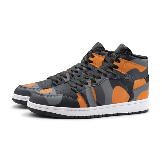 Camo Sneakers AJ1 Style | High-Top | Orange, Black & Gray Camouflage