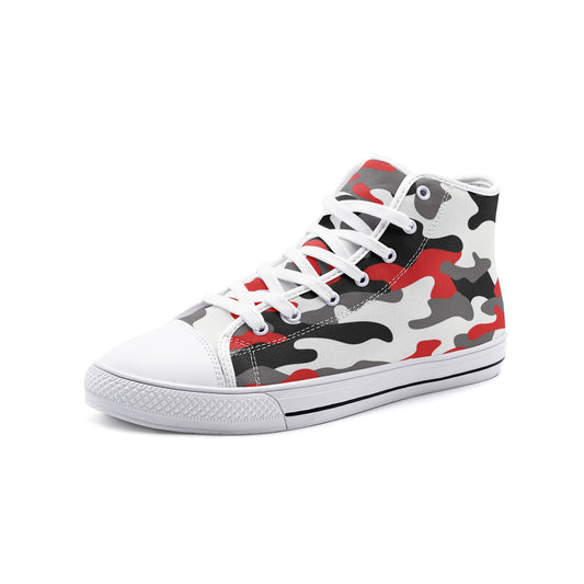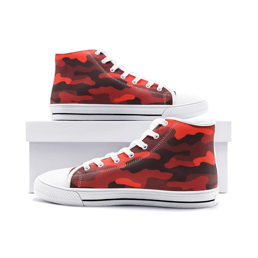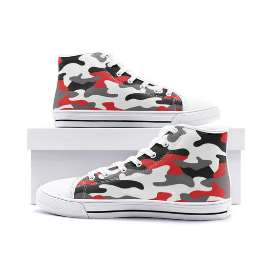Camo Shoes | High Top Canvas | Red, Black, and White