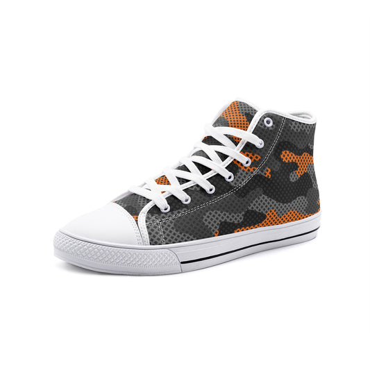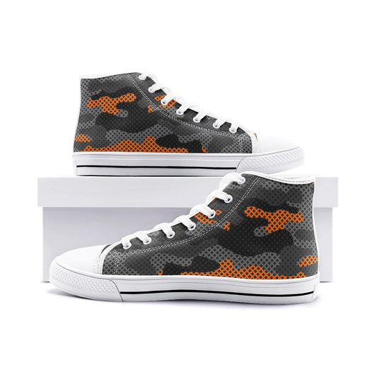 Camo Shoes | HIgh Top Canvas | Orange, Black, and Gray