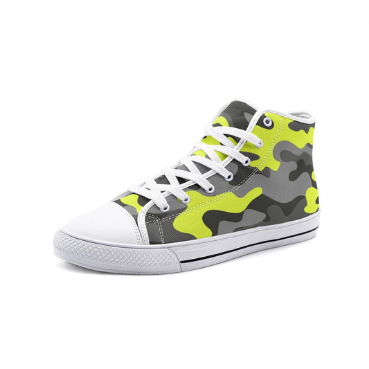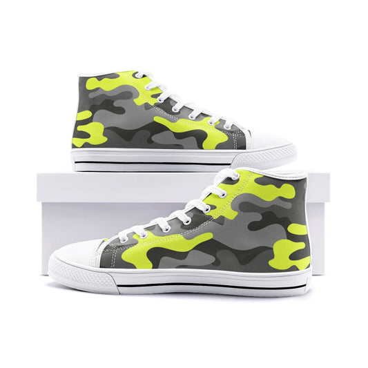 Camo Shoes | HIgh Top Canvas | Yellow, Black, and Gray