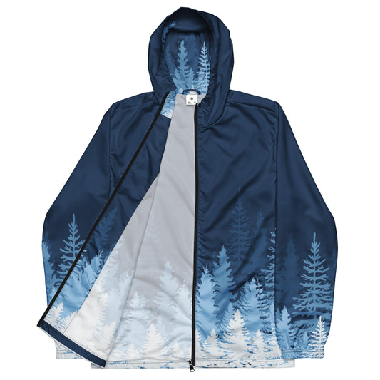 Men's Windbreaker in Blue & White Winter Pine Forest Print