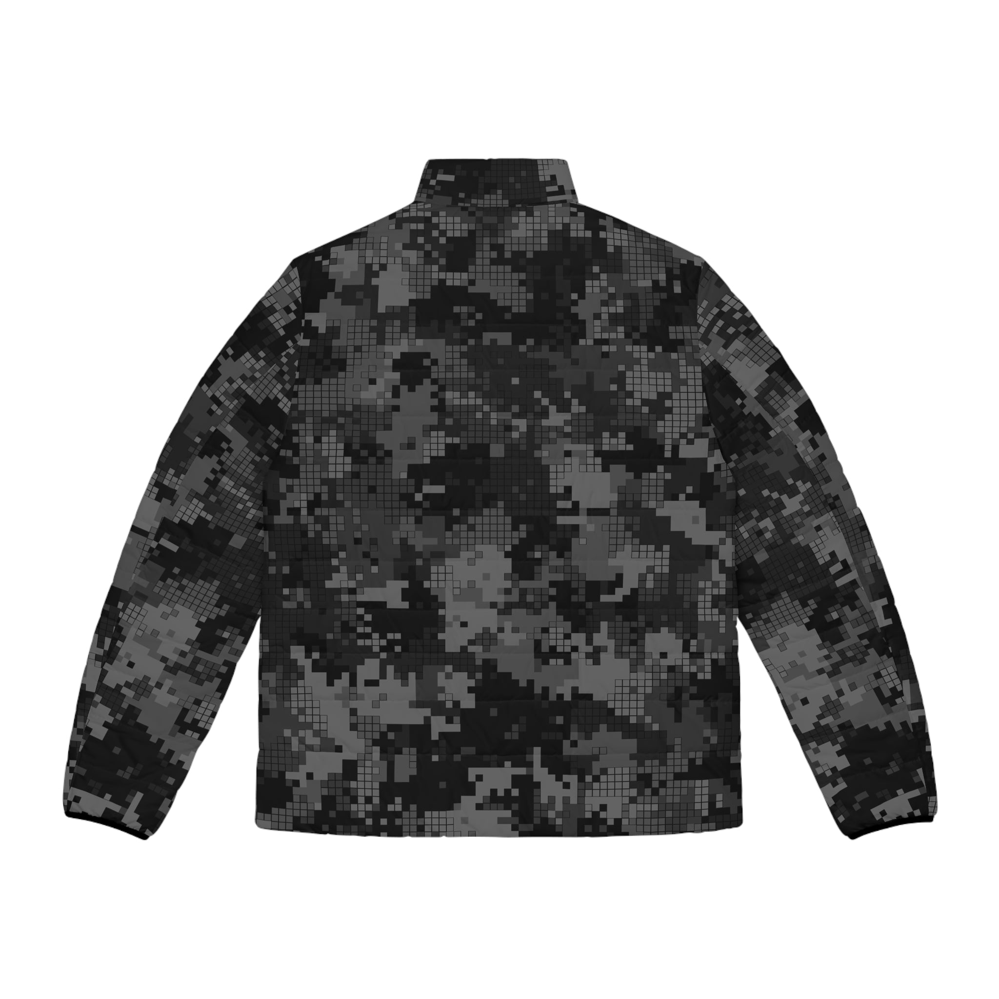 Black Camo Puffer Jacket For Men | Stylish Pixel Camouflage