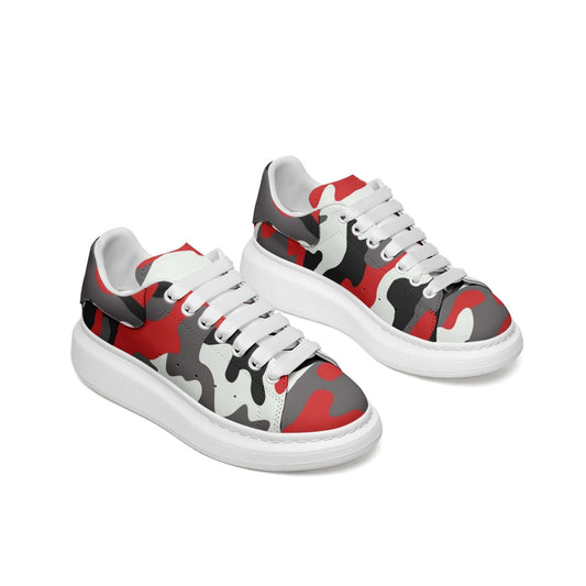 Oversized McQueen Style Sneakers | Red, Black, and White Camouflage