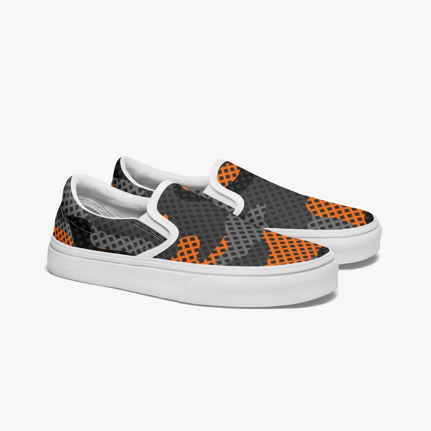 Camo Slip-On Shoes | Orange & Black Pixel Camouflage