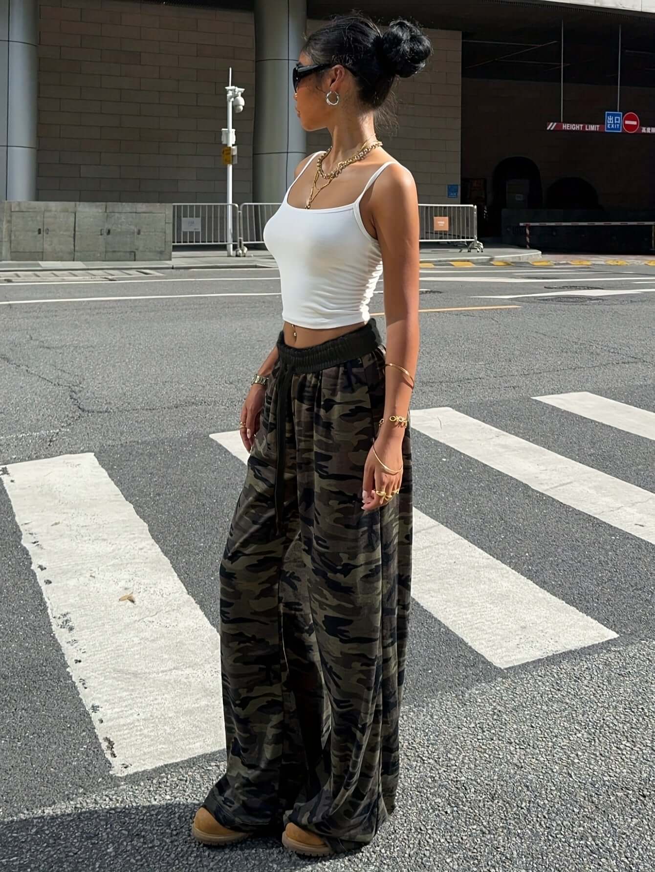 Women's Camo Cargo Pants with Drawstring Waist | Wide-Leg Trousers