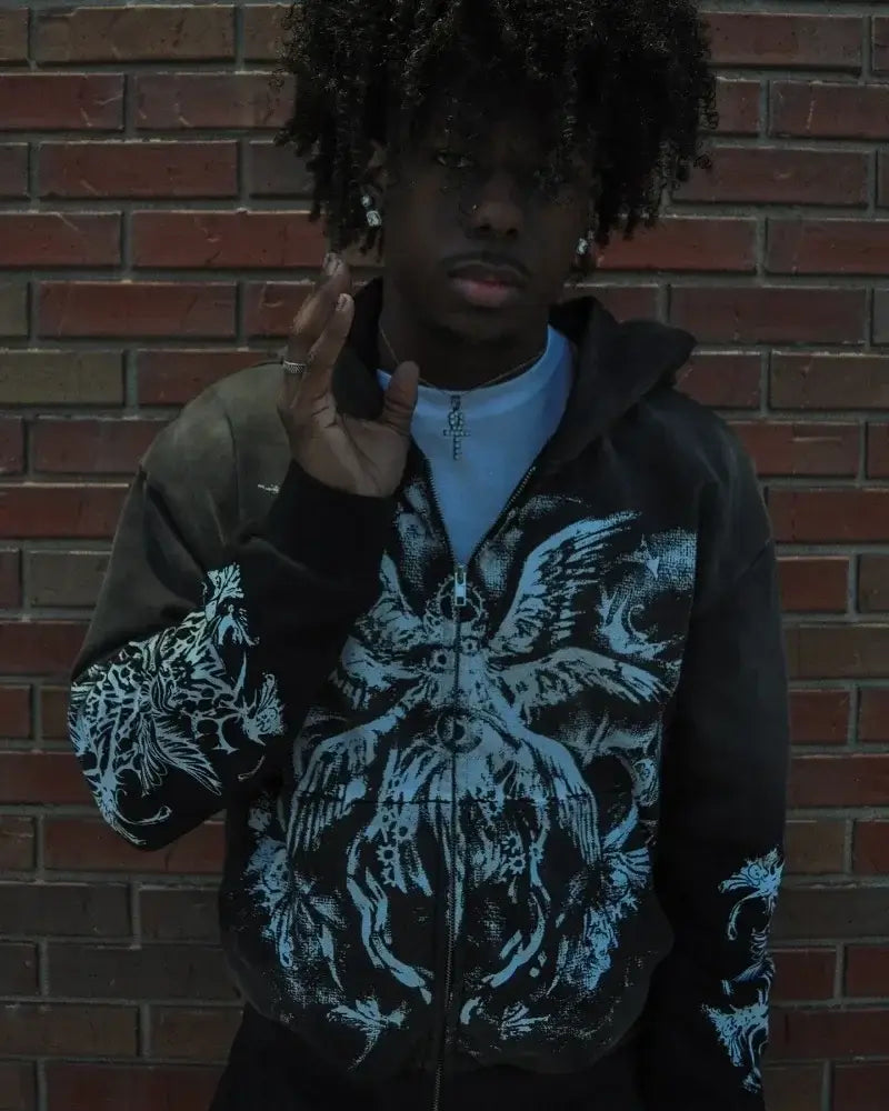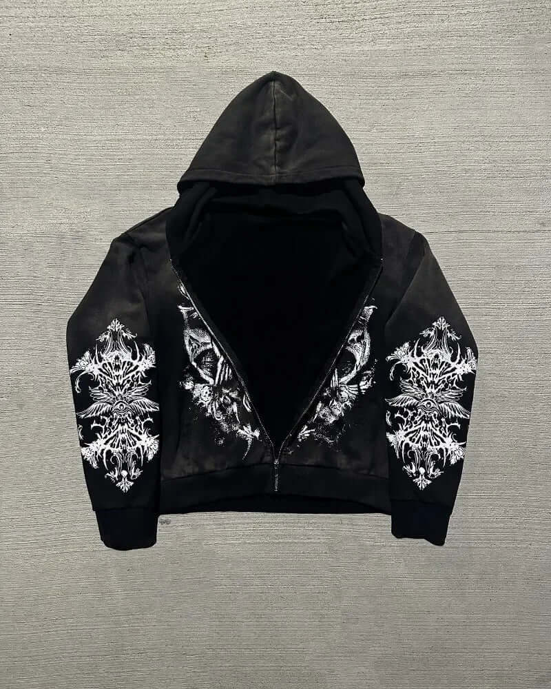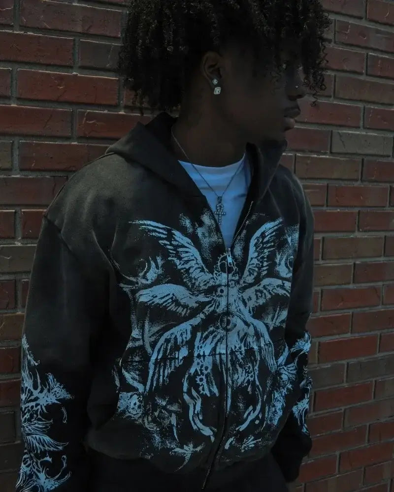 American Devil Zip-Up Hoodie – Y2K Streetwear Style