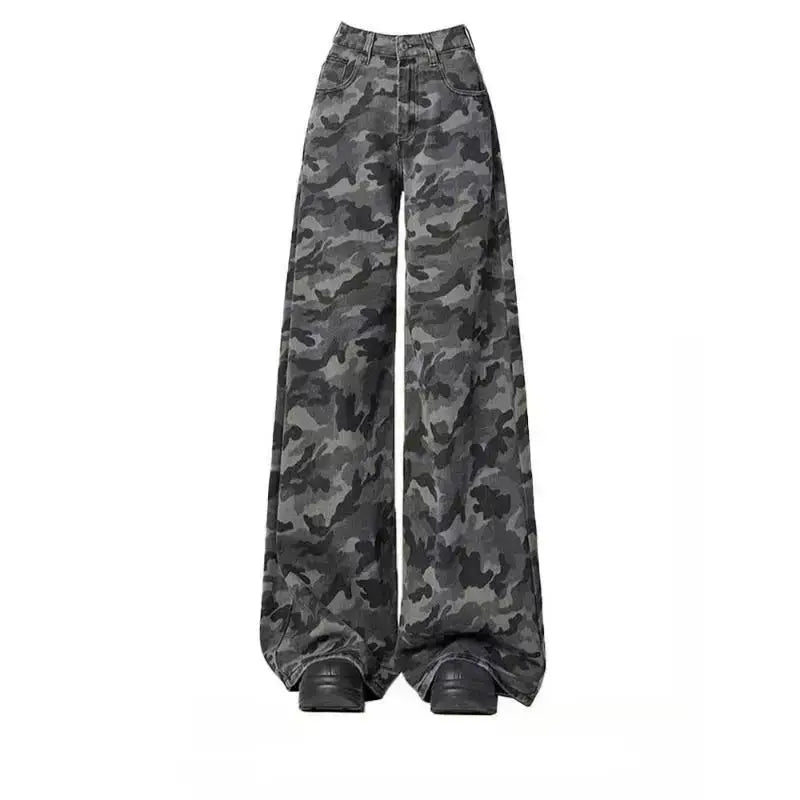 American Retro Camouflage Oversized Jeans | High Waist Wide-leg