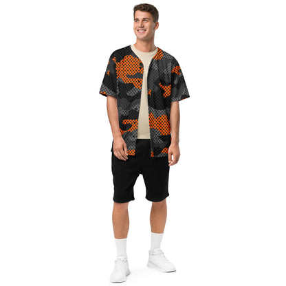 Baseball Jersey | Unisex | Black & Orange Pixel Camouflage