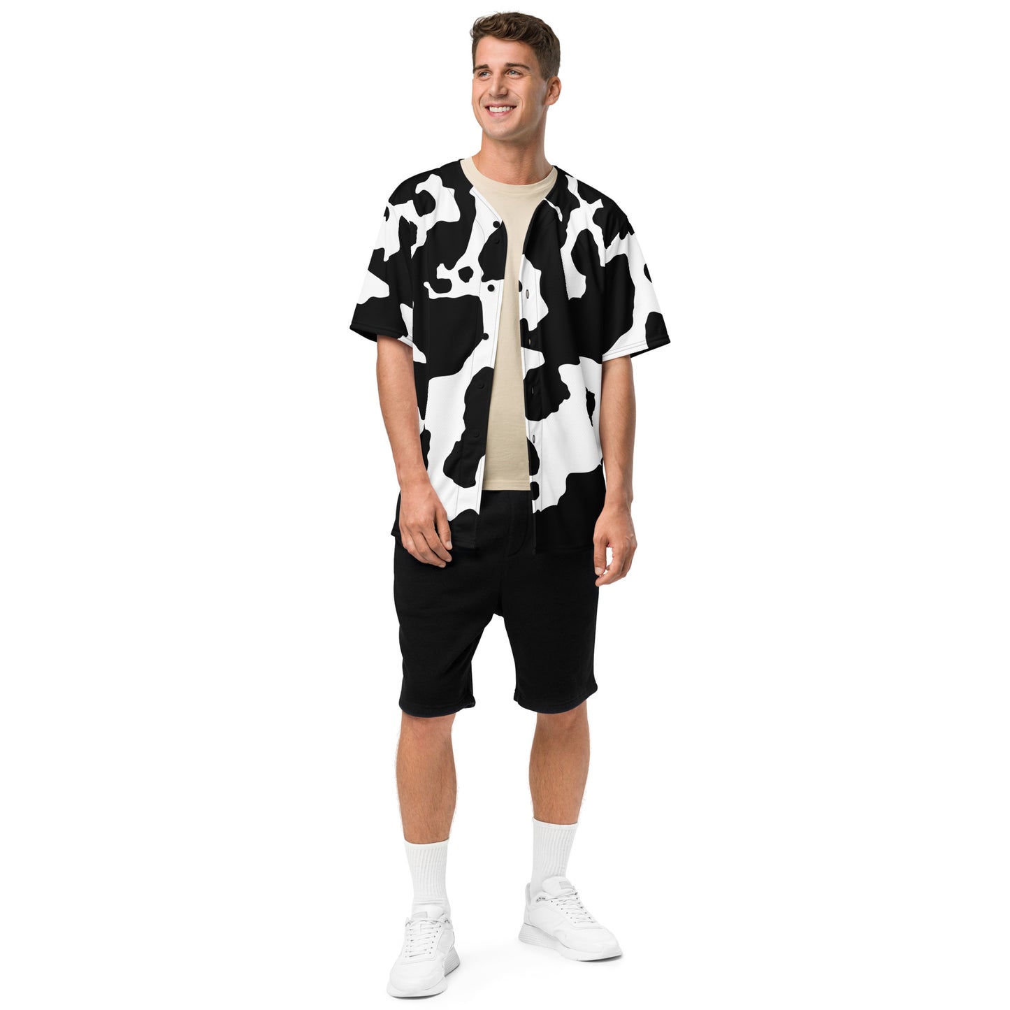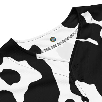 Baseball Jersey | Unisex | Black & White Cow Camouflage