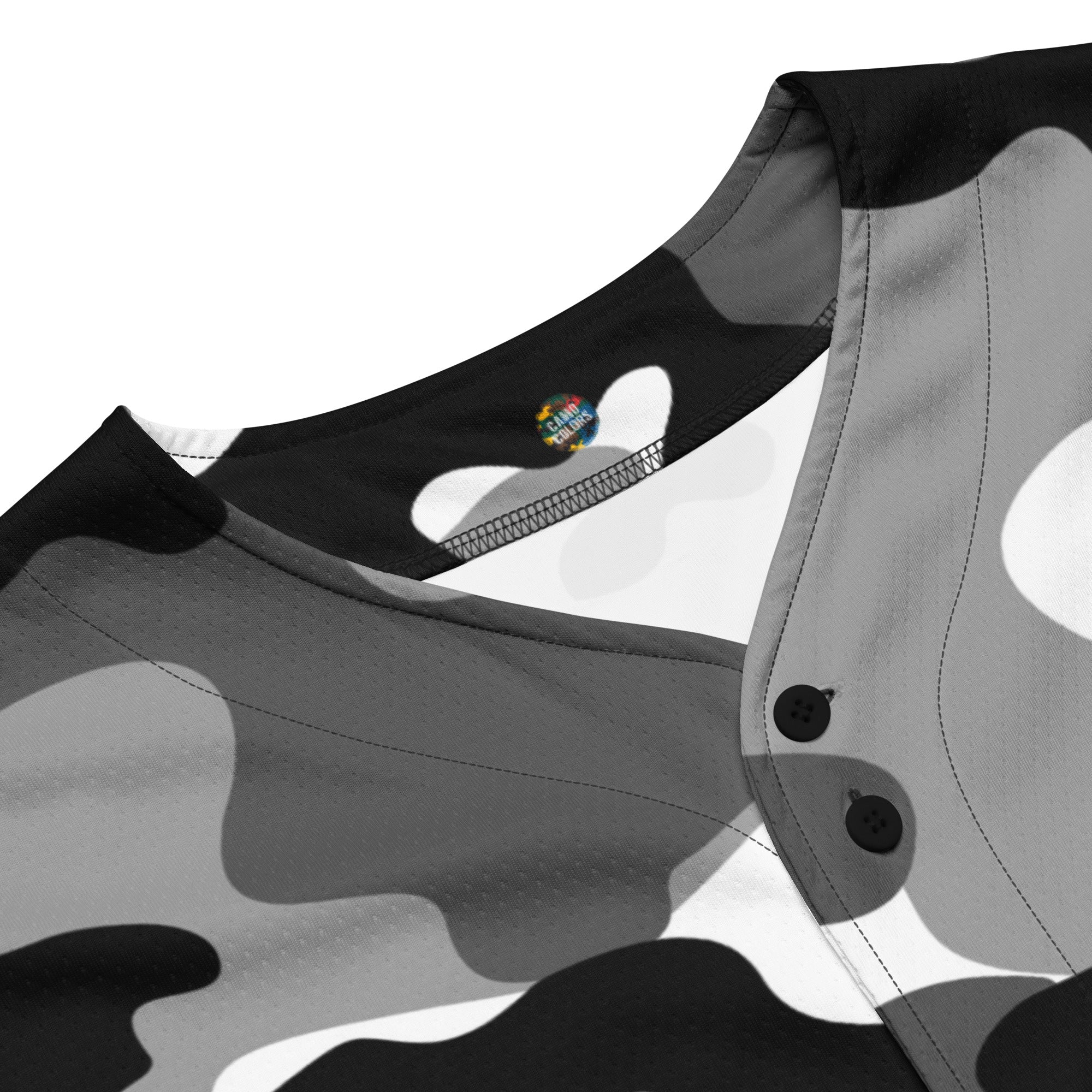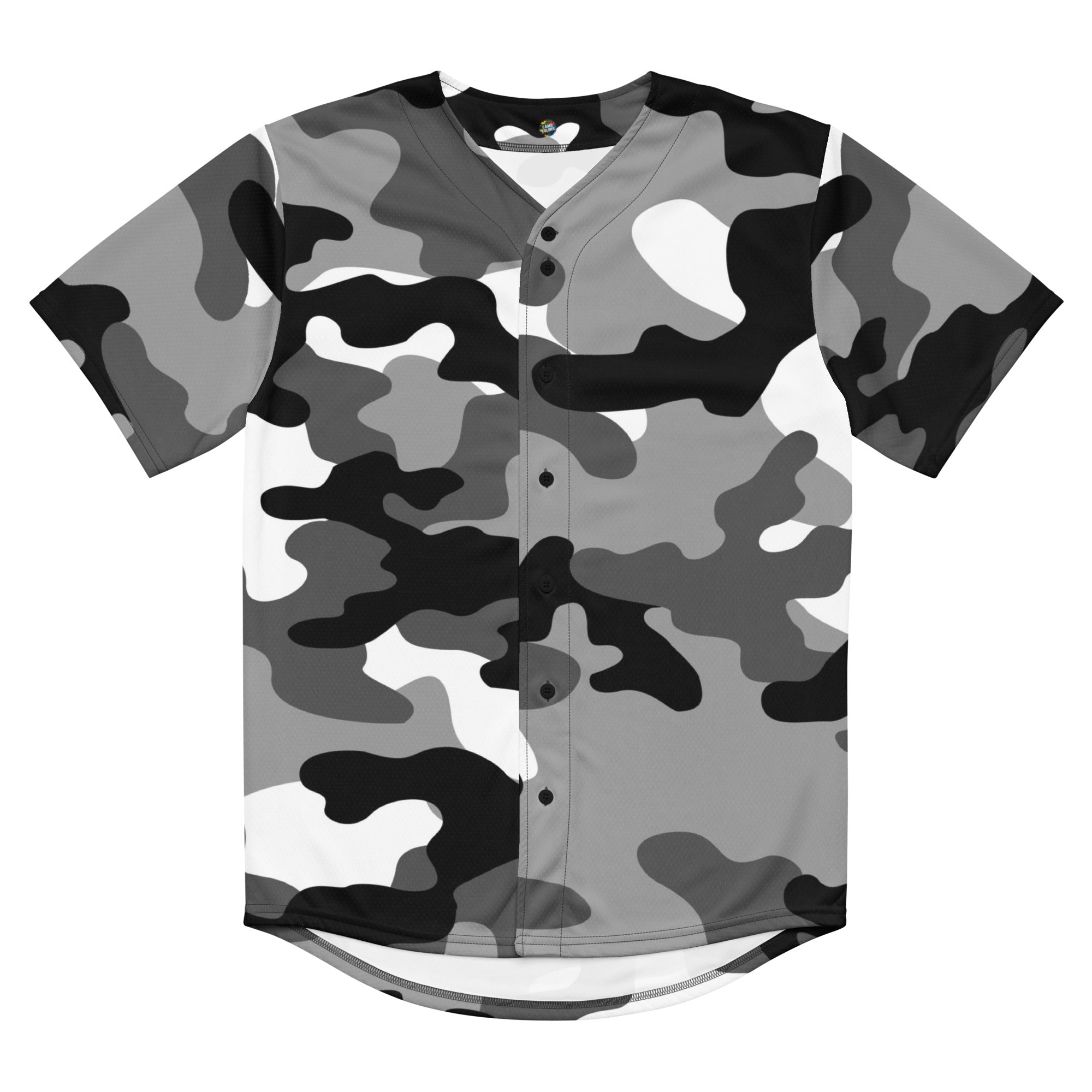 Baseball Jersey | Unisex | Black, White & Gray Camouflage