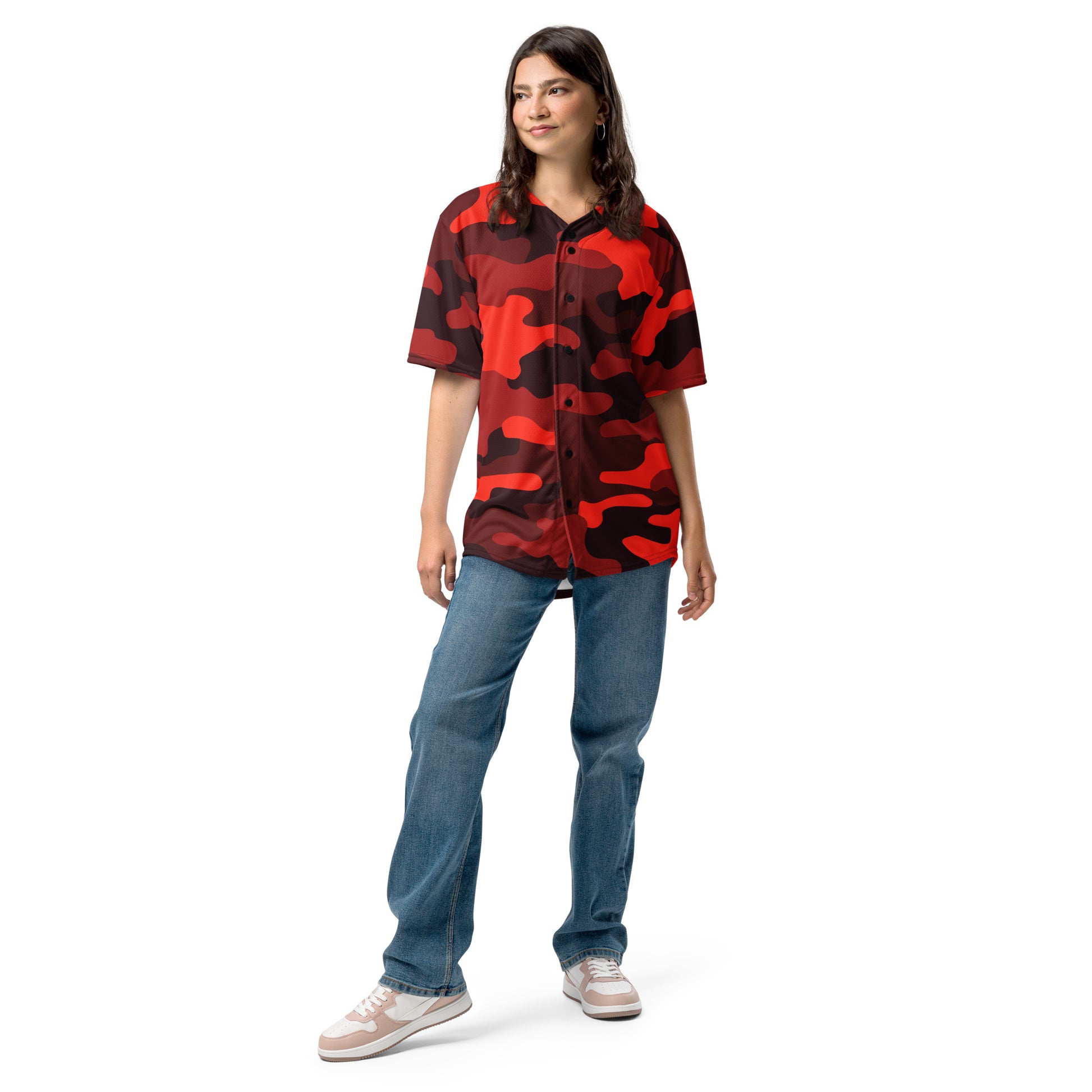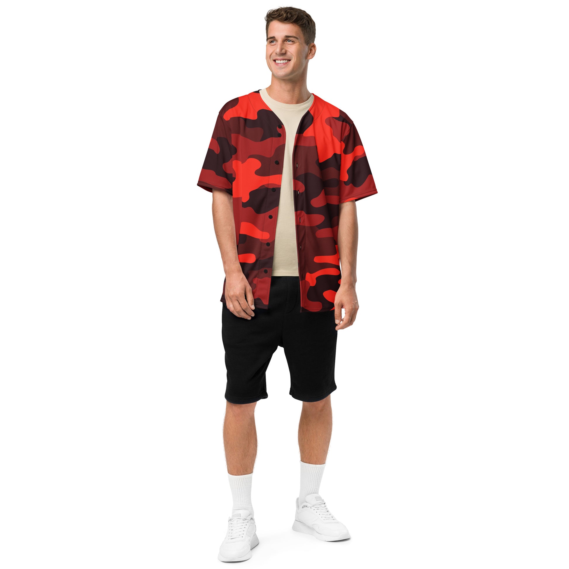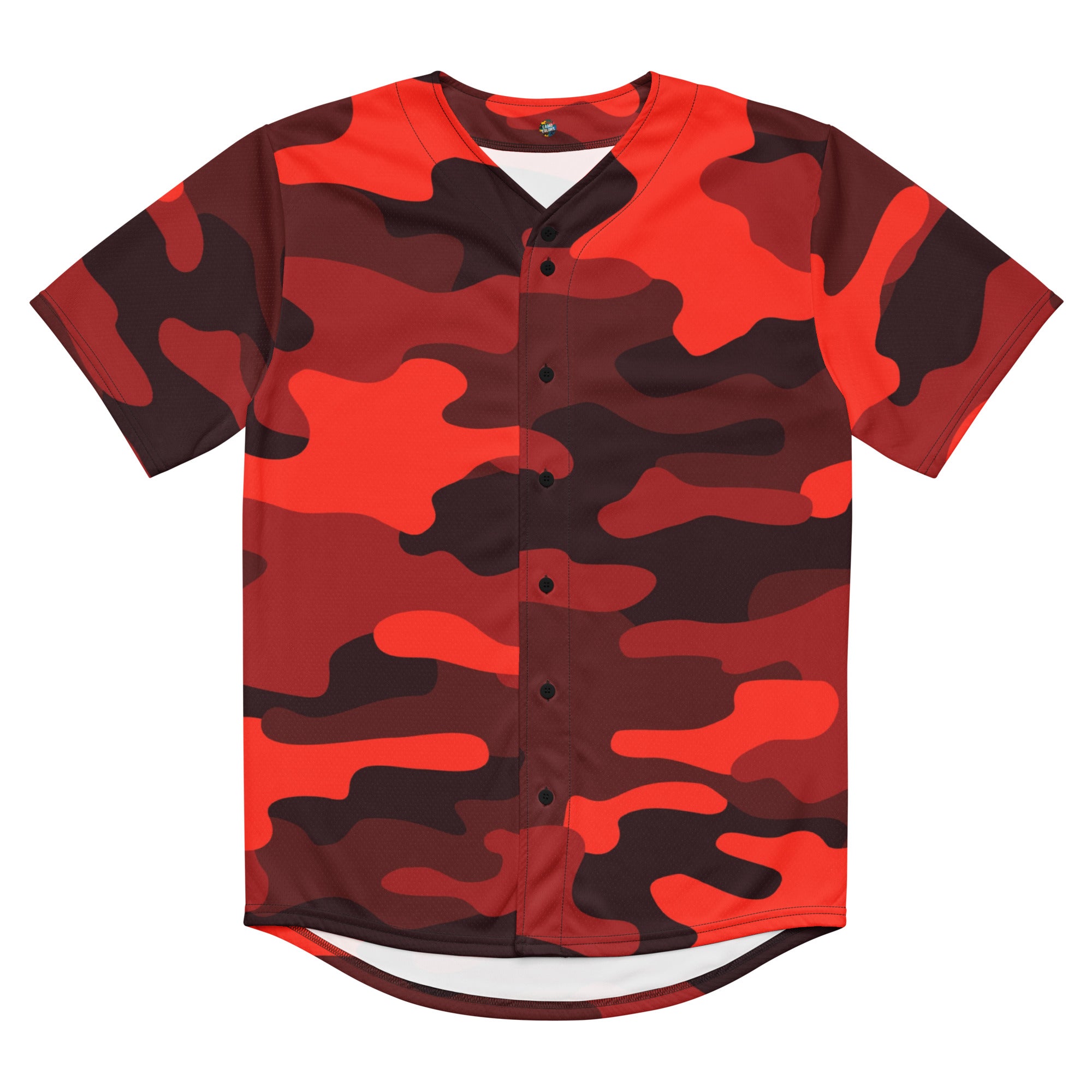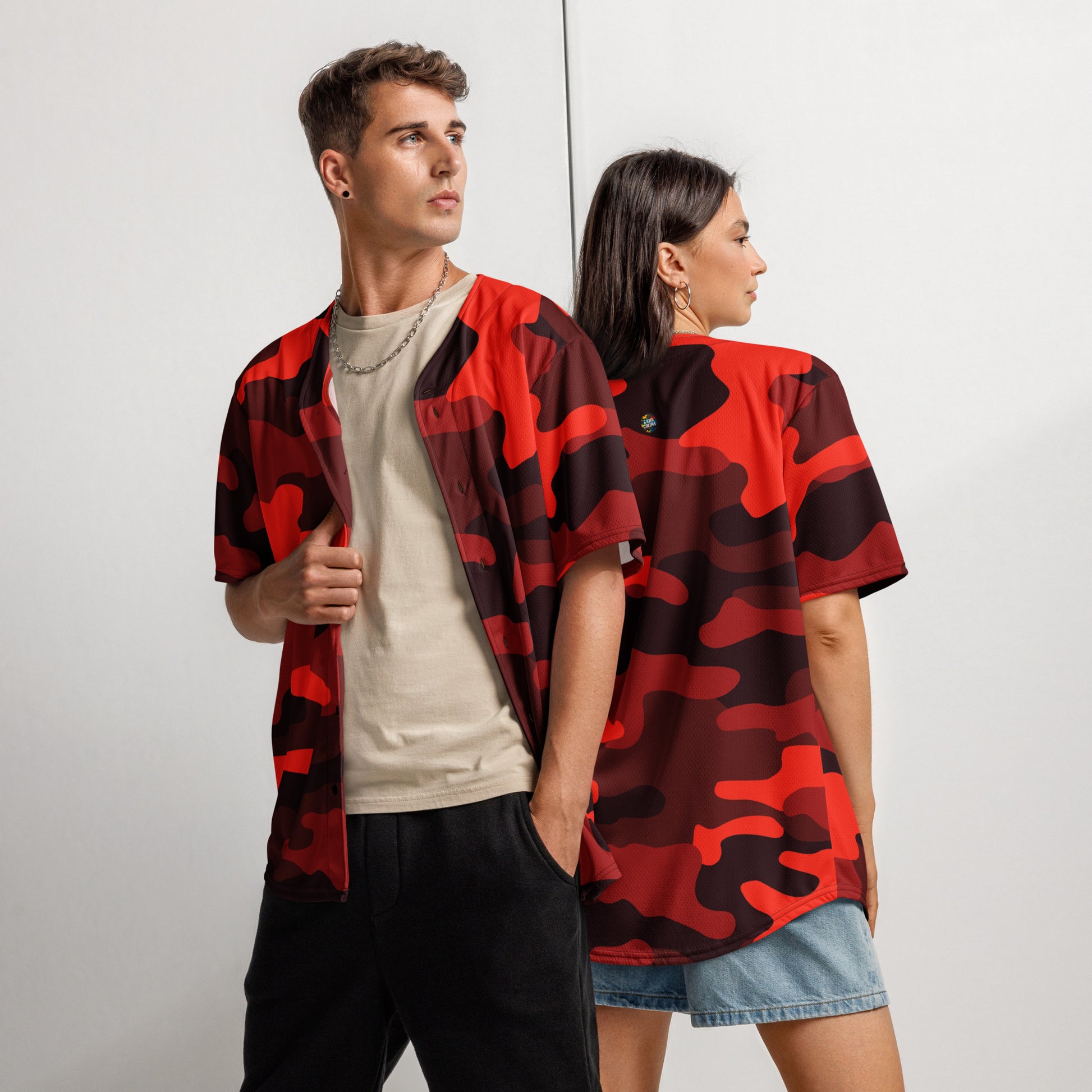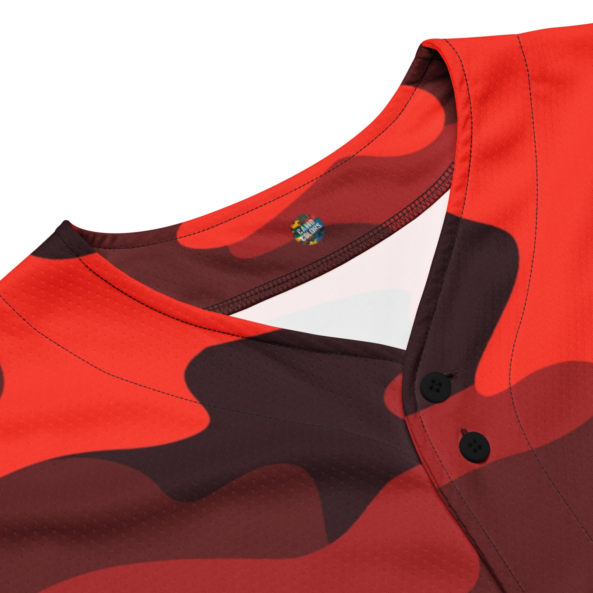 Baseball Jersey | Unisex | Scarlet Red & Black Camouflage
