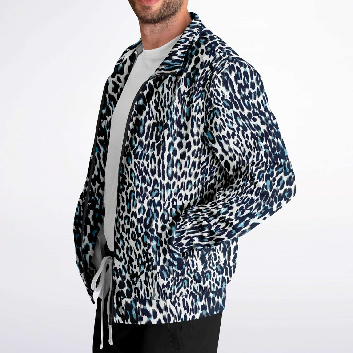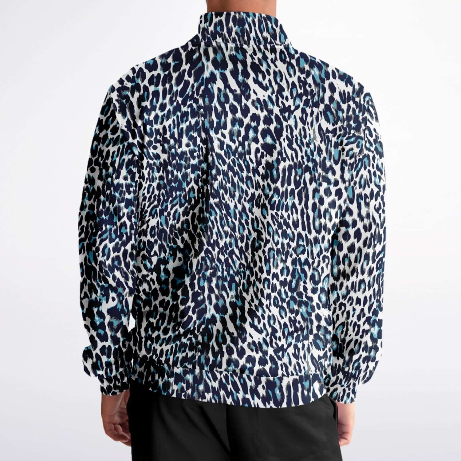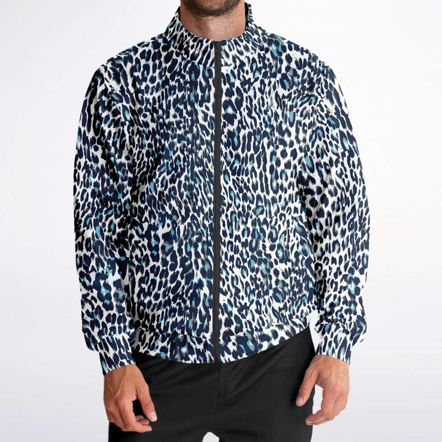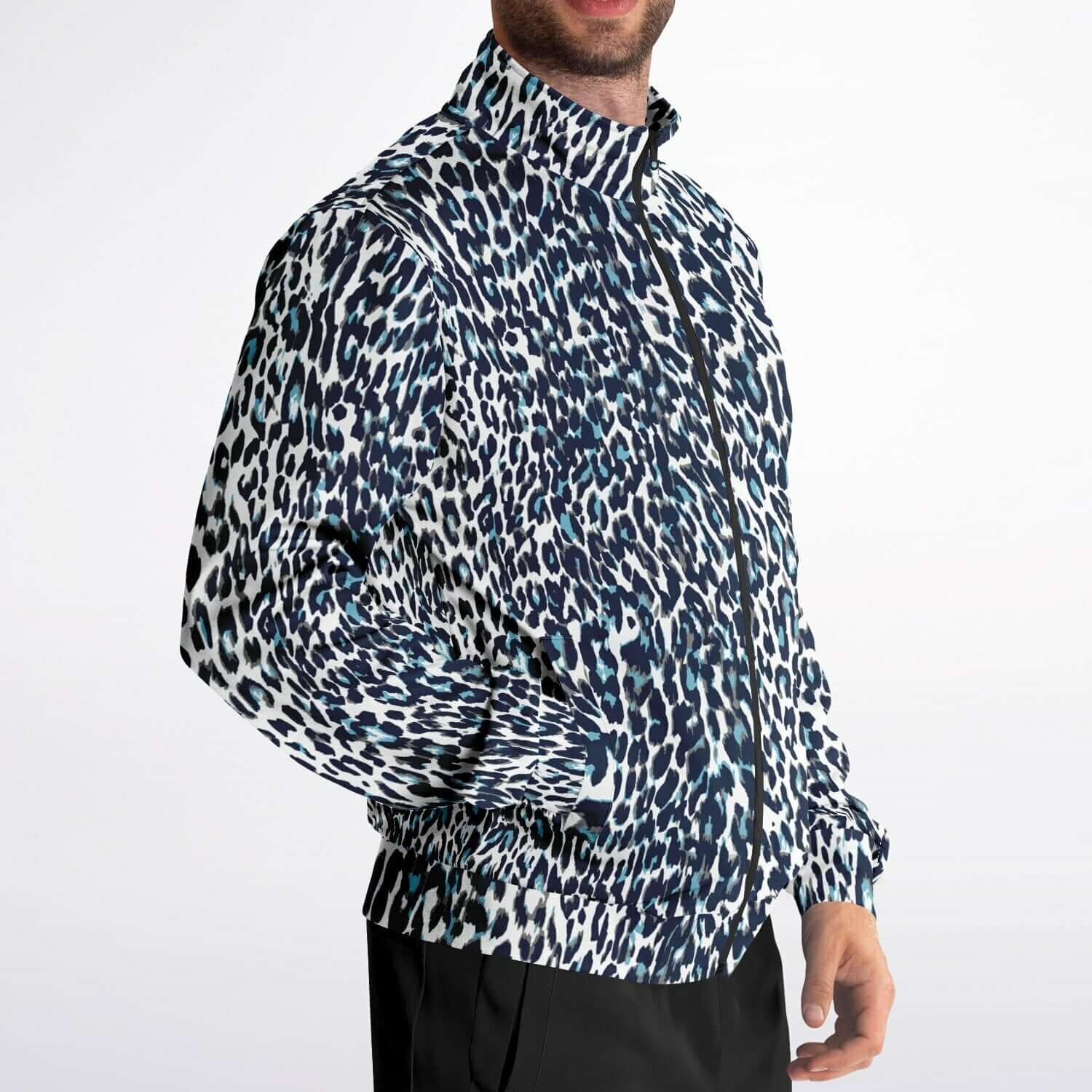 The Blue and White Leopard Print Track Jacket is a stylish and versatile addition to any wardrobe. Its trendy design features a bold leopard print, while its comfortable and durable material makes it perfect for any active lifestyle. Stay on-trend and stand out from the crowd with this must-have track jacket.