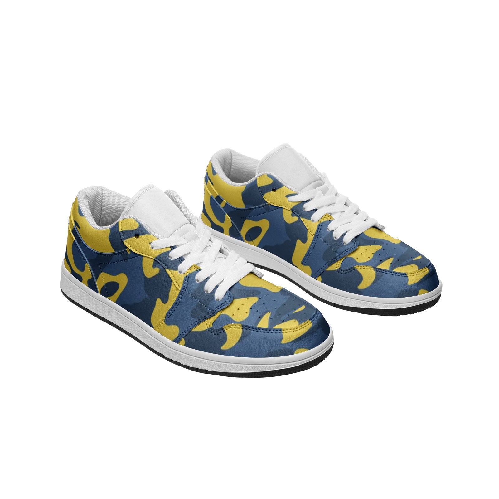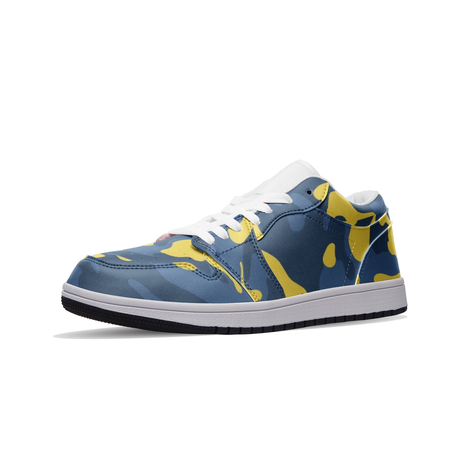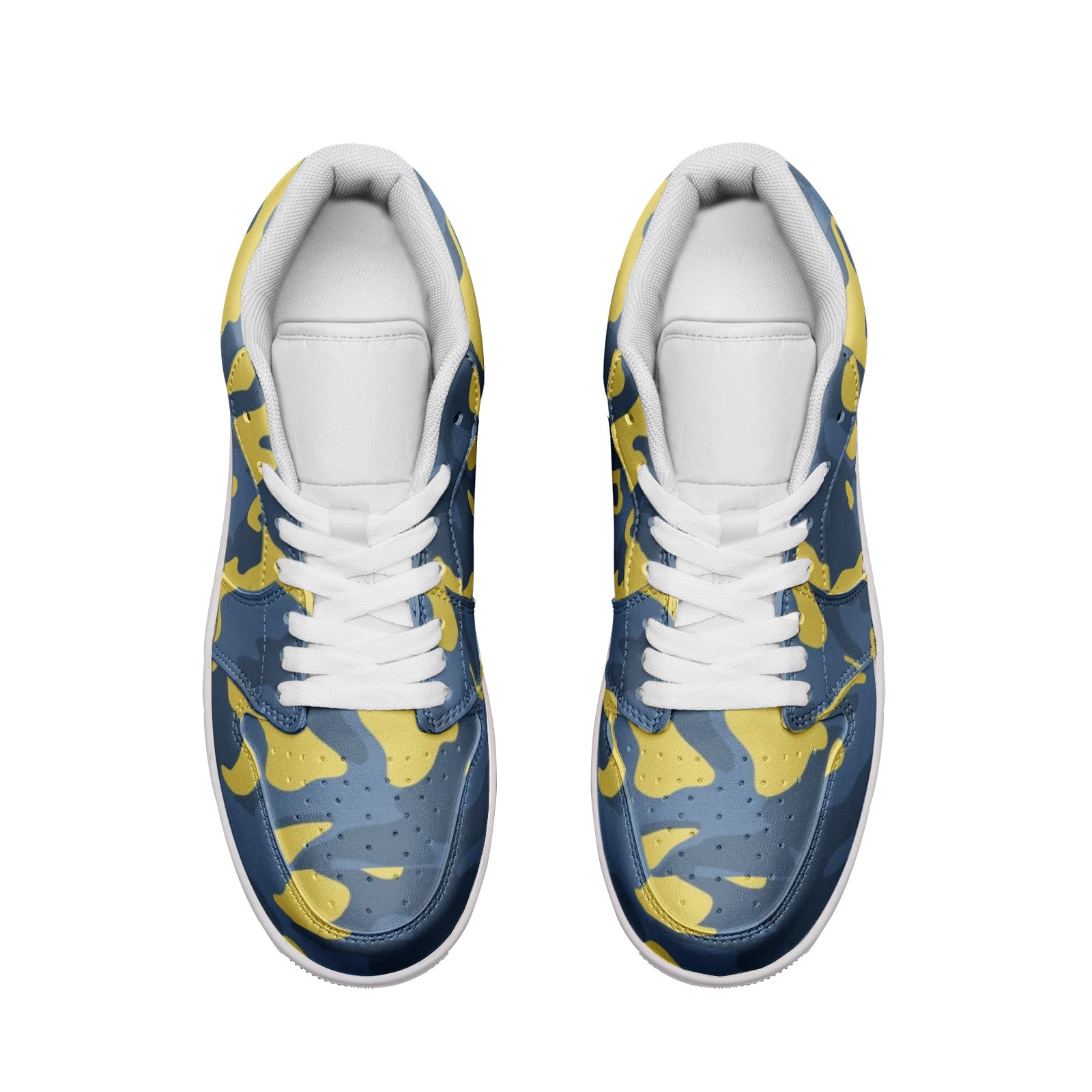 These Blue and Yellow Camo Sneakers are a perfect combination of style and comfort. Made of high-quality leather, these Unisex Low Tops offer both durability and versatility. Perfect for any casual or outdoor look, these sneakers feature a unique blue and yellow camo design that is sure to make a statement.