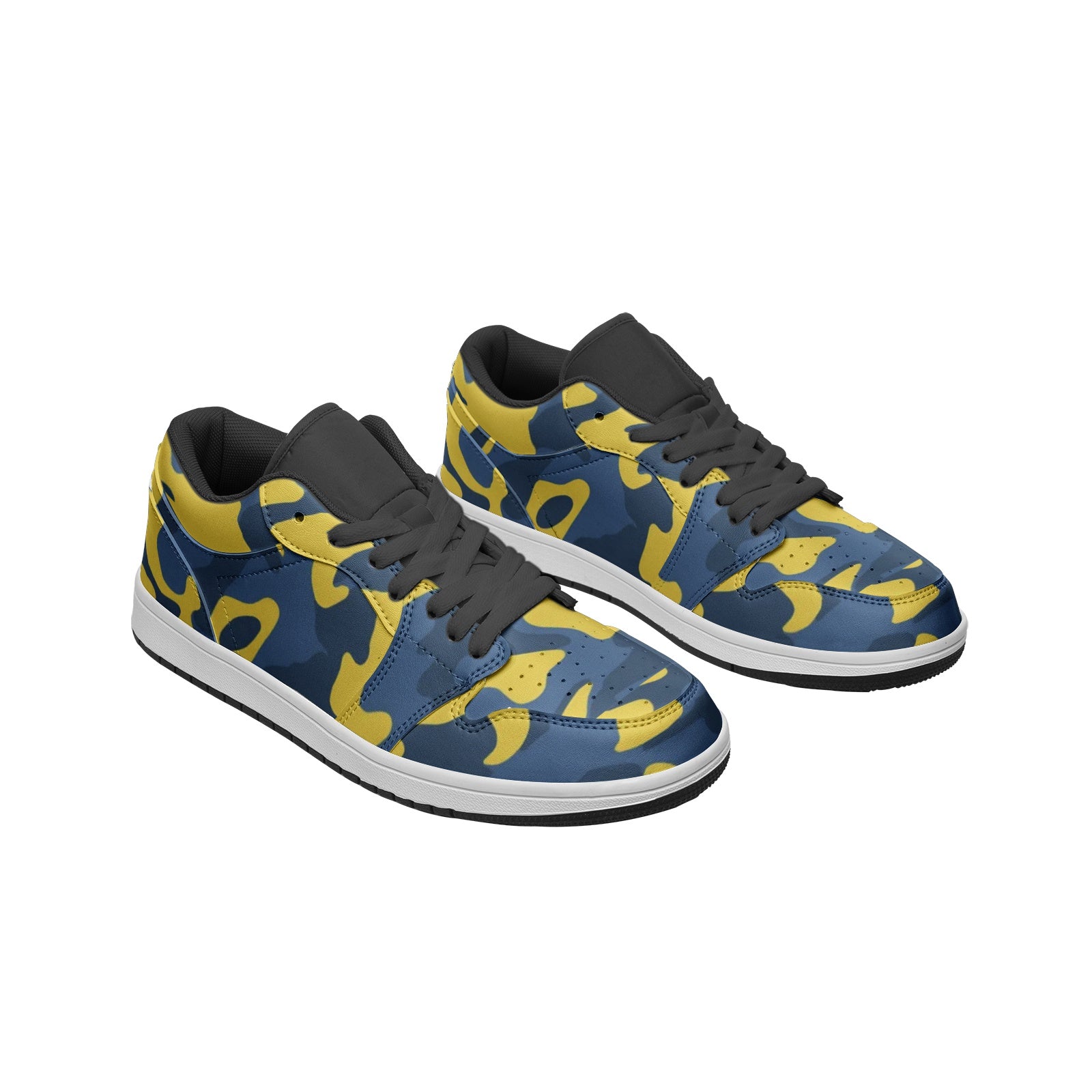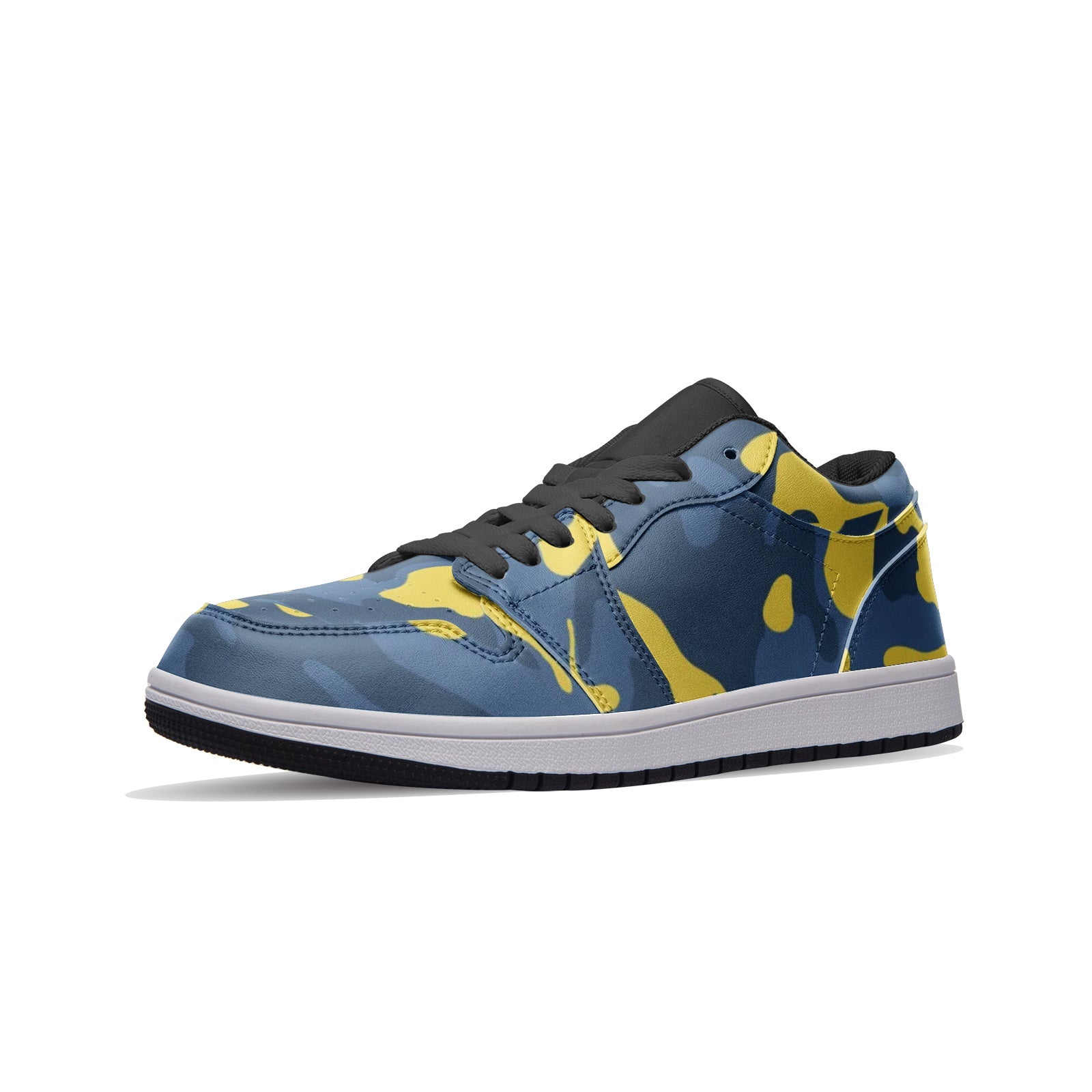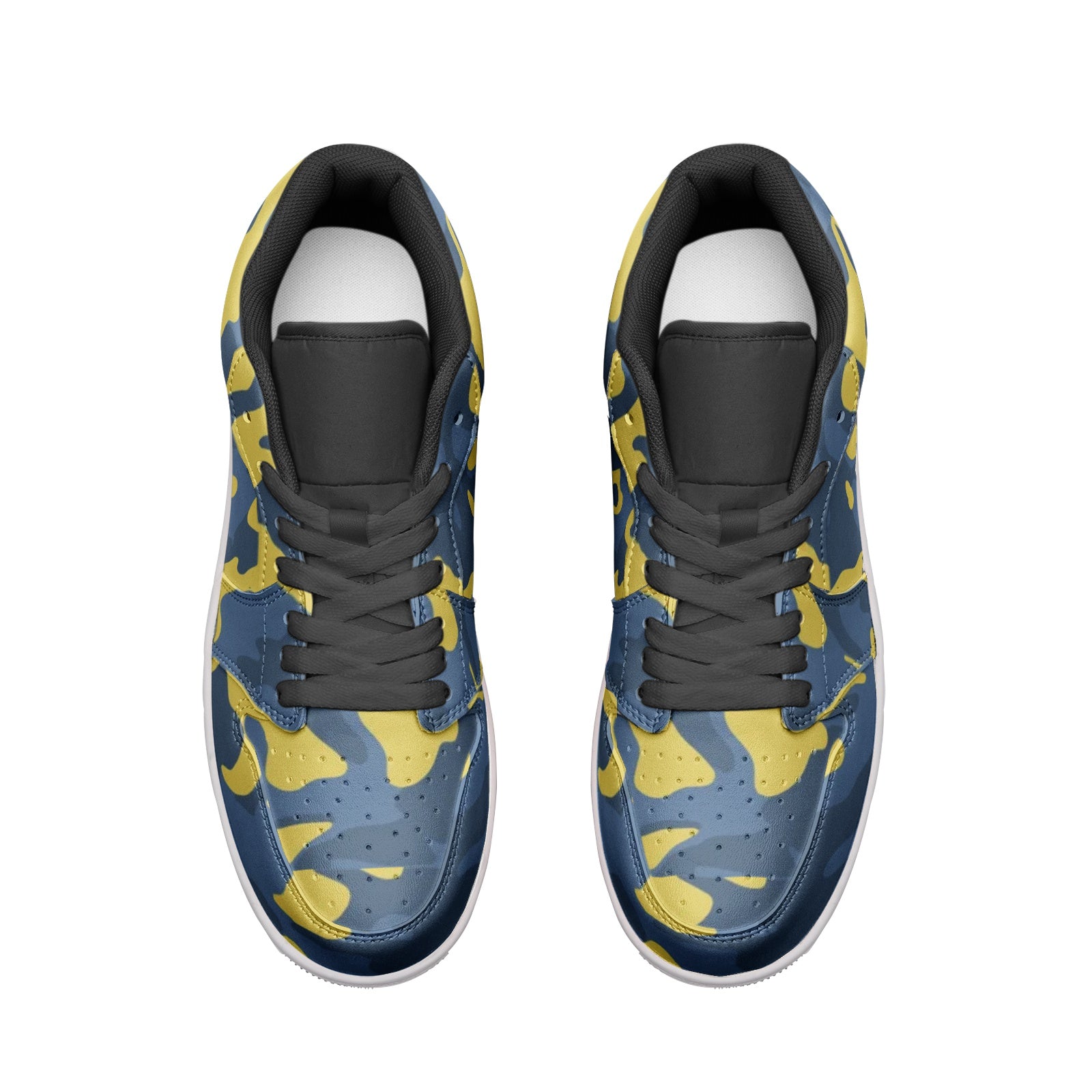 These Blue and Yellow Camo Sneakers are a perfect combination of style and comfort. Made of high-quality leather, these Unisex Low Tops offer both durability and versatility. Perfect for any casual or outdoor look, these sneakers feature a unique blue and yellow camo design that is sure to make a statement.