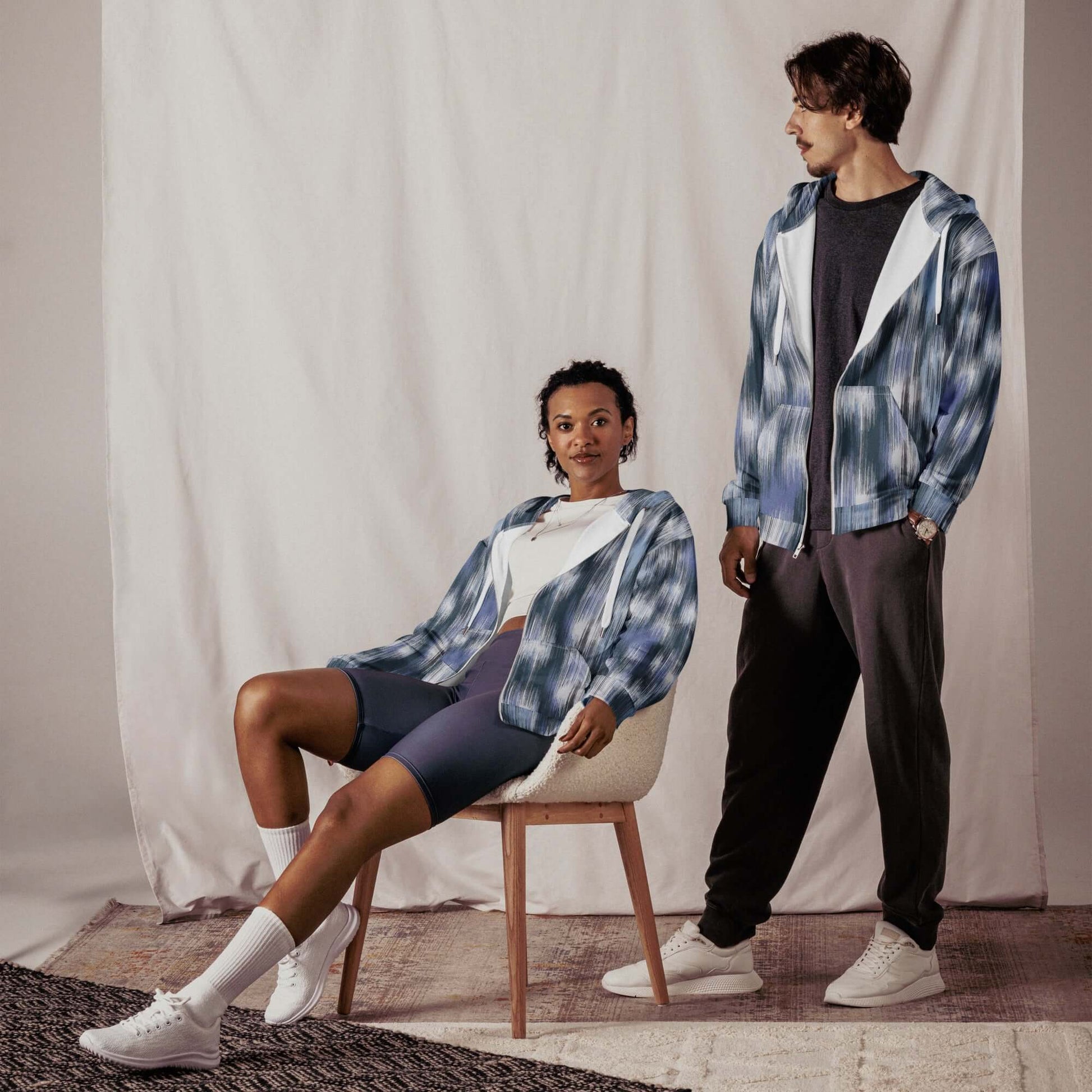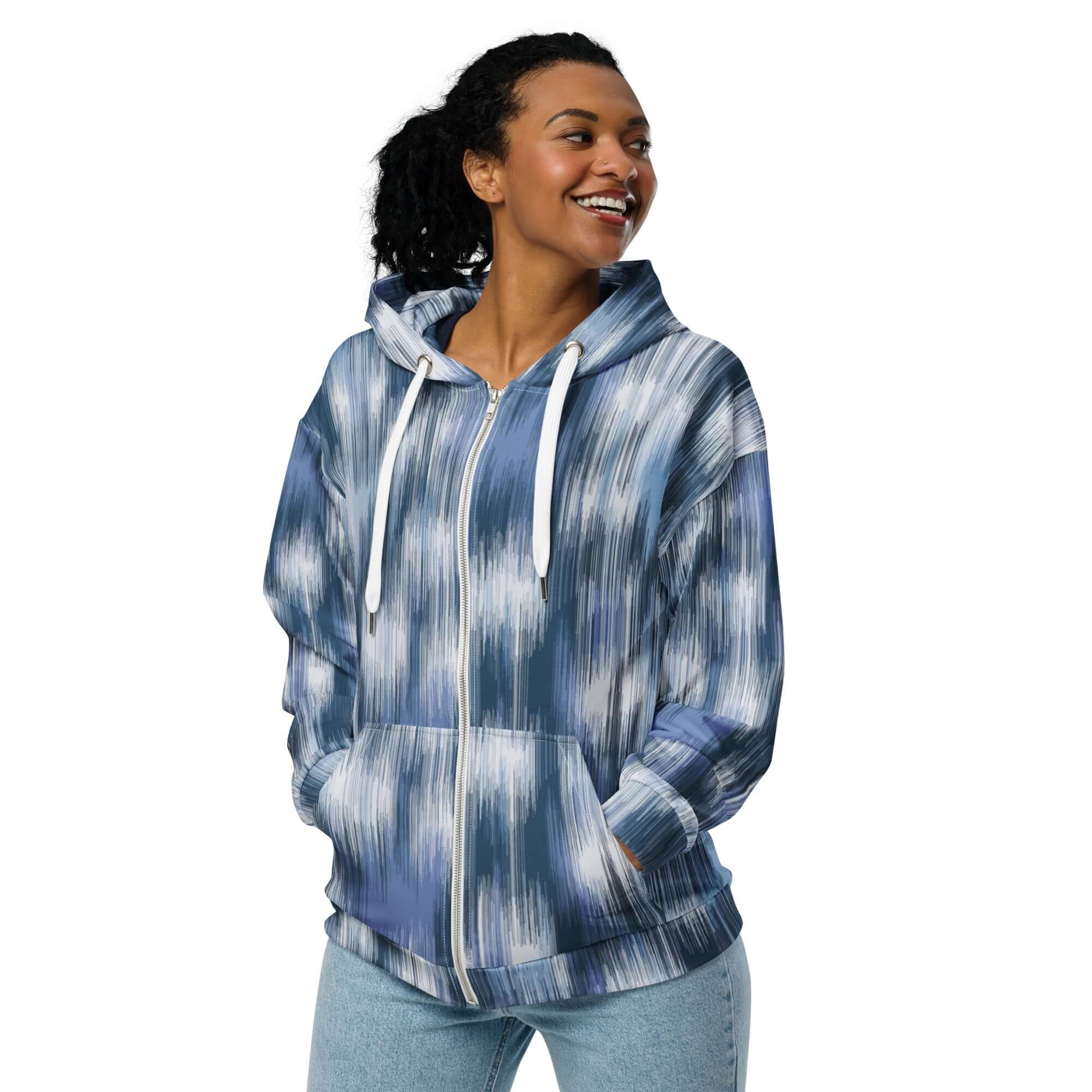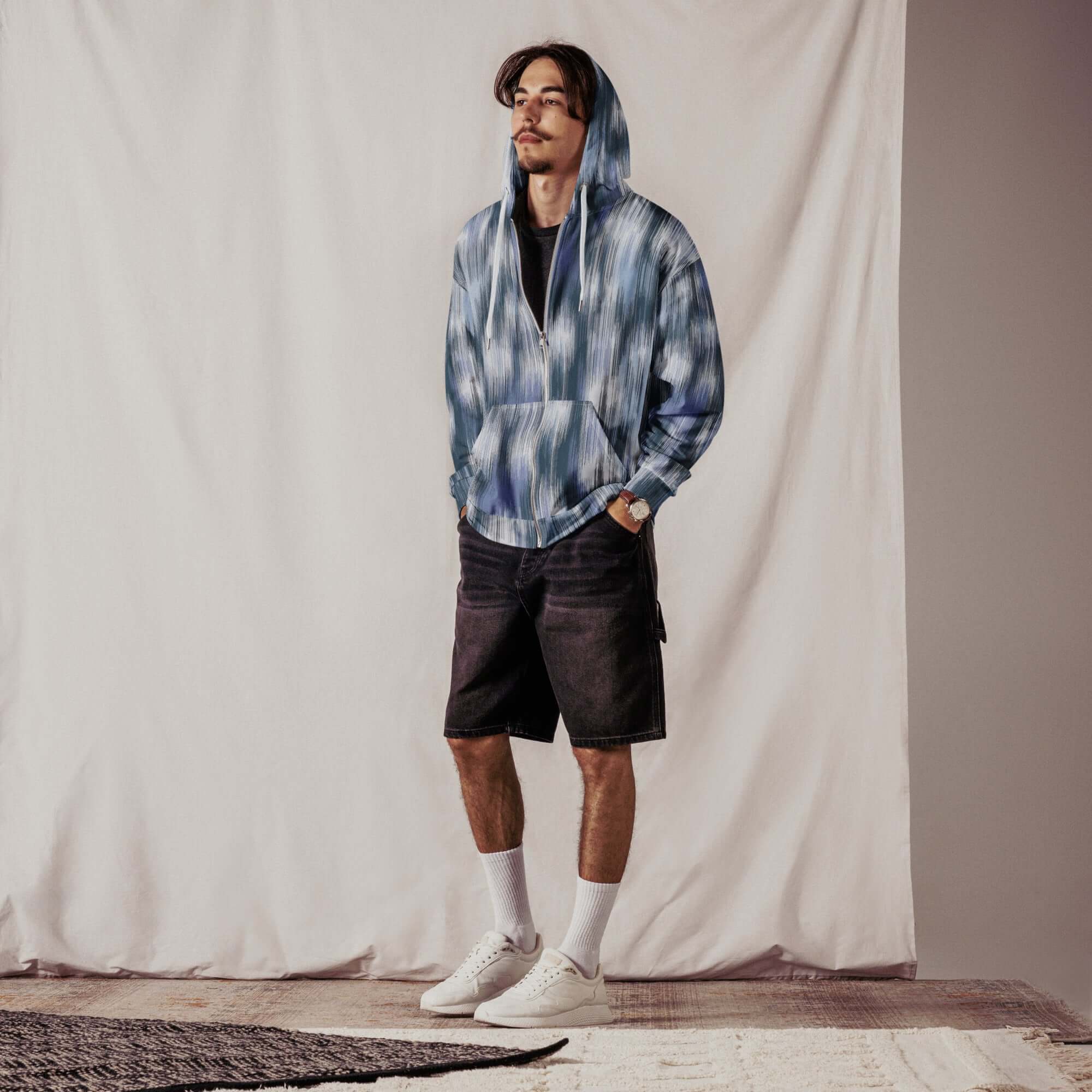 Denim Blue Camo Zip Hoodie – Classic Fade with a Camo Twist
