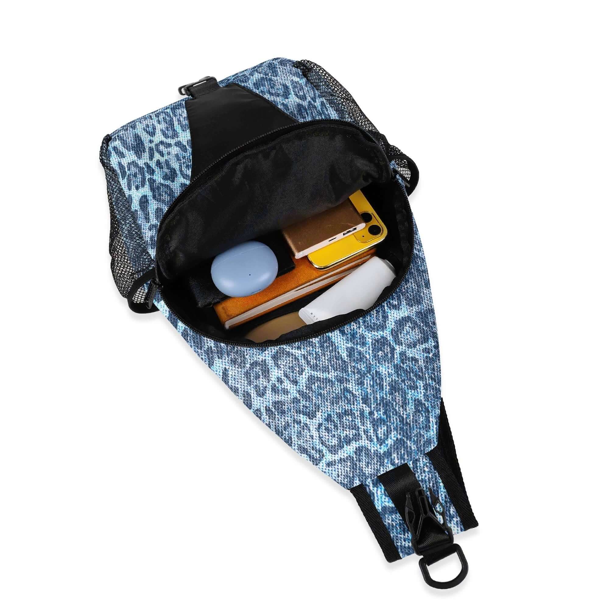 Introducing our Blue Leopard Print Crossbody Bag in a stylish denim-style design. Made with durable materials, this bag is perfect for everyday use. With its eye-catching leopard print pattern, you'll stand out from the crowd. Keep your essentials organized and secure with multiple pockets and a sturdy crossbody strap. Elevate your outfit with this trendy and functional bag today.