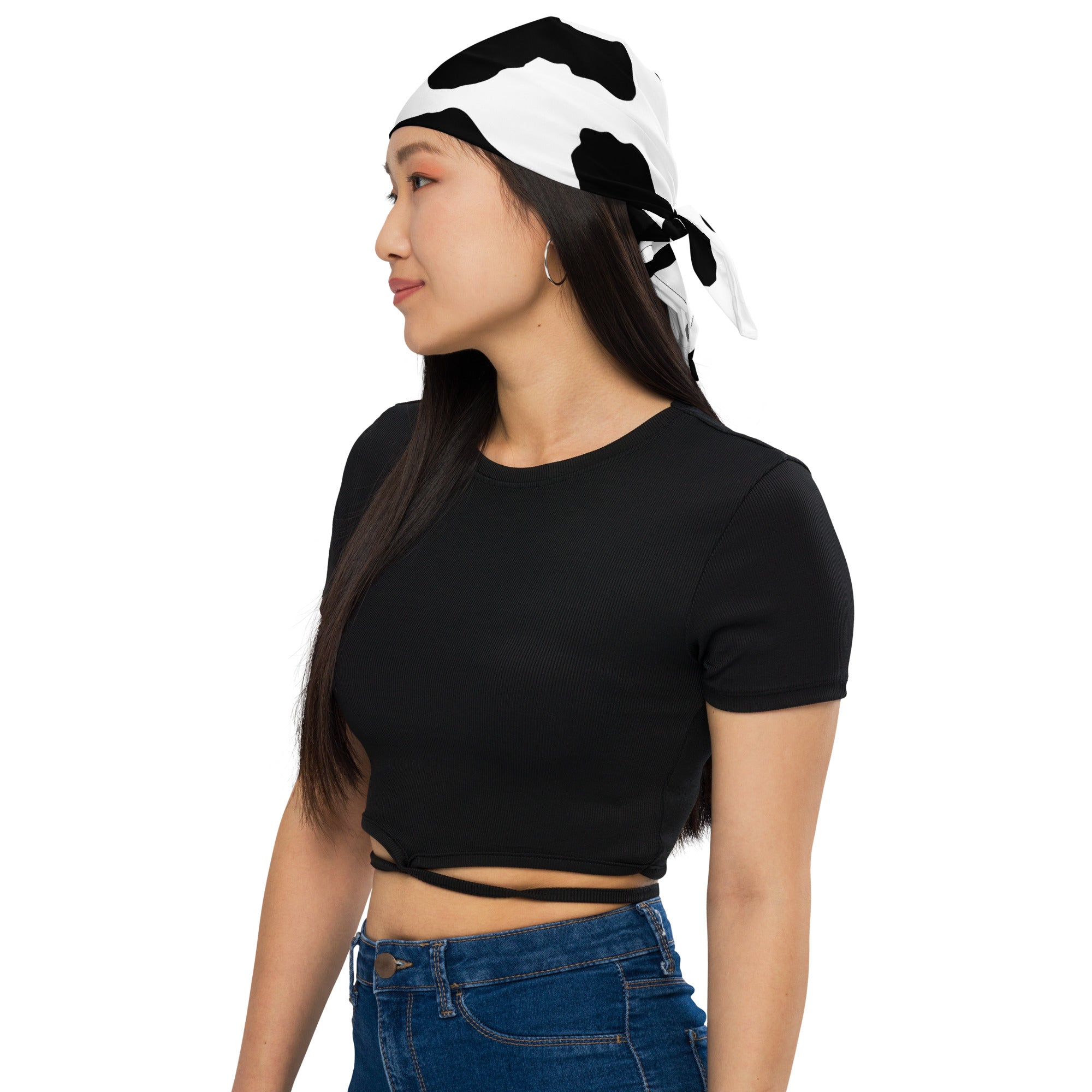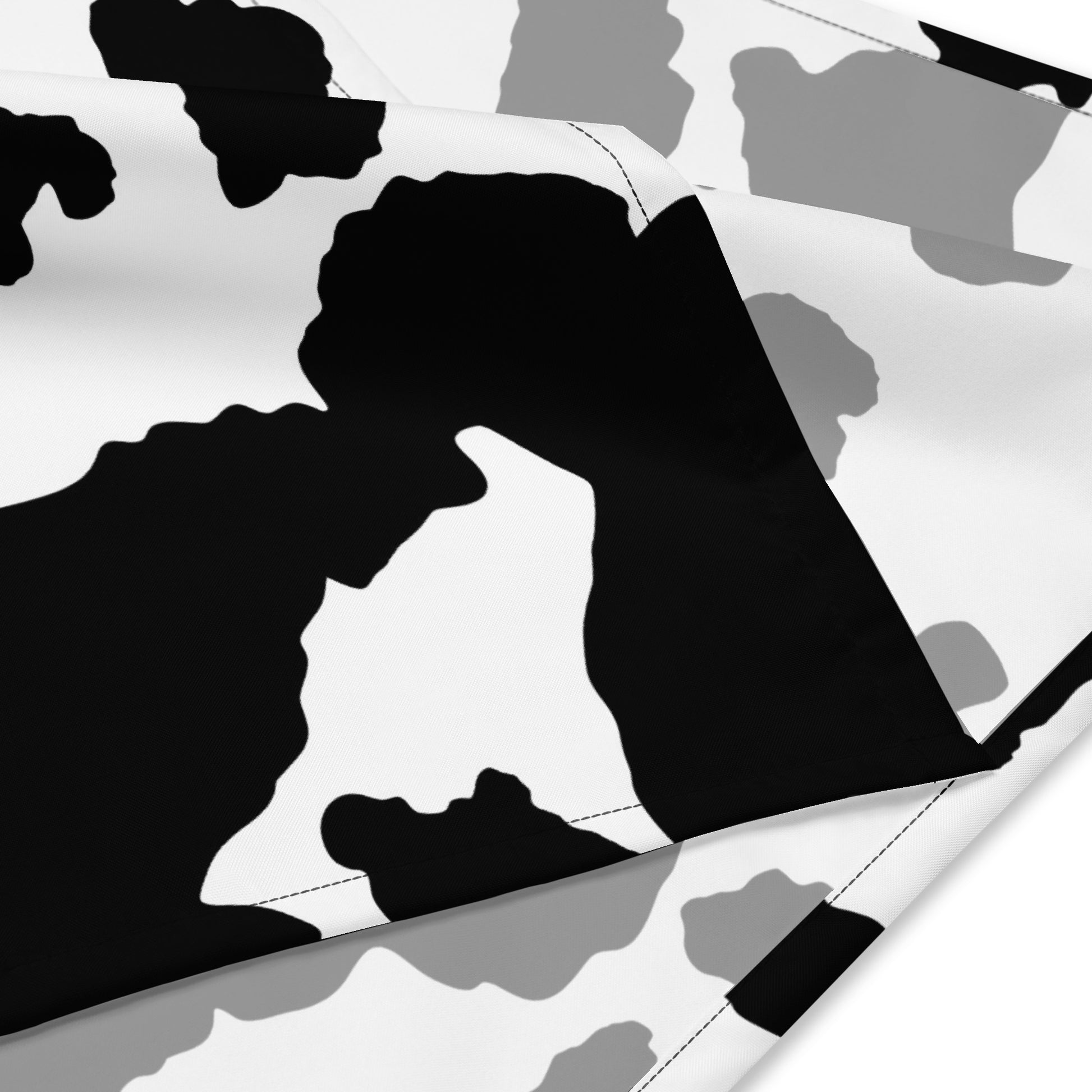 This Camo Bandana features a unique blend of black and white cow print, providing a stylish and versatile accessory for any outfit. Made with high-quality materials, this bandana is perfect for outdoor activities and adds a touch of edginess to your look. Upgrade your style with this must-have accessory.