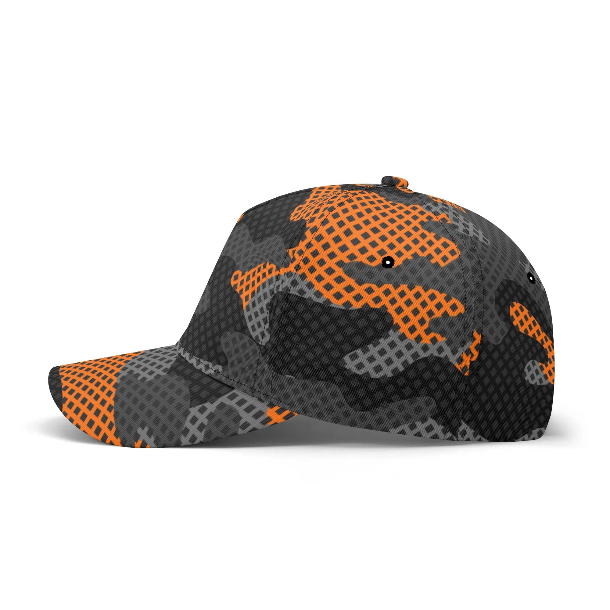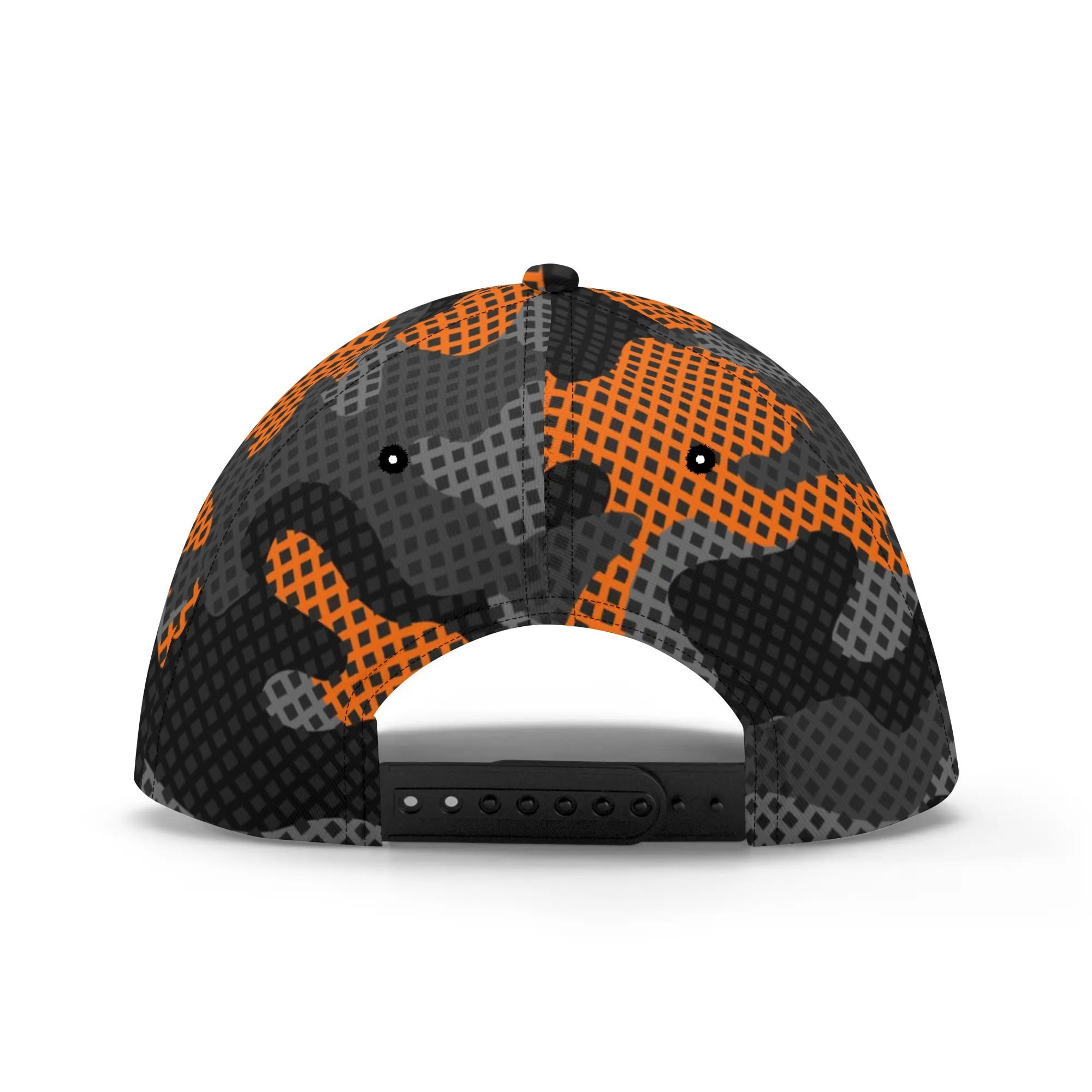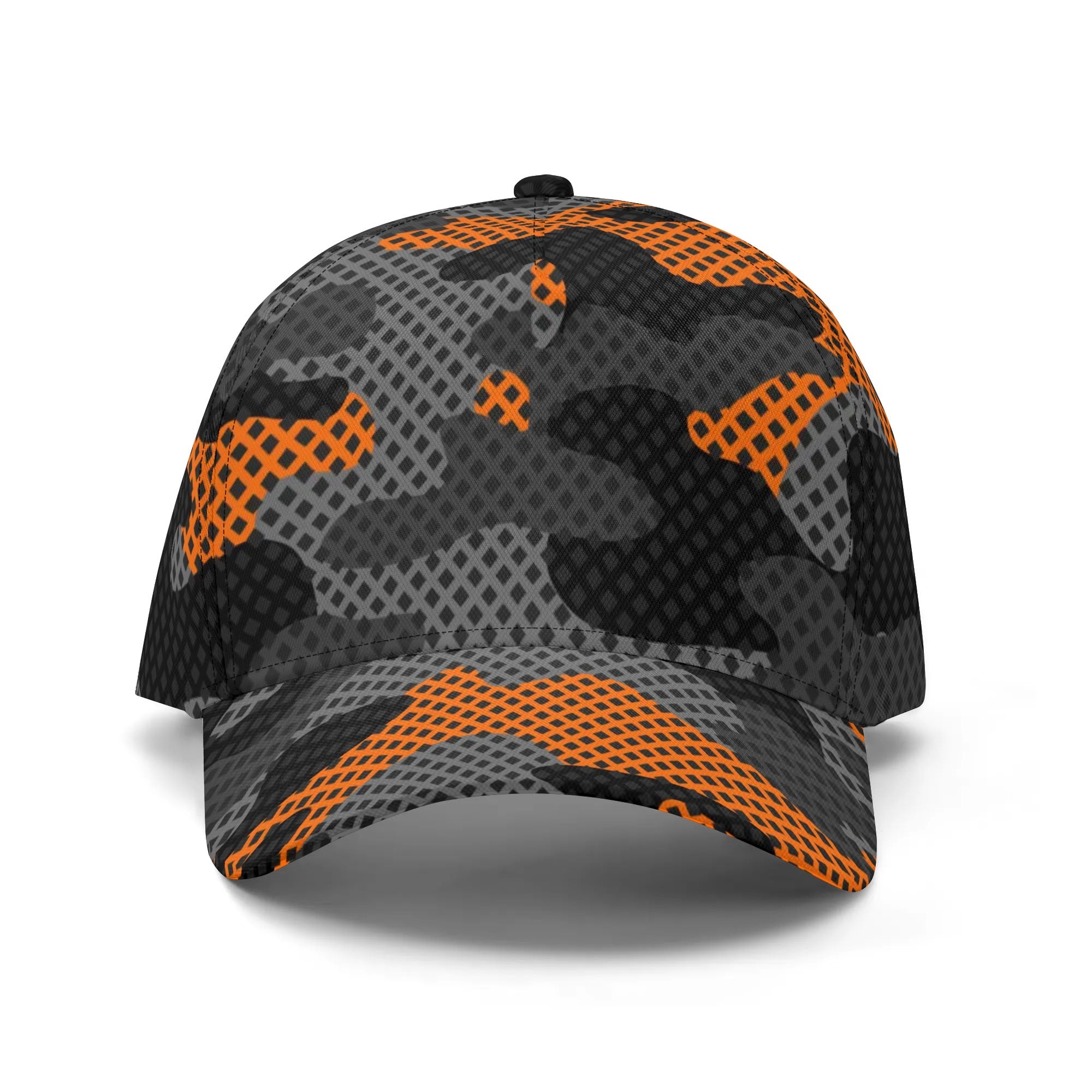 Stay cool and blend in with this Camo Baseball Cap featuring a unique Black & Orange Pixel Camouflage design. Made with high-quality materials, this cap offers both comfort and style. Perfect for outdoor activities or adding a touch of urban edge to your look.