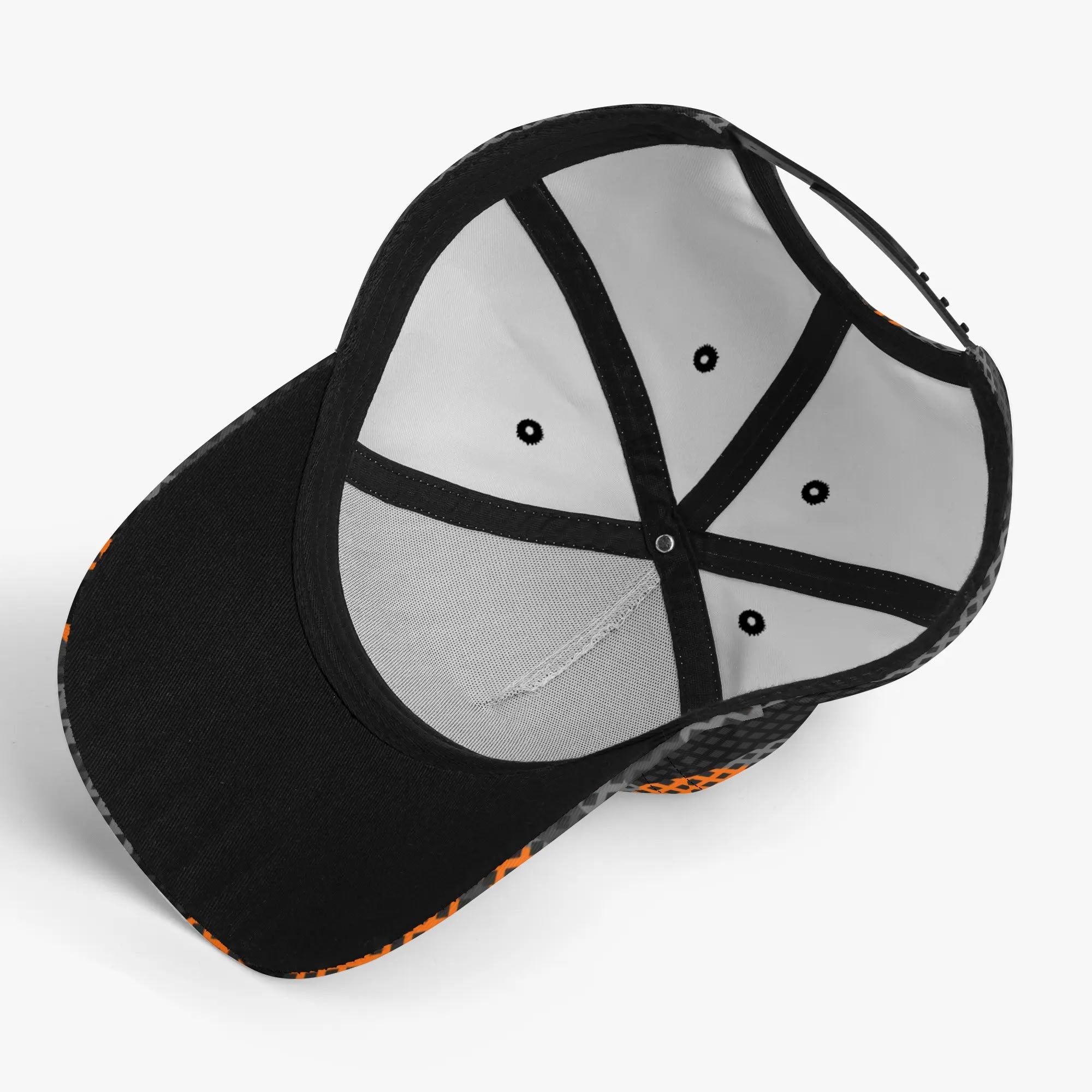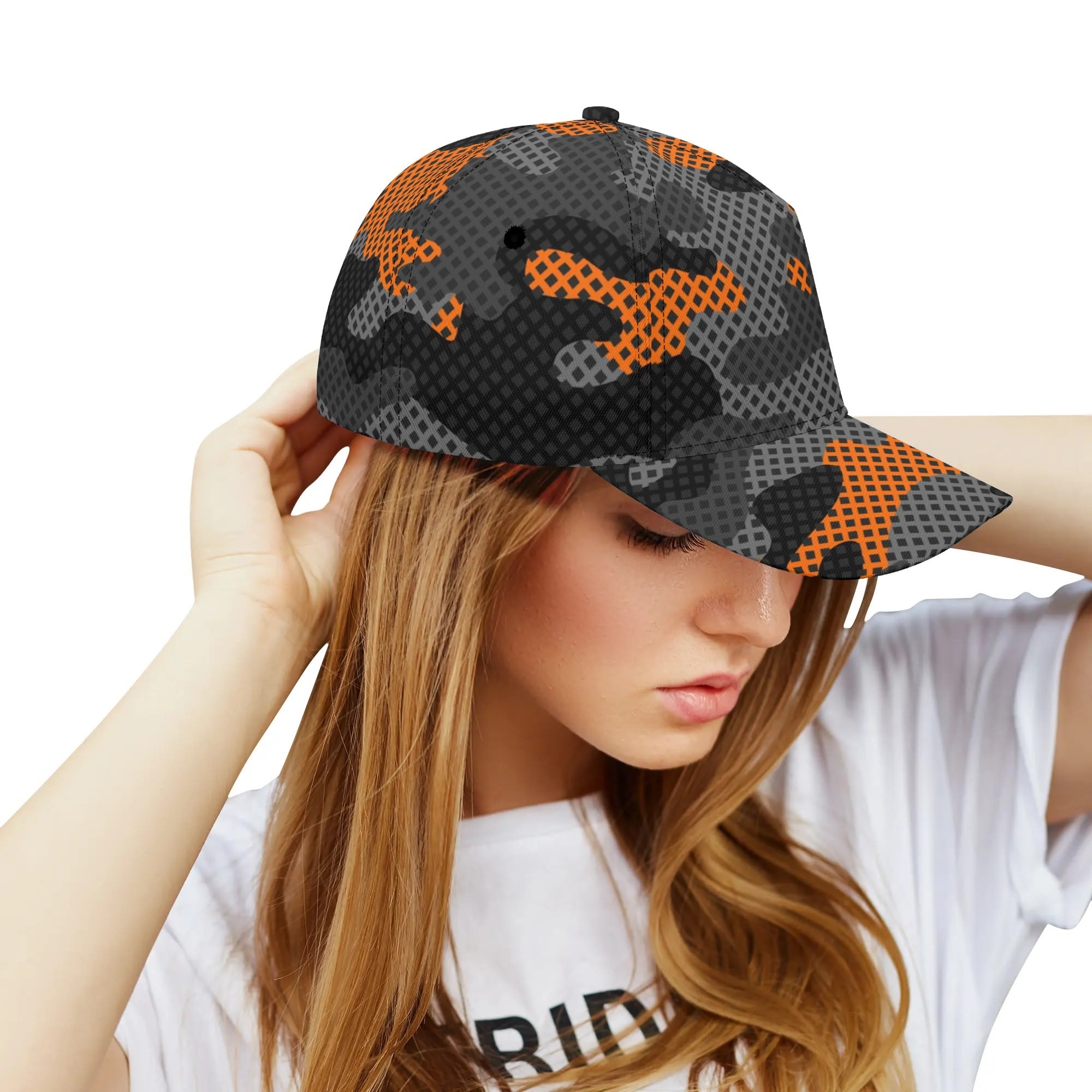 Camo Baseball Cap | Black & Orange Pixel Camouflage Hat Style