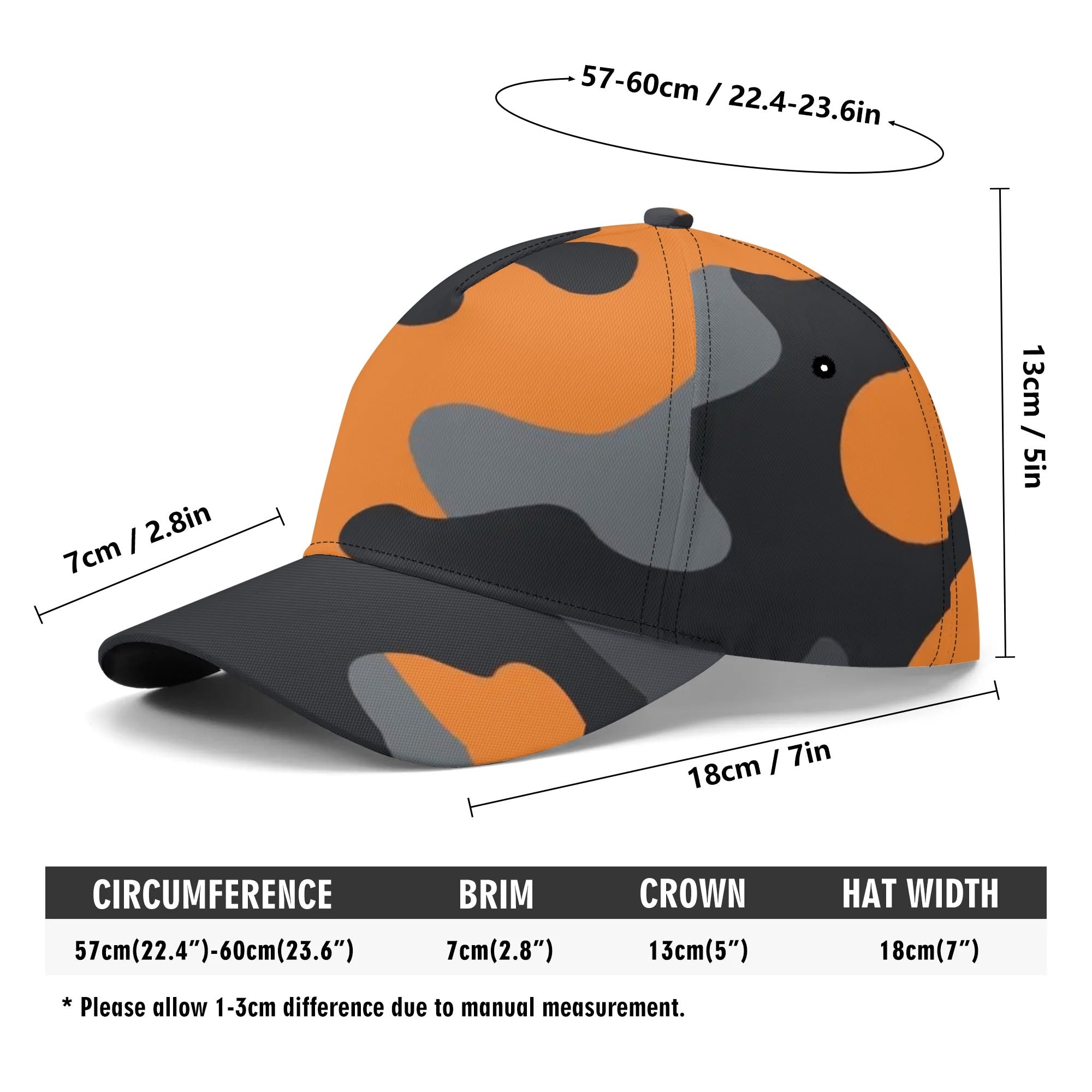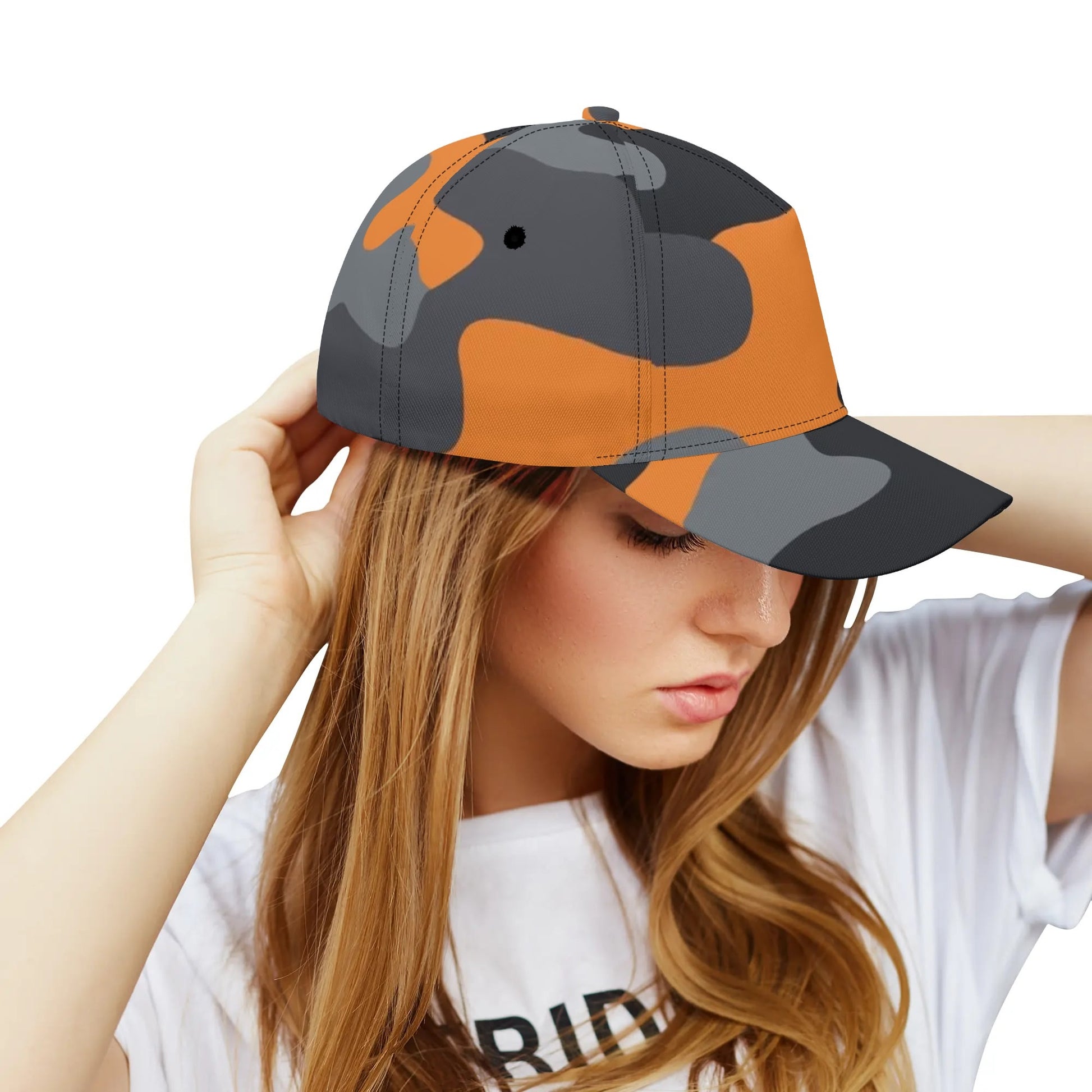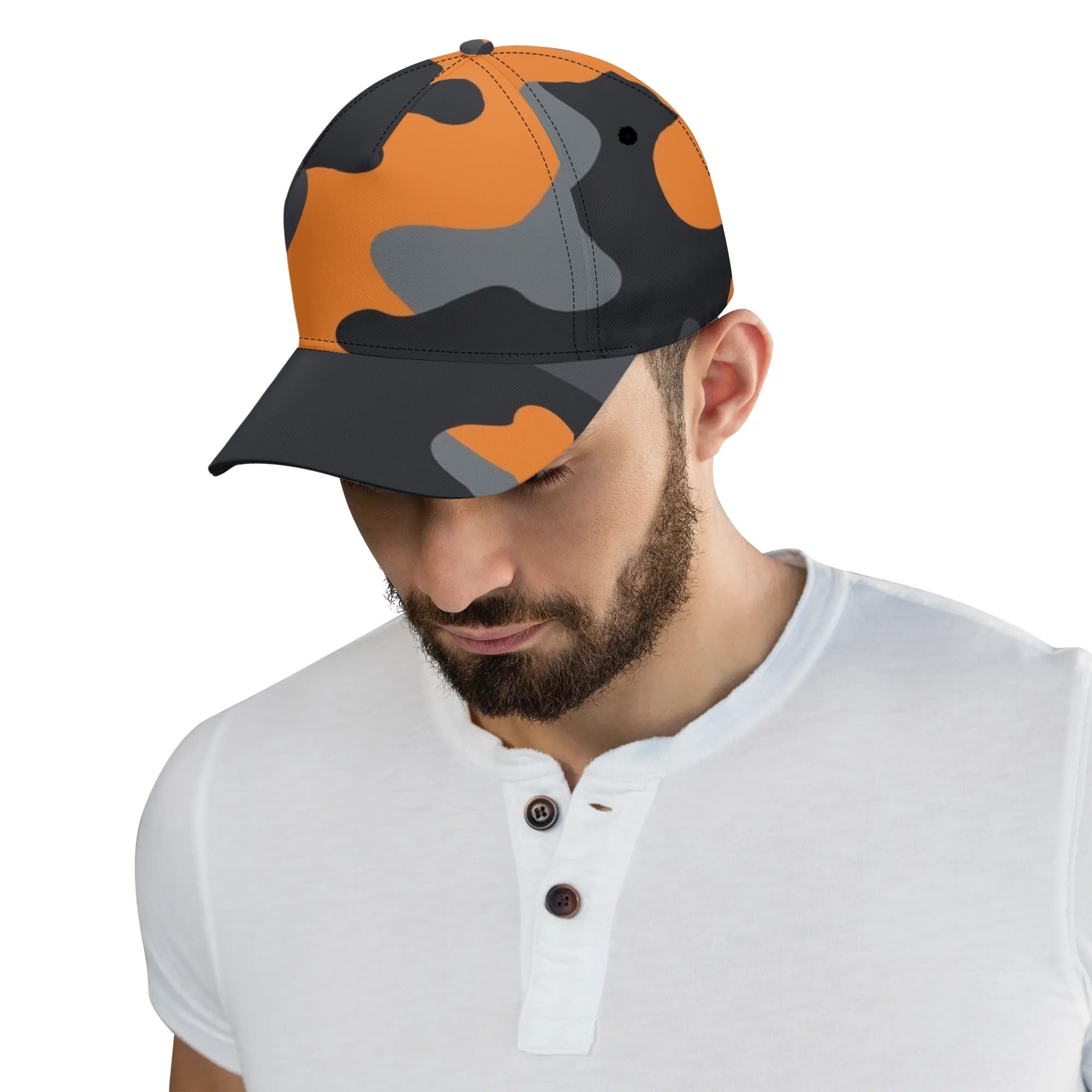 Camo Baseball Cap | Orange, Gray & Black Camouflage Style