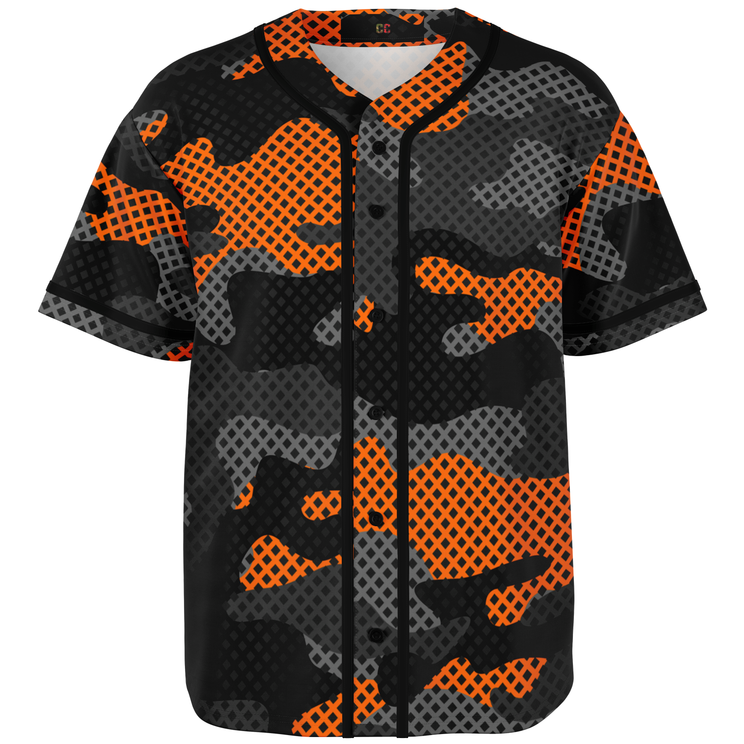 Camo Baseball Jersey | Black & Orange Pixel Camouflage Style