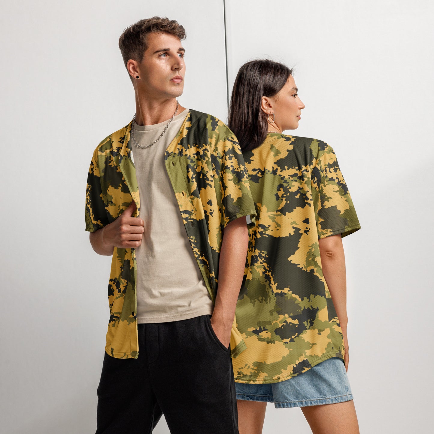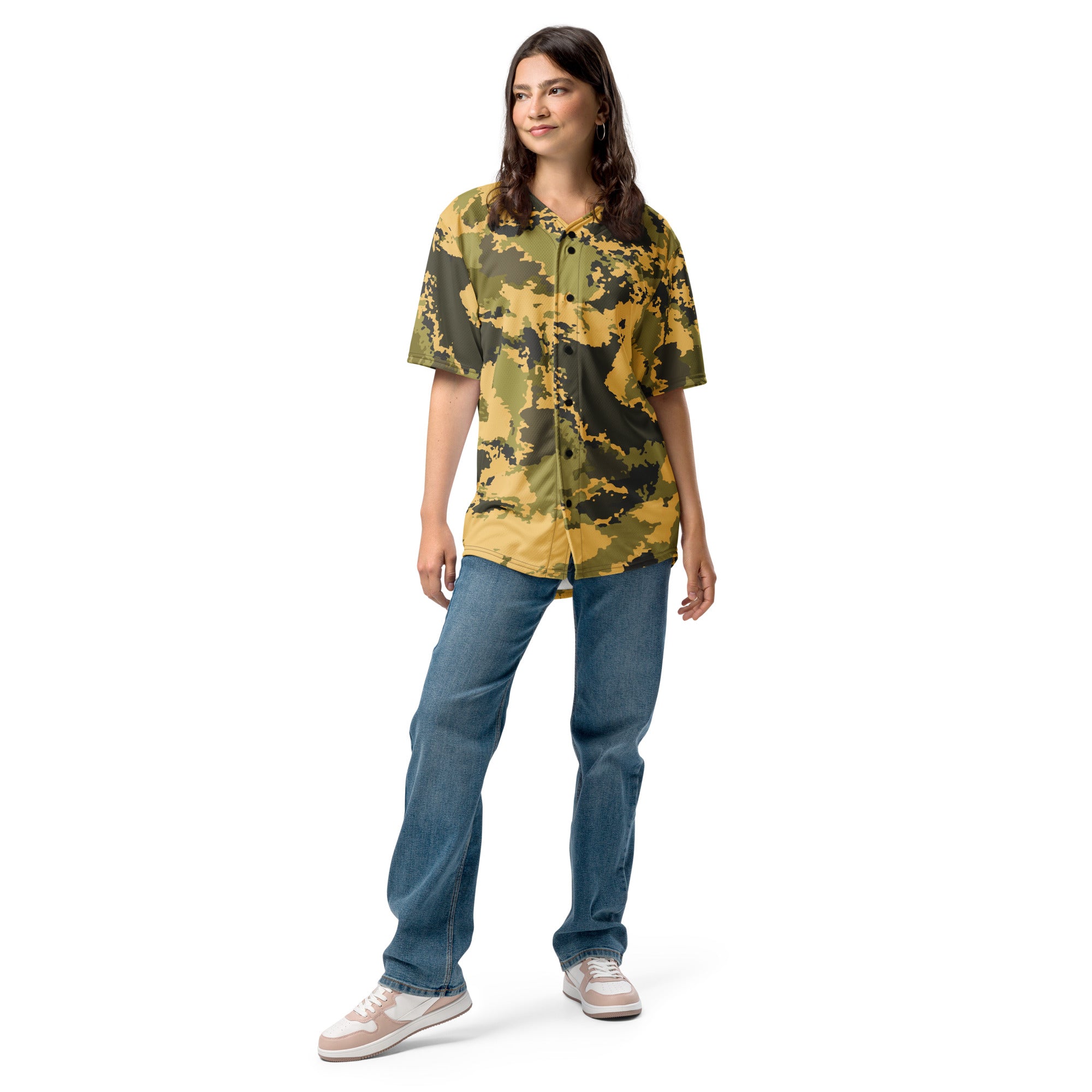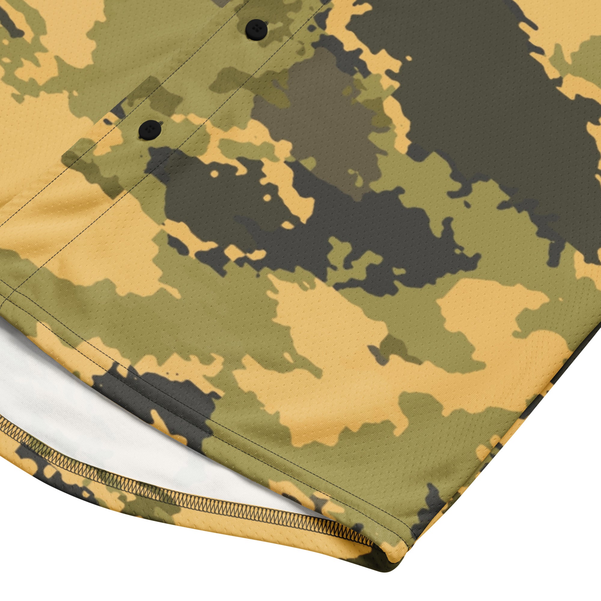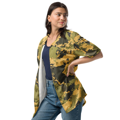 This Camo Baseball Jersey in Desert Green Watercolor Camouflage is perfect for any outdoor enthusiast. The unique design not only adds a touch of fashion to your outfit, but also provides functional benefits such as blending in with your surroundings. Stay comfortable and stylish in this jersey made with high-quality materials.