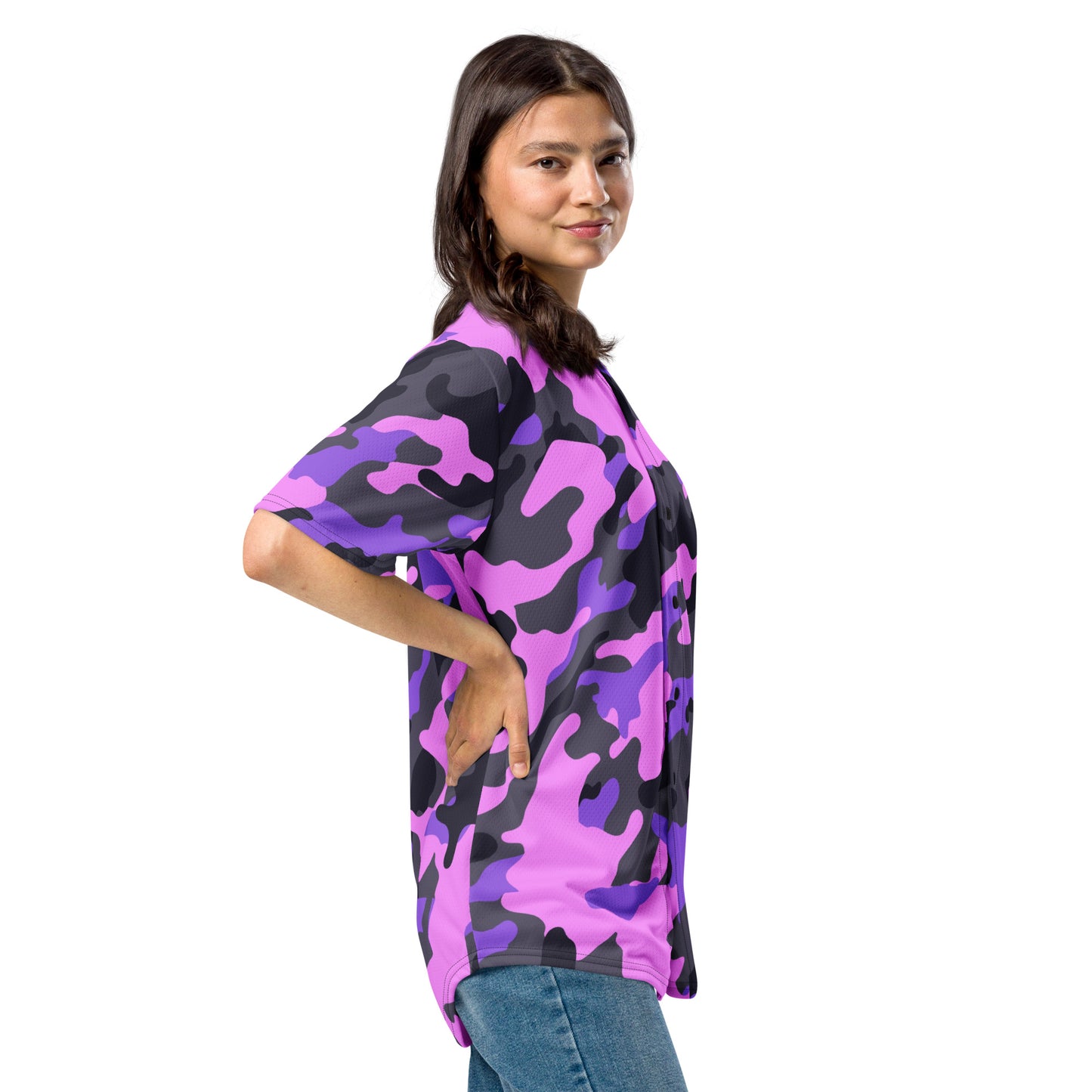 Camo Baseball Jersey | Pink, Black and Indigo Camouflage Style