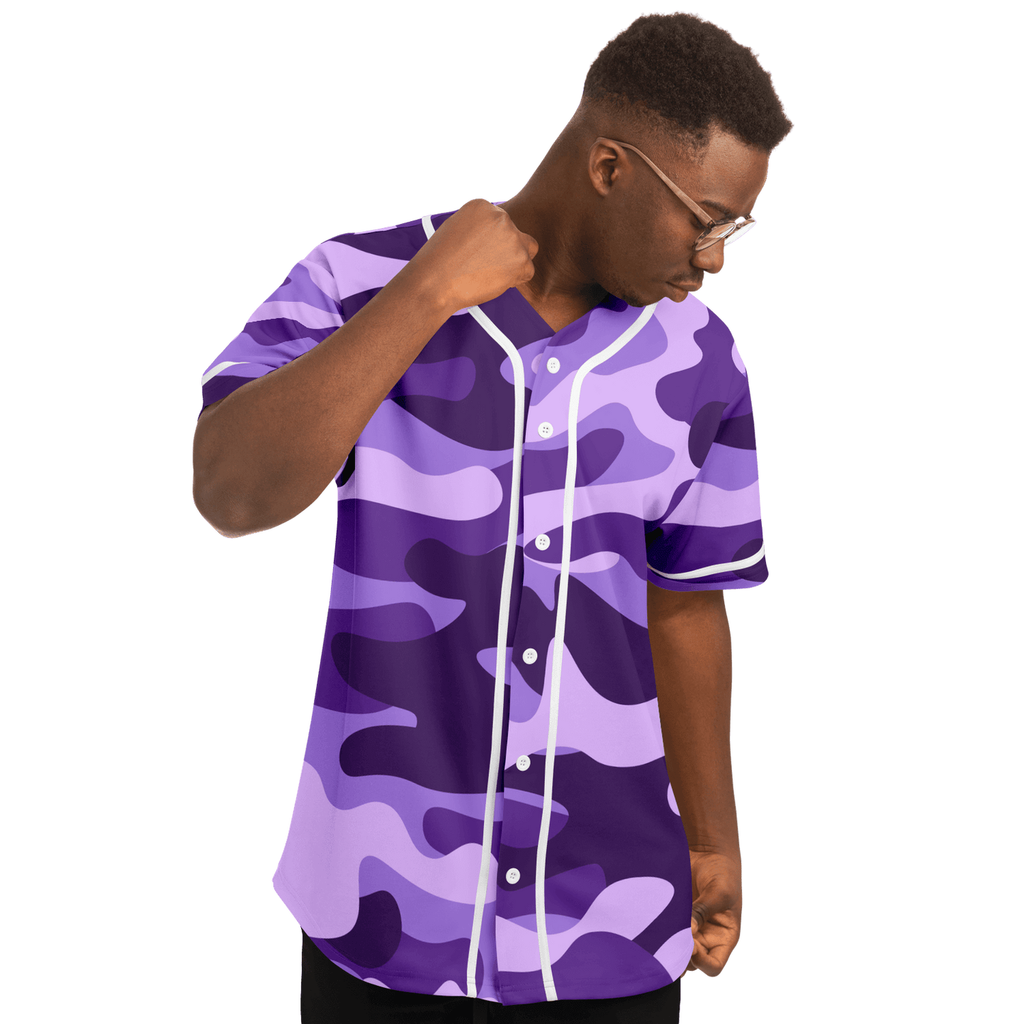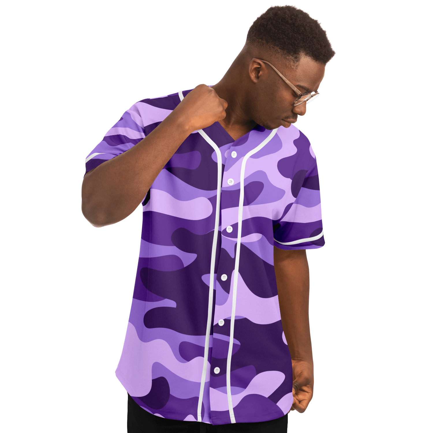 Expertly designed for those who want to stand out on the field, our Camo Baseball Jersey features a unique Purple, Blue & Mauve Camouflage pattern. Made with high-quality materials, this jersey not only offers a stylish look but also delivers exceptional comfort and durability. Elevate your game with our Camo Baseball Jersey.