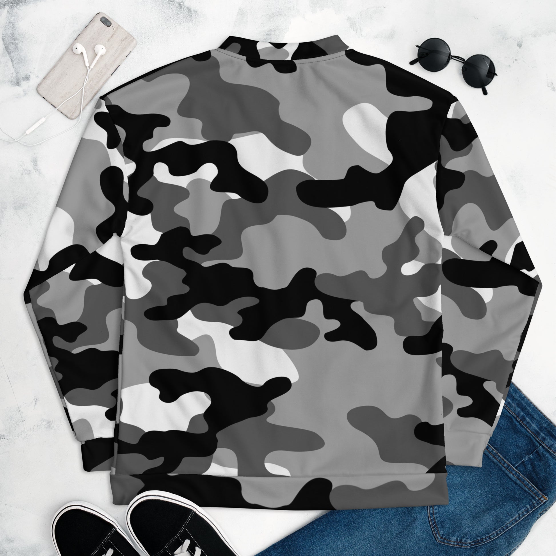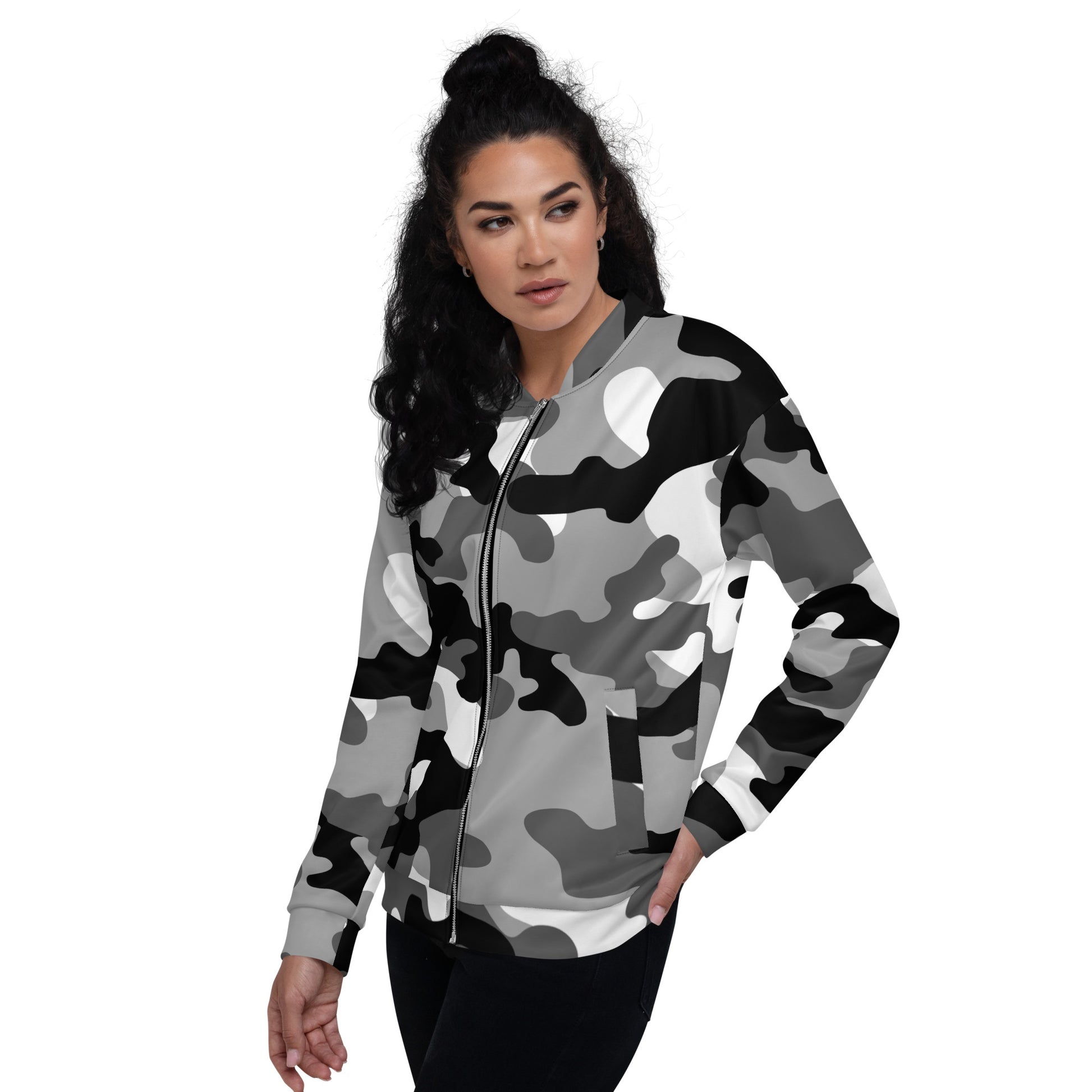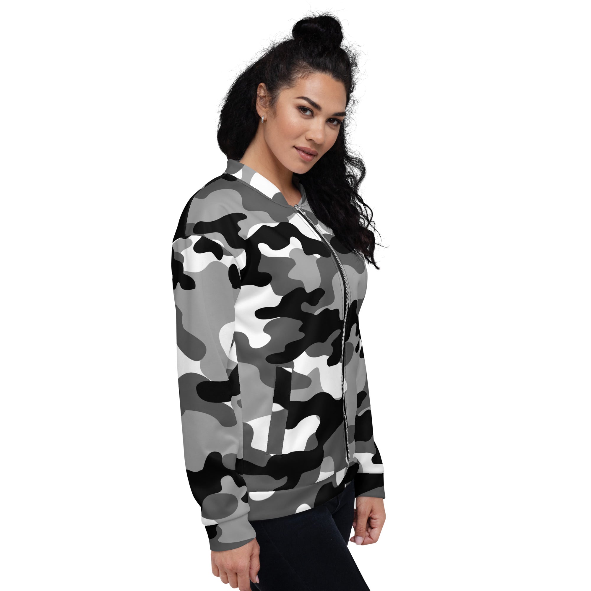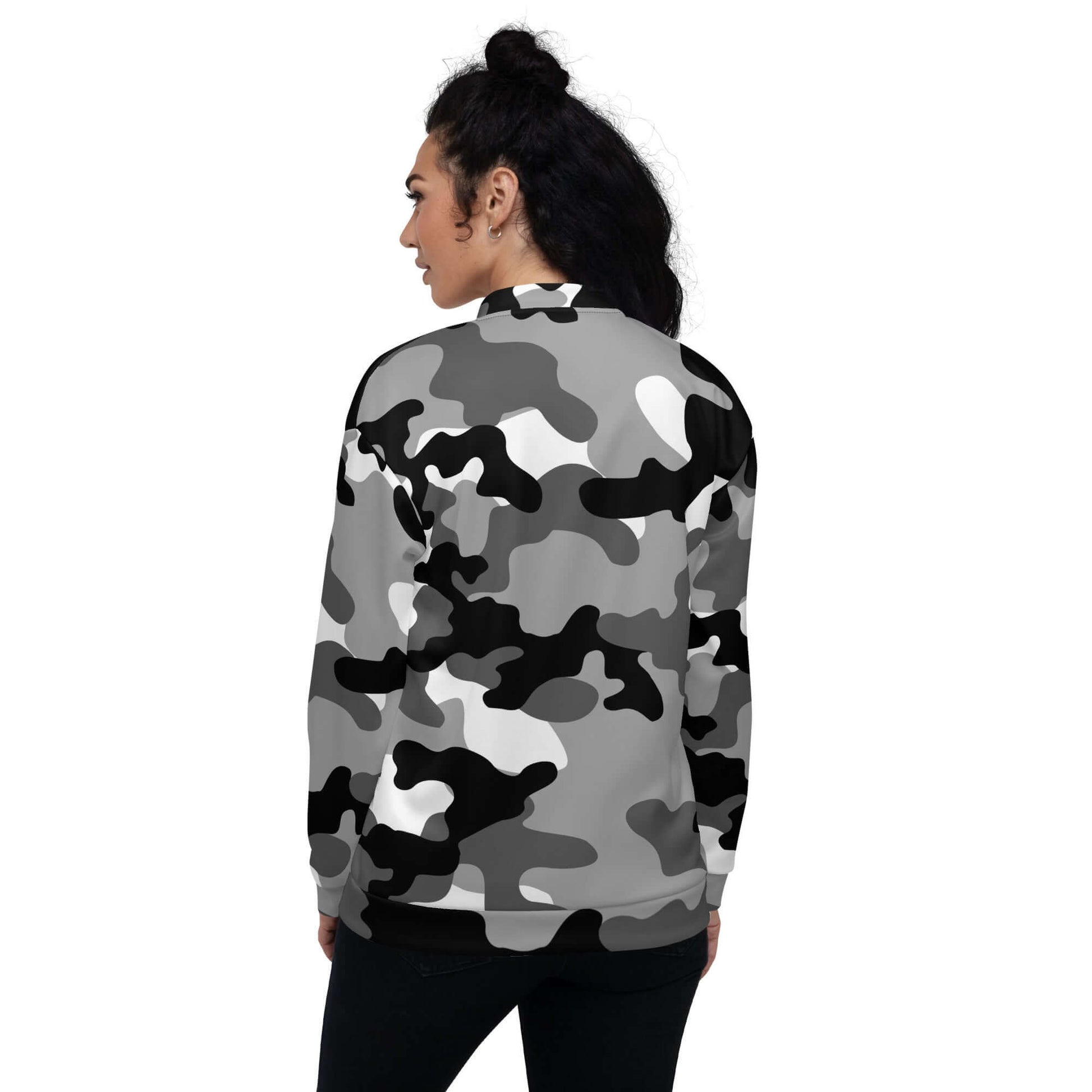 Camo Bomber Jacket | Unisex | Black, White & Gray