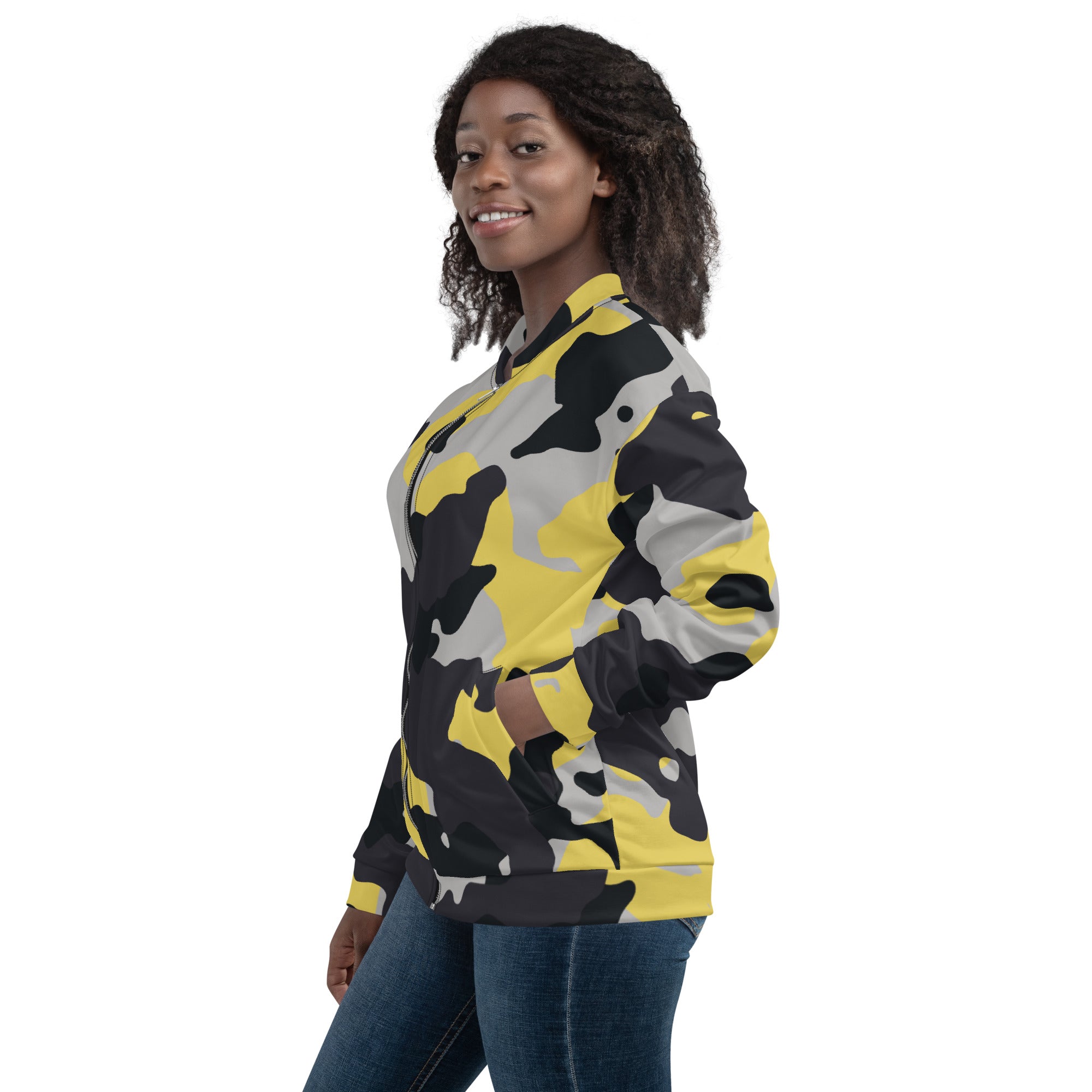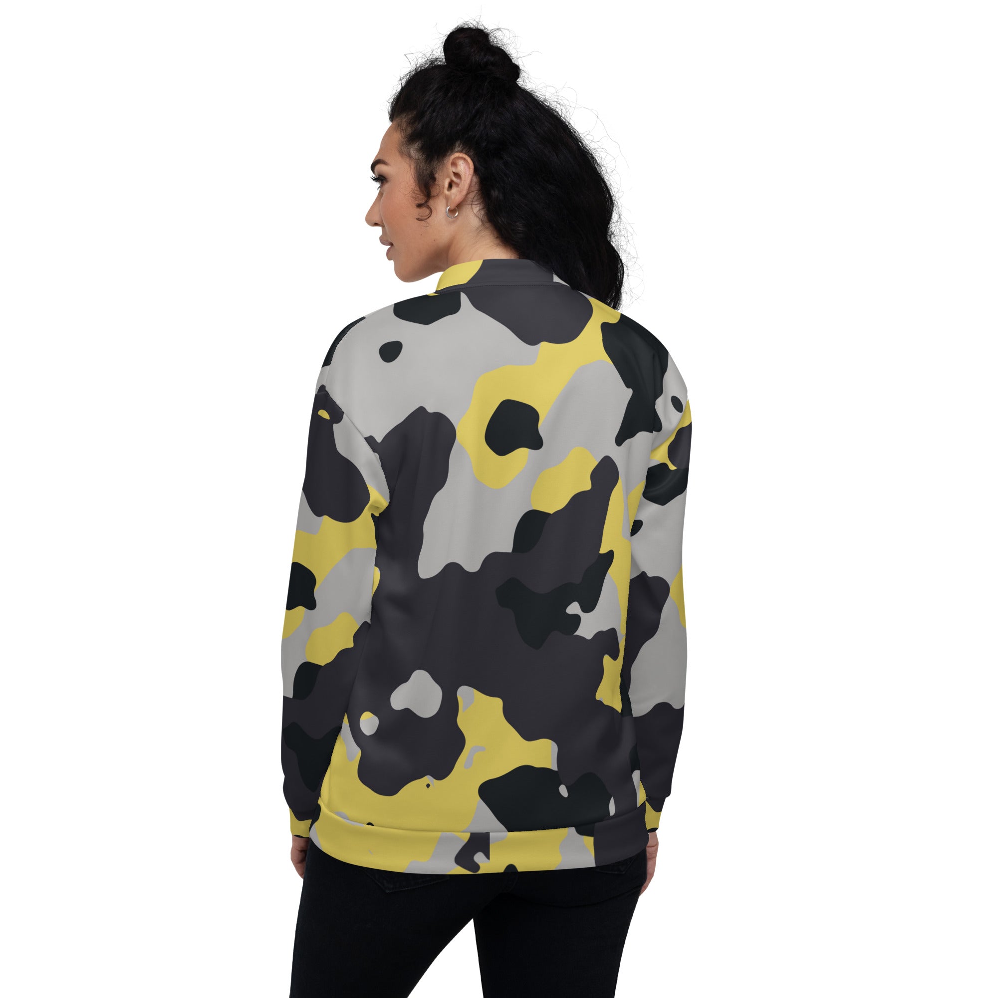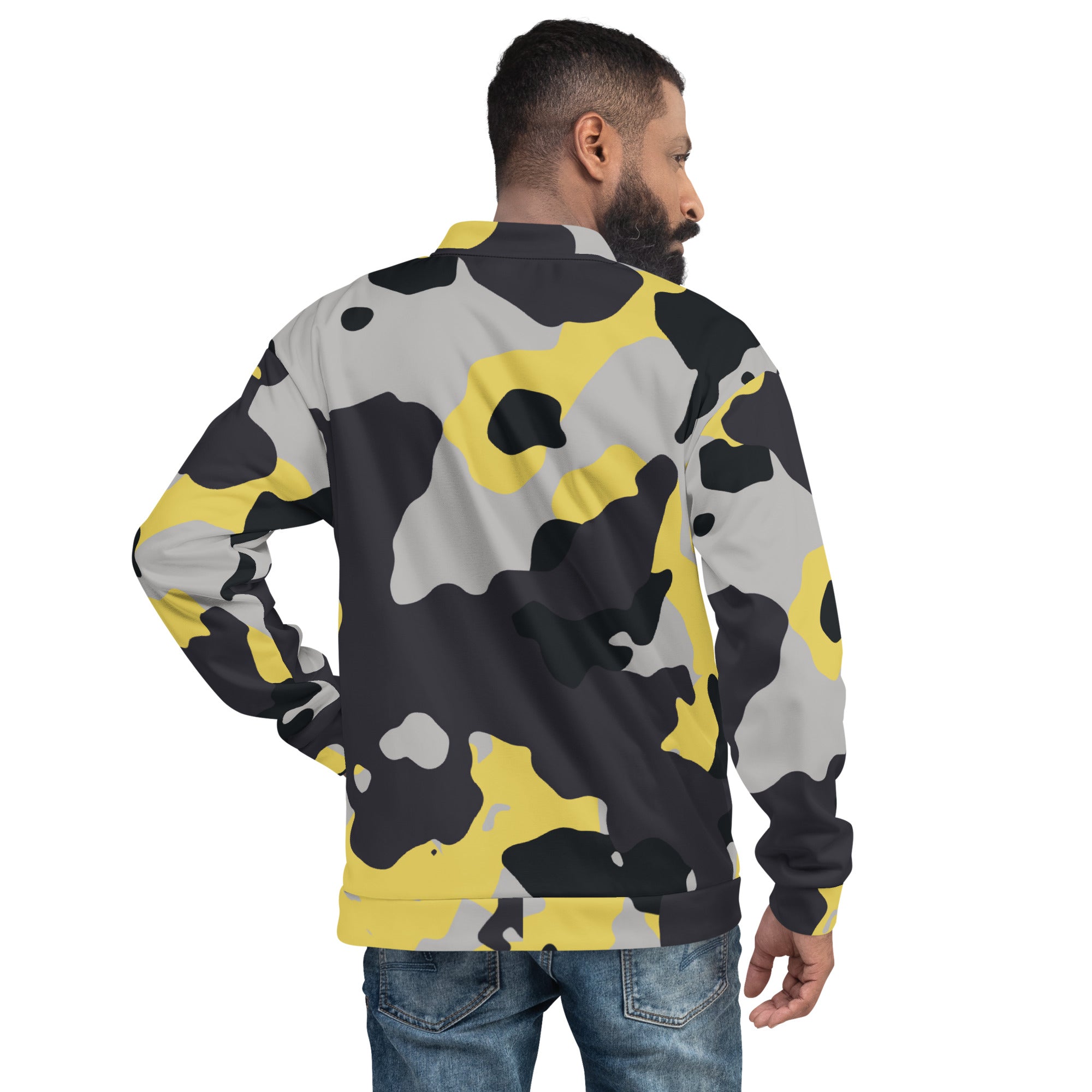 Camo Bomber Jacket | Unisex | Yellow, Black, and Silver Camouflage