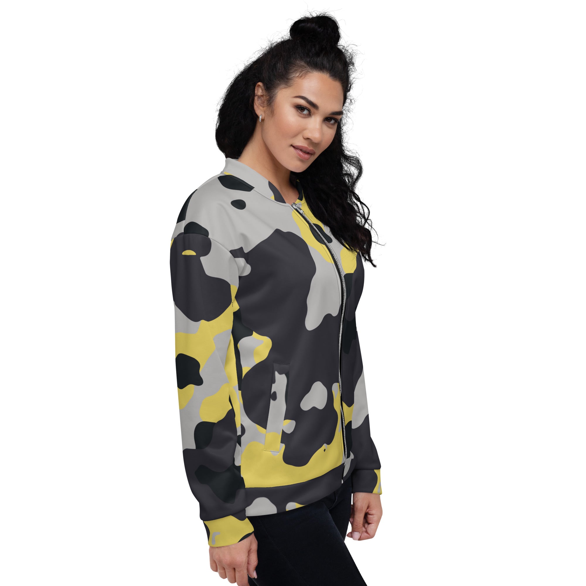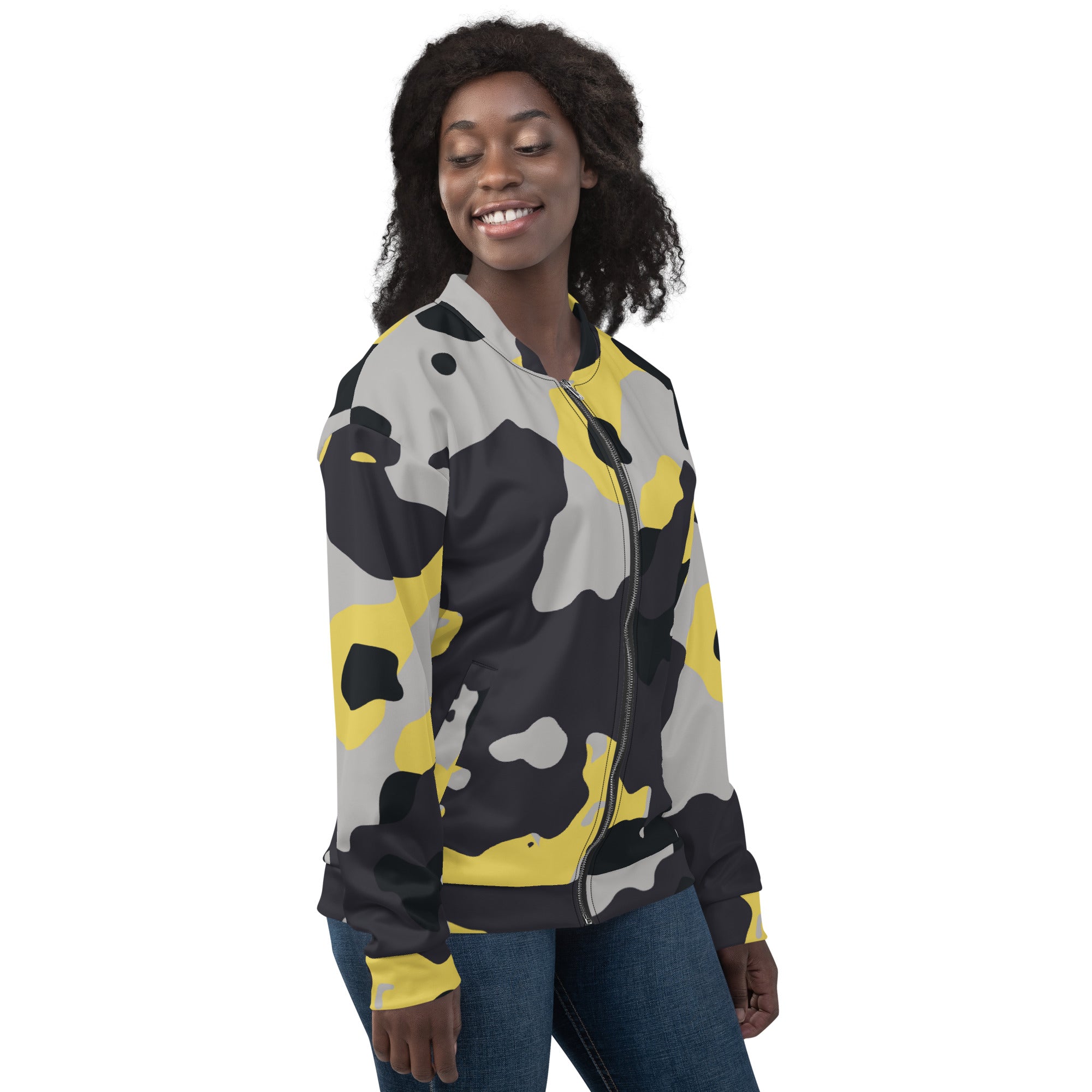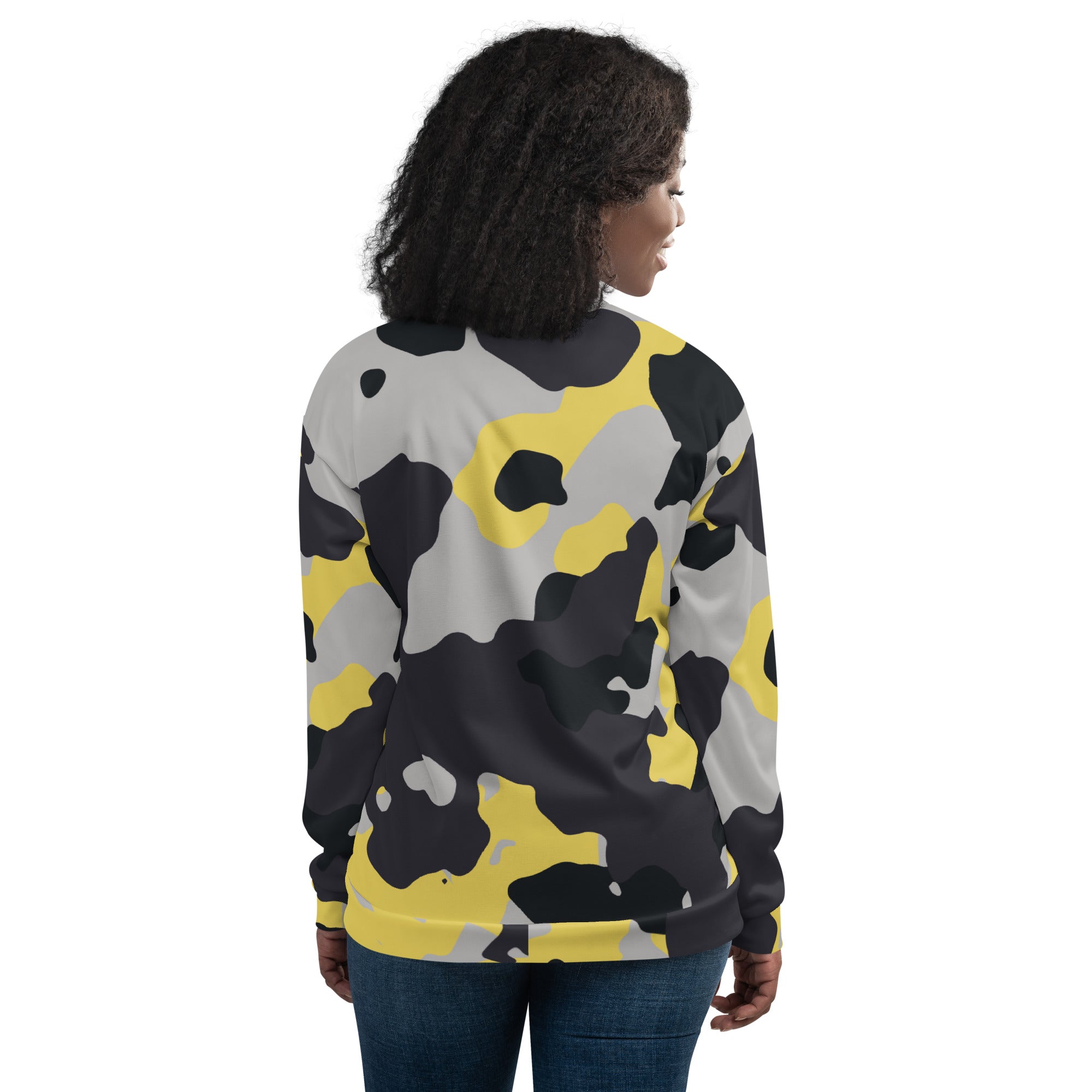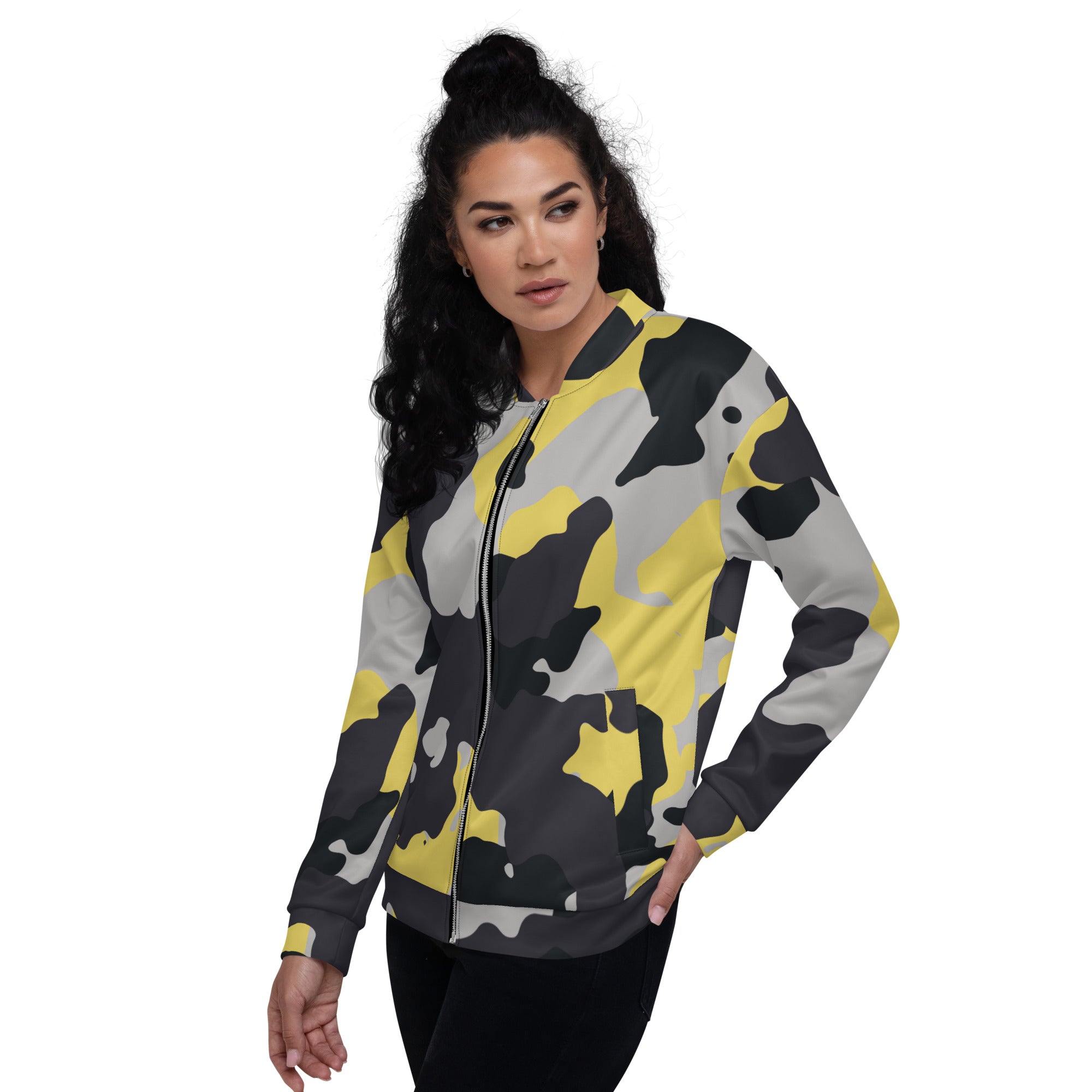 Camo Bomber Jacket | Unisex | Yellow, Black, and Silver Camouflage