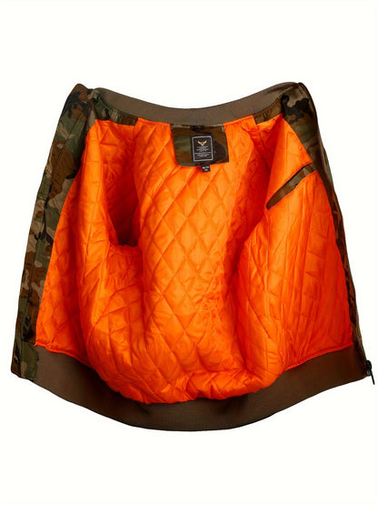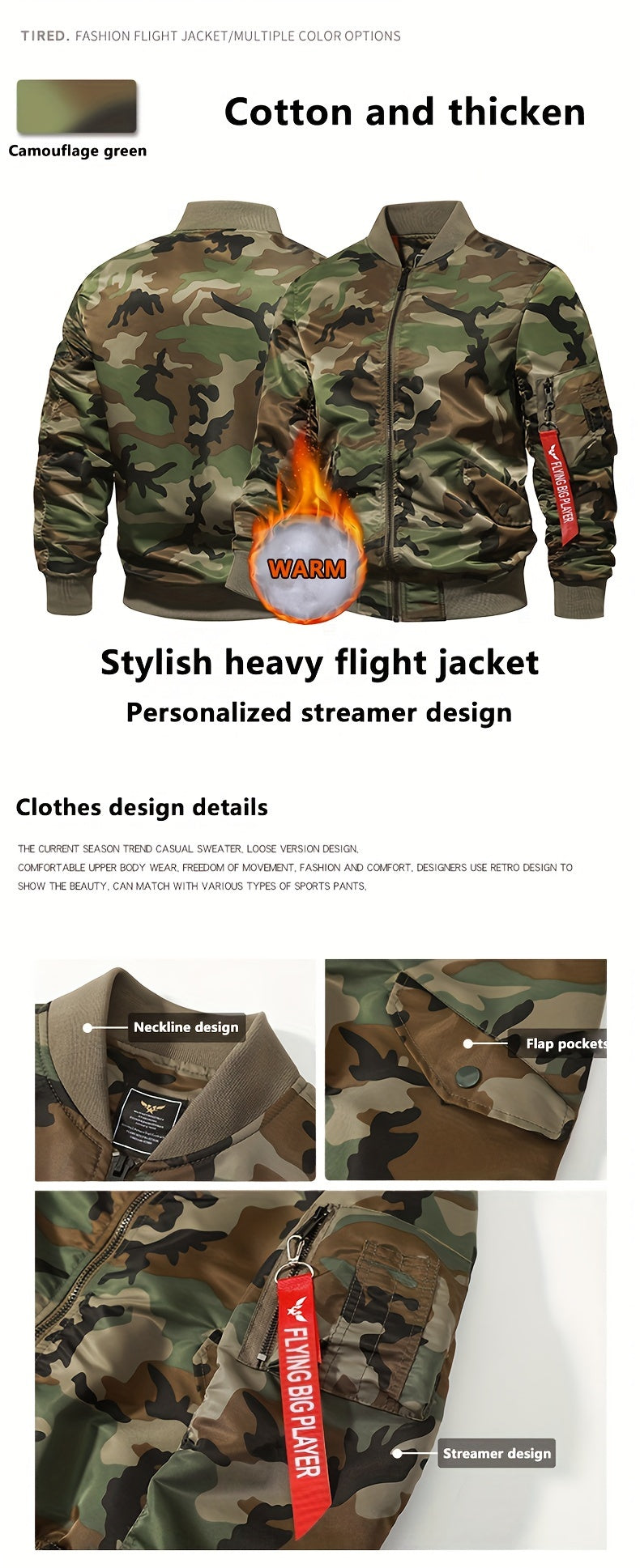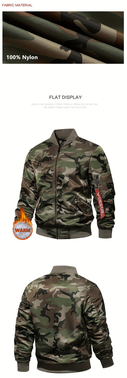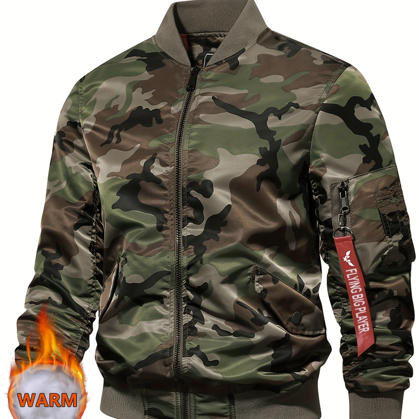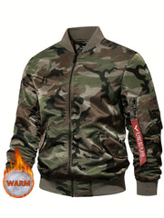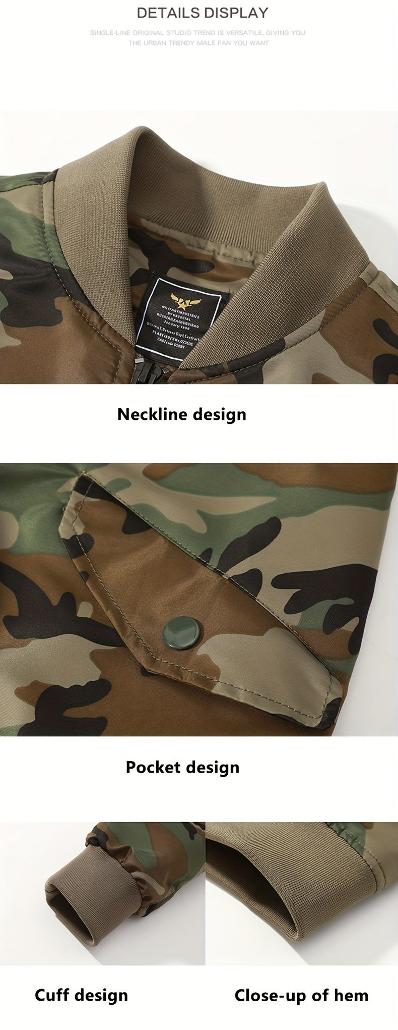 Camo Bomber Jacket with Baseball Collar & Pockets