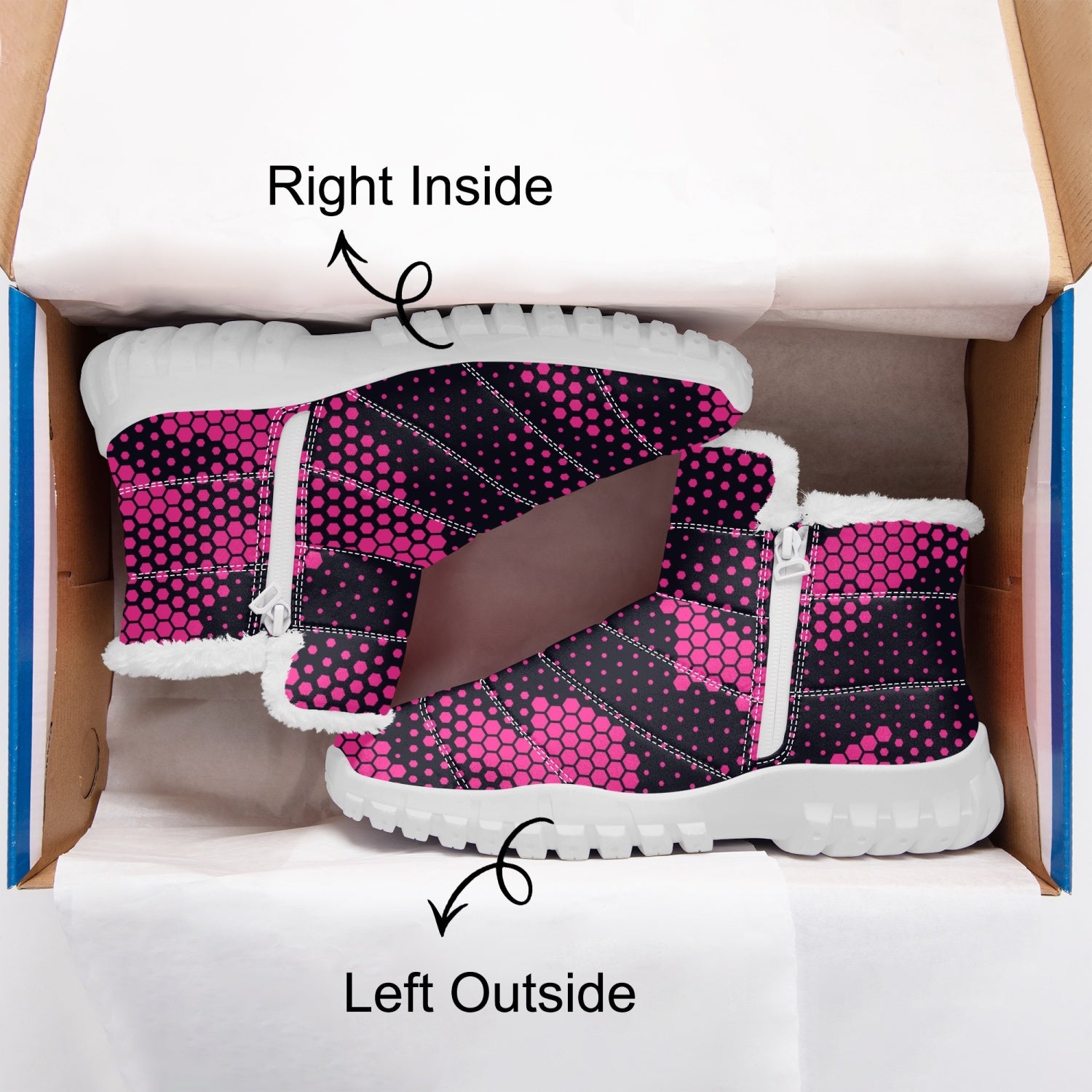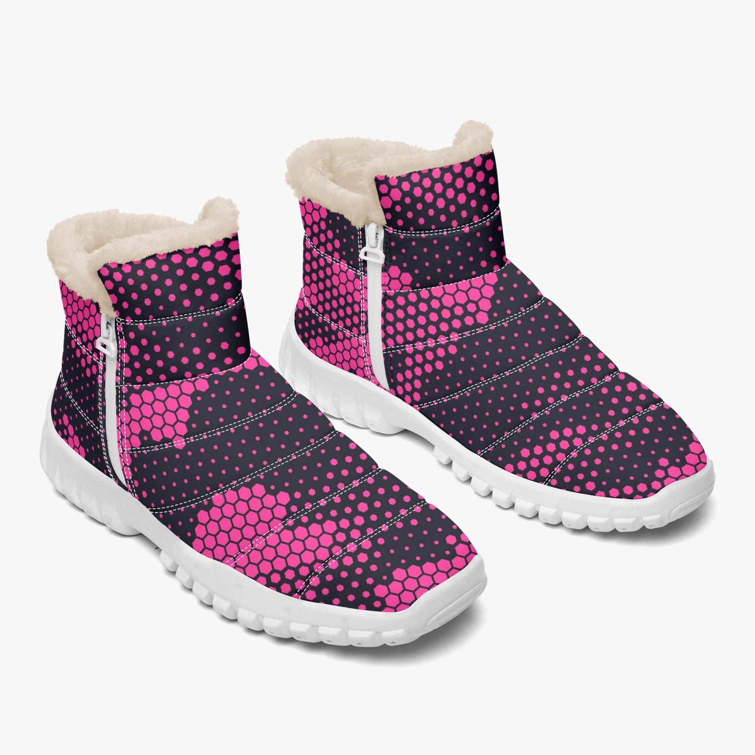 These Camo Boots offer a unique blend of style and functionality. The cotton-pad fur provides warmth and comfort, while the zipper feature allows for easy wear and removal. The digital pink design adds a touch of color to complete the look. Perfect for the fashion-forward individual with a love for the outdoors.