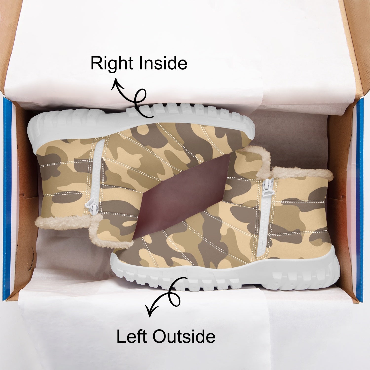 Conquer the great outdoors in style with our Camo Boots. Featuring a cozy cotton-pad fur lining and a convenient zipper closure, these boots are the perfect blend of fashion and function. Available in a classic khaki color, they are the ultimate must-have for any outdoor enthusiast.