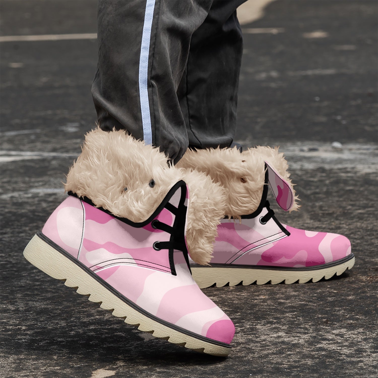 Camo Boots | Lavender Pink Cotton-Pad Fur Lining