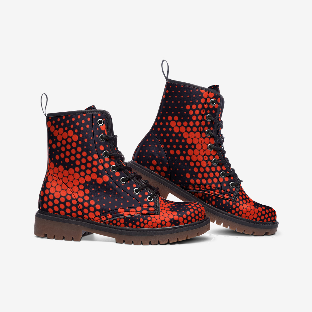 These Camo Boots feature a unique Leather Camouflage design in Digital Orange and Blue. Made from high-quality materials, they provide both style and durability. Perfect for outdoor enthusiasts and fashion-forward individuals.