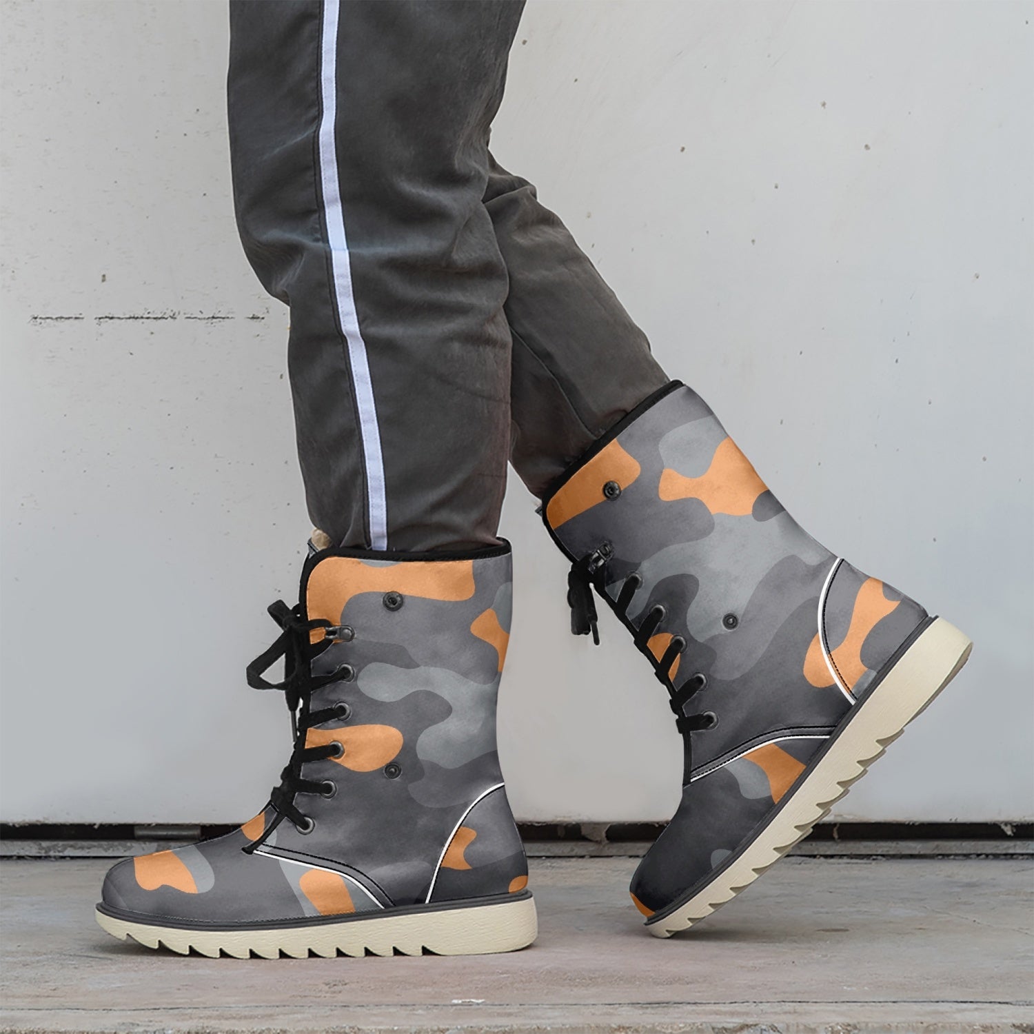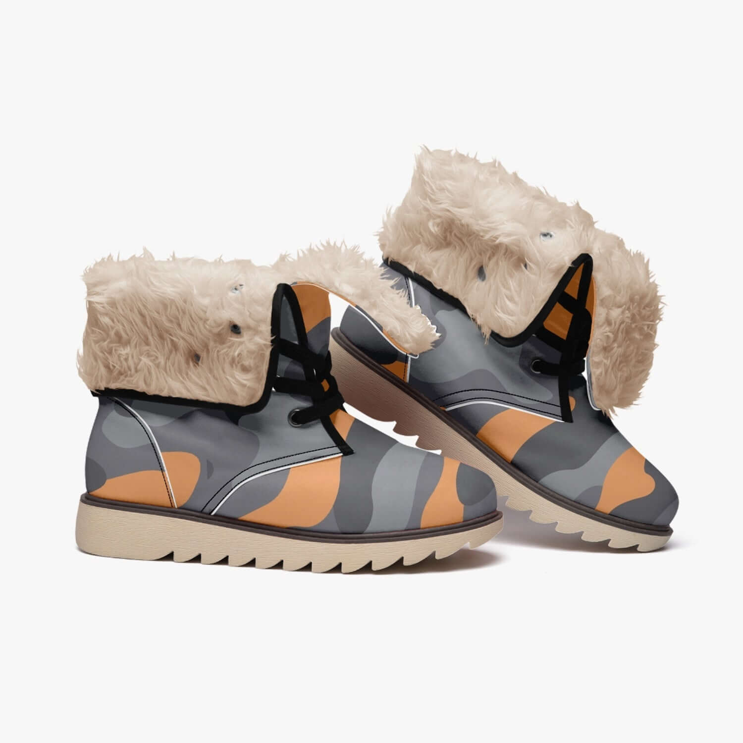 Camo Boots | Orange, Black & Gray Cotton-Pad Fur Lining