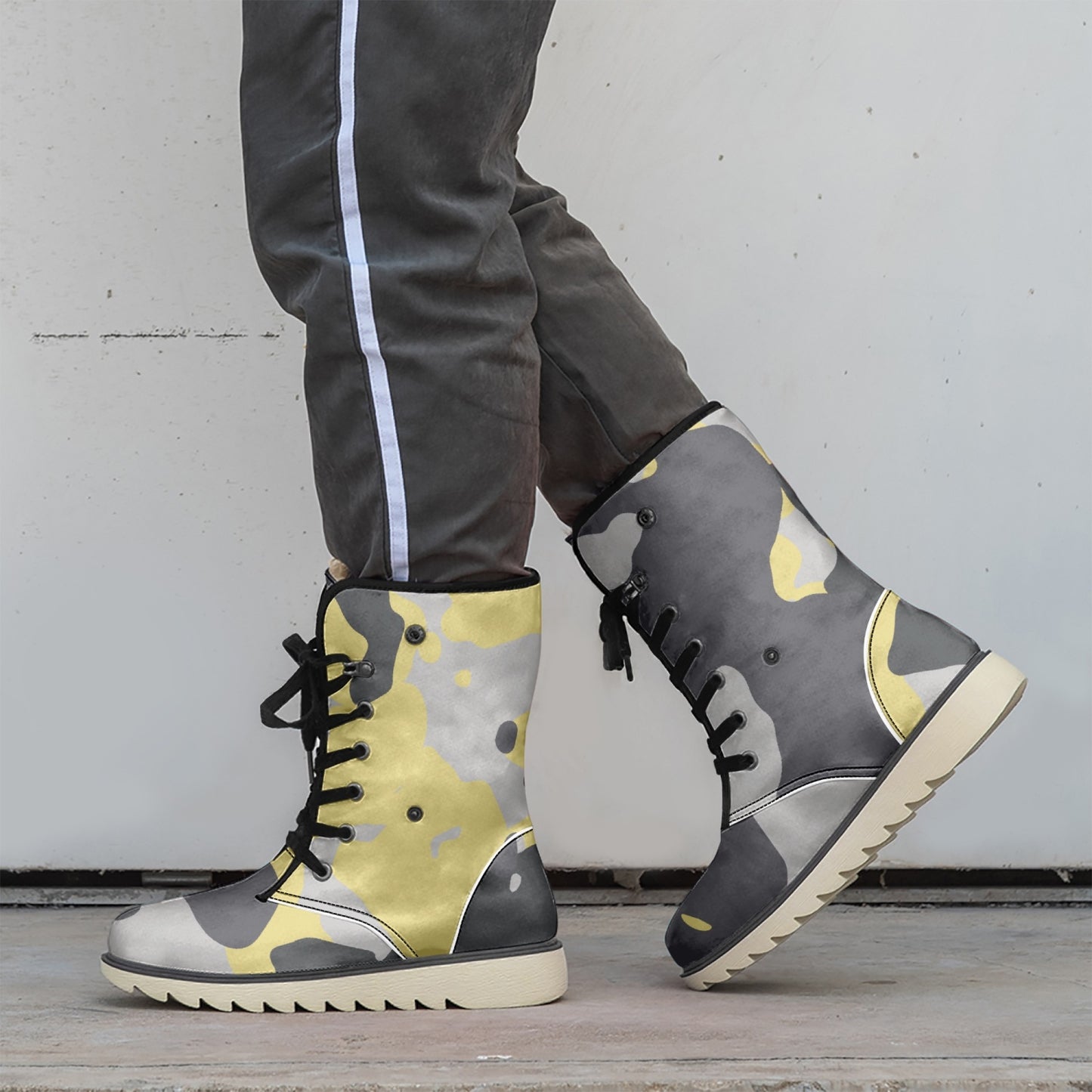 Camo Boots | Yellow, Black, & Silver Cotton-Pad Fur Lining