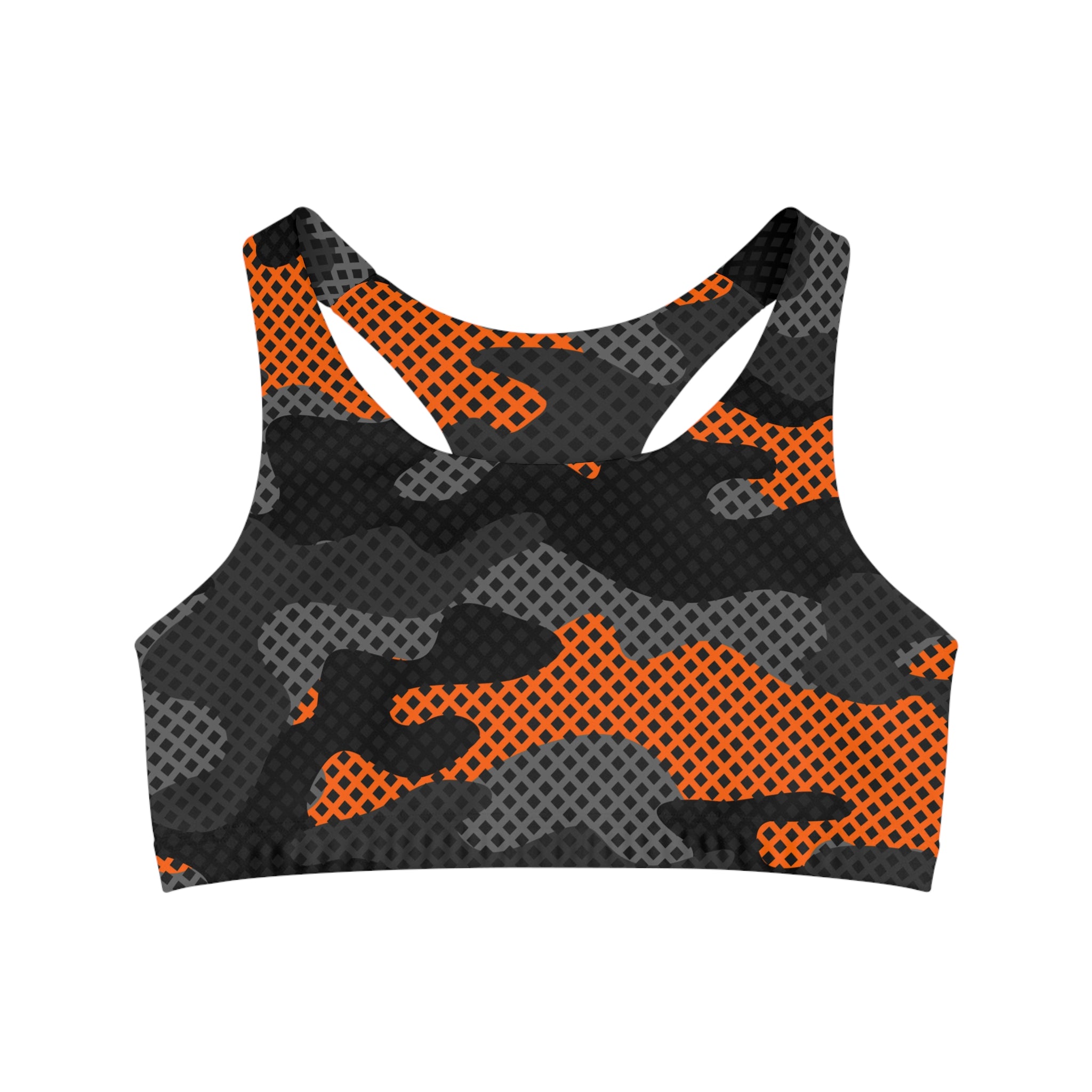 Camo Bra | Black and Orange Pixel Sports Camouflage