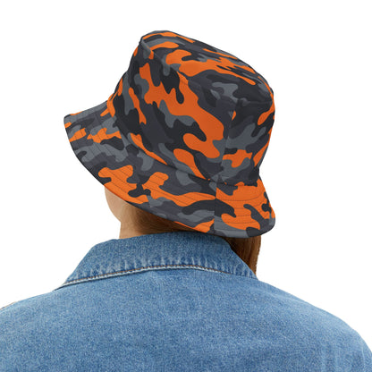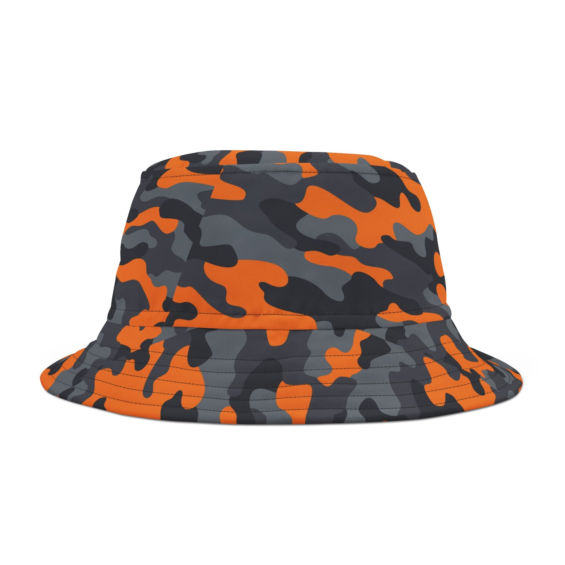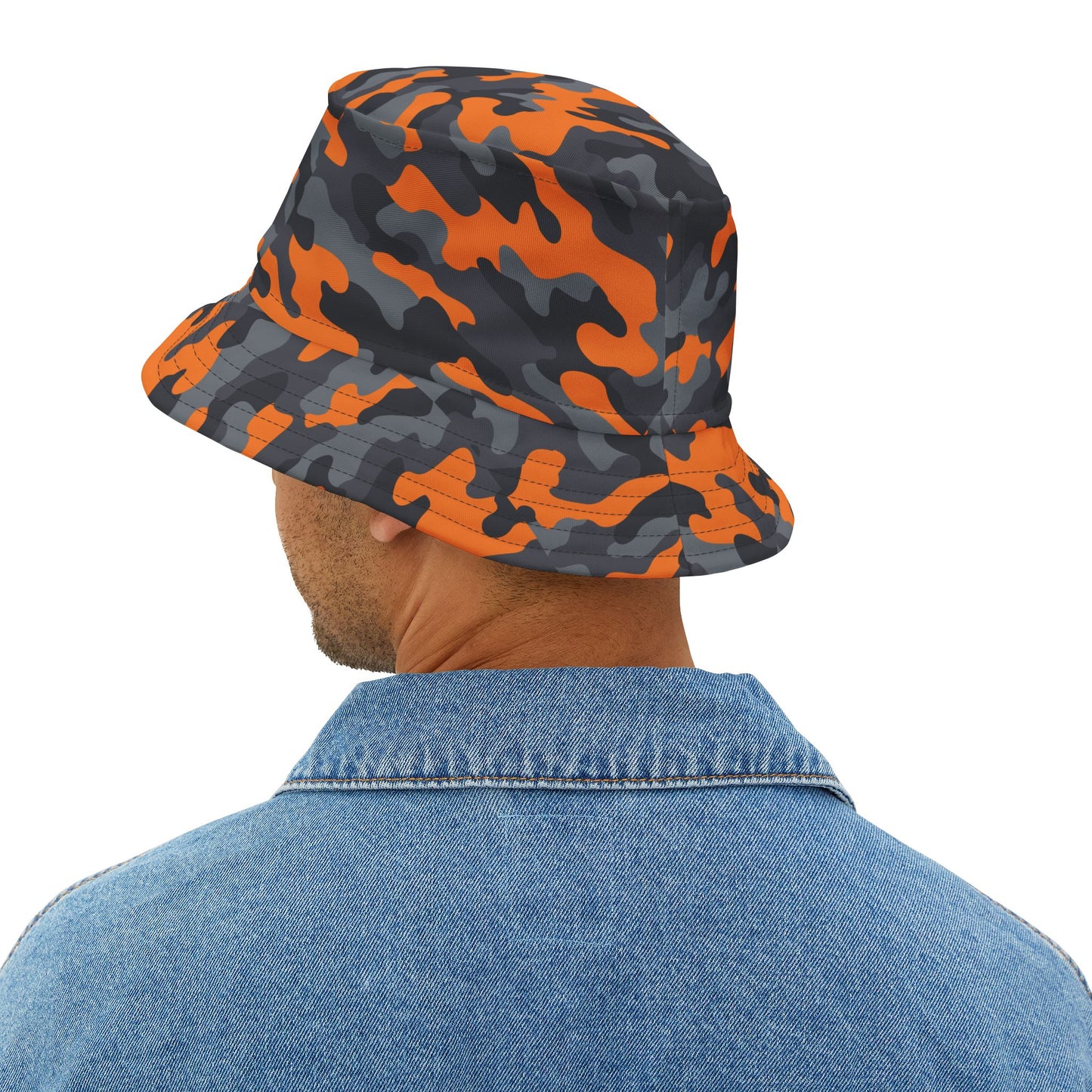 Camo Bucket Hat | Orange, Black, and Gray Camouflage