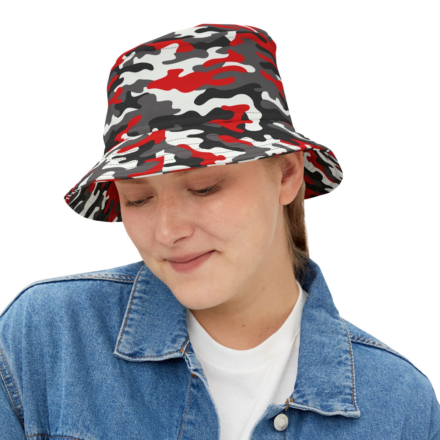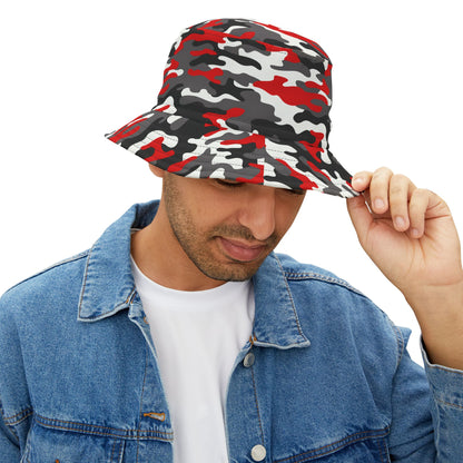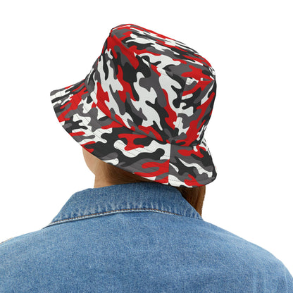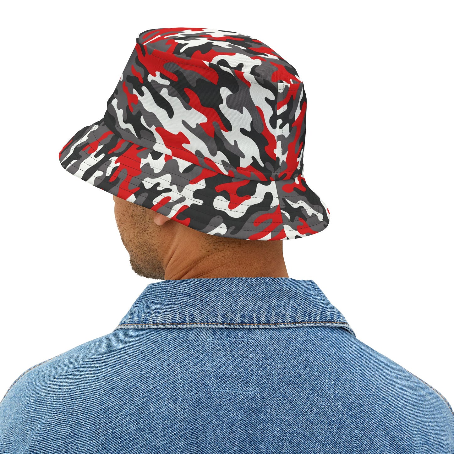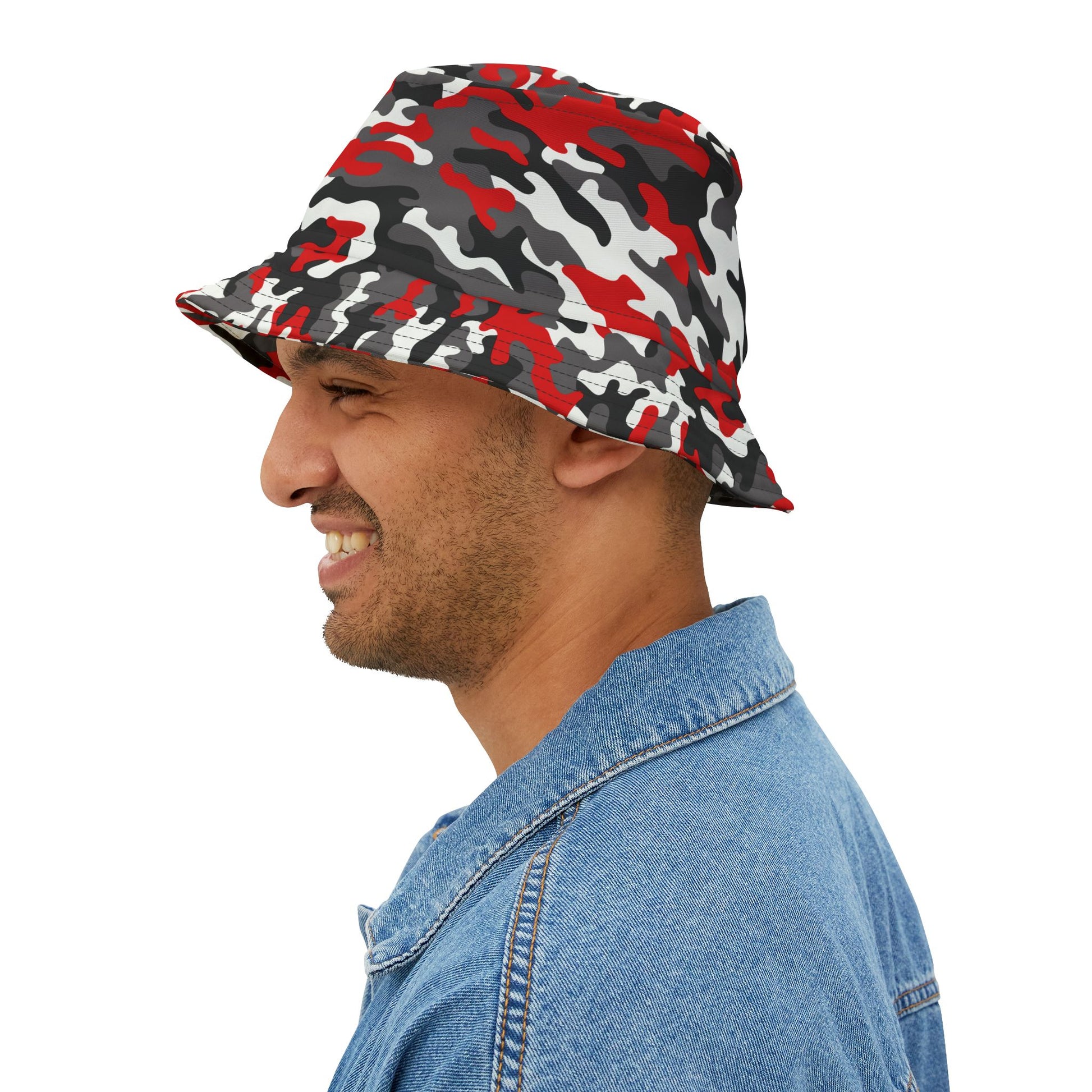 Camo Bucket Hat | Red, Black, and White Camouflage