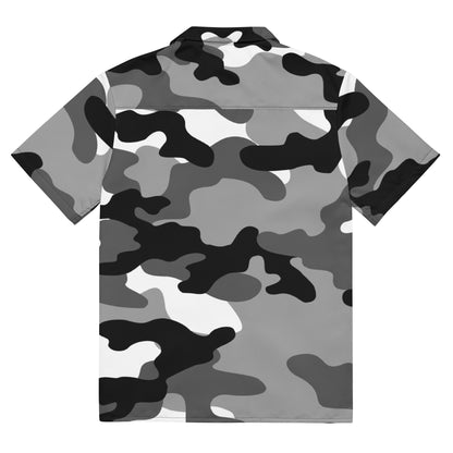 This Camo Button Up Shirt features a bold black, white, and gray camouflage pattern. Perfect for outdoor enthusiasts and fashion-forward individuals, this shirt provides both style and comfort. Made with high-quality materials, it offers durability and versatility for any occasion. Stand out in style with this Camo Button Up Shirt.