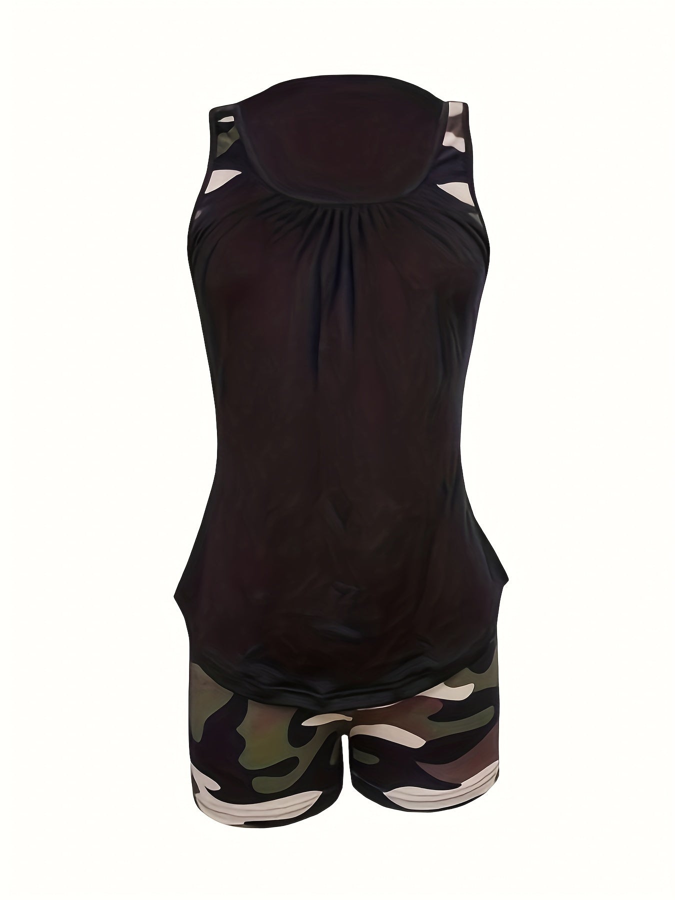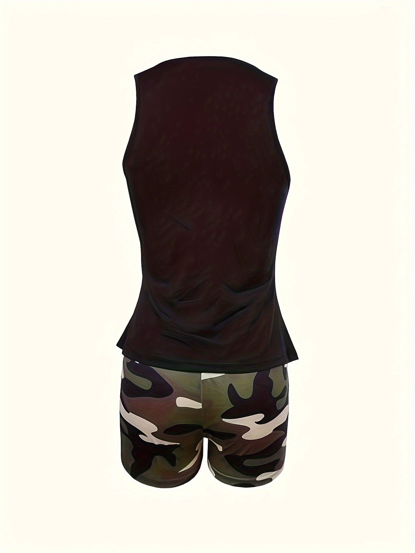 Camo Casual Set: Sleeveless Tank & Skinny Fit Shorts for Women