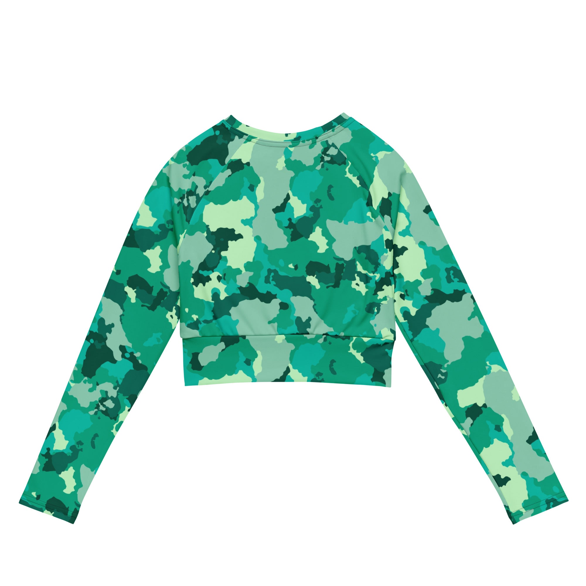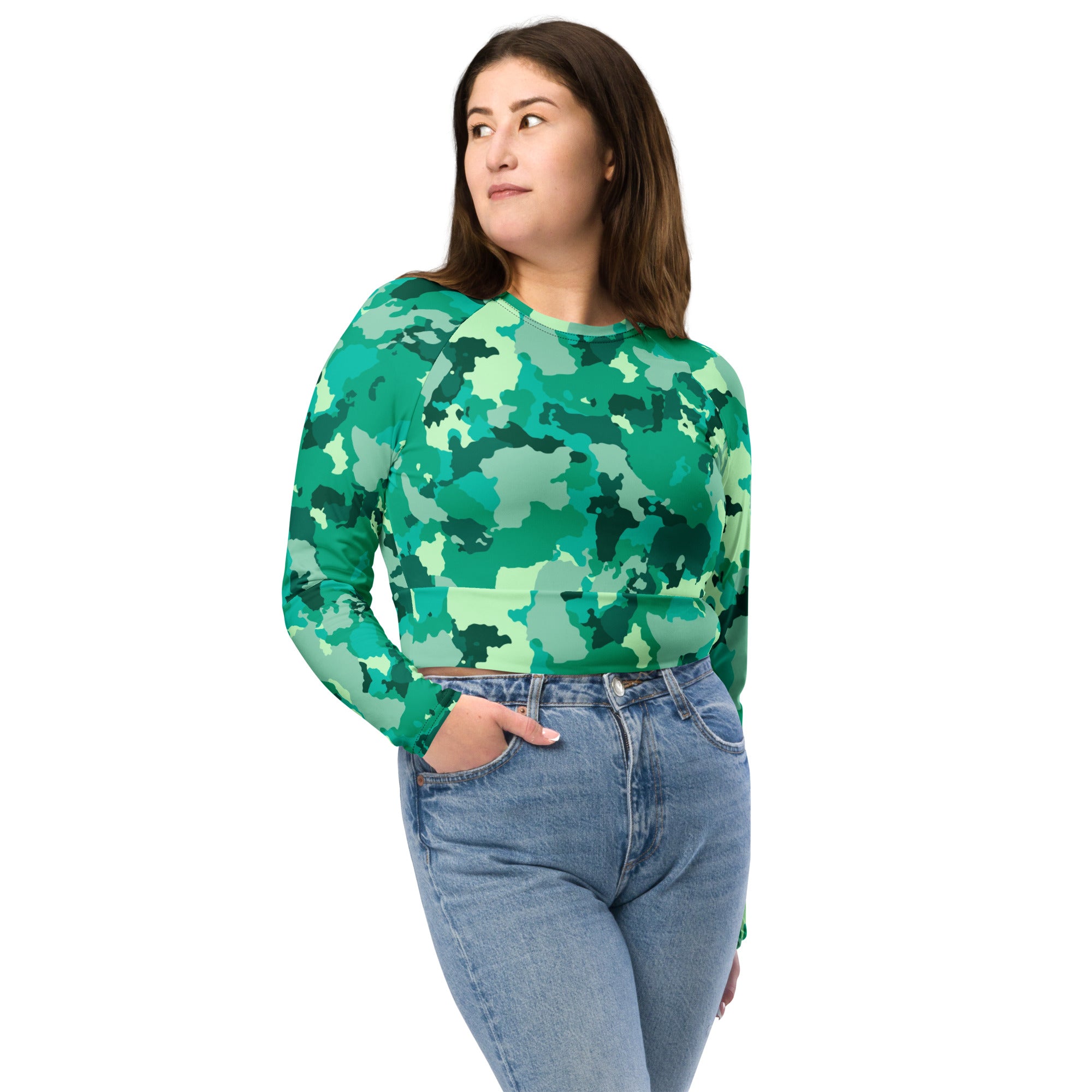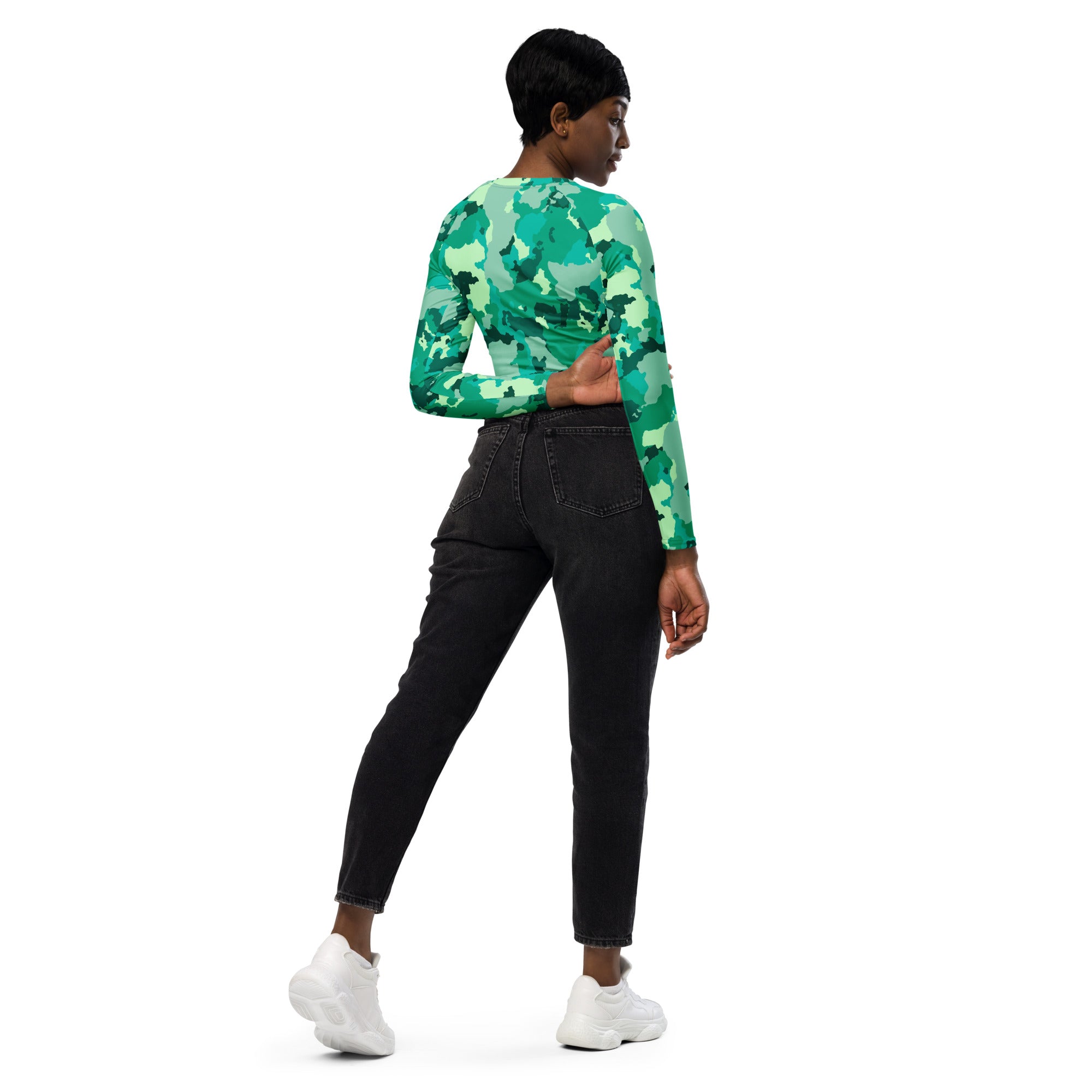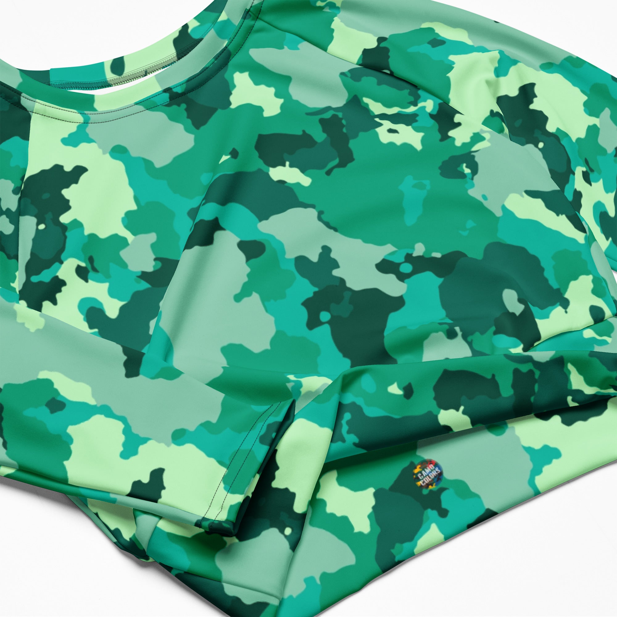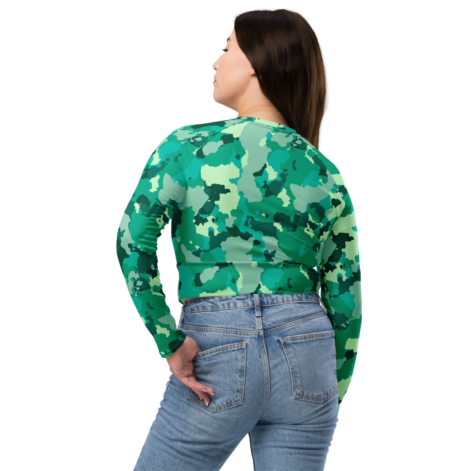 Camo Crop Top | Cyan Green Camouflage | Long-sleeve