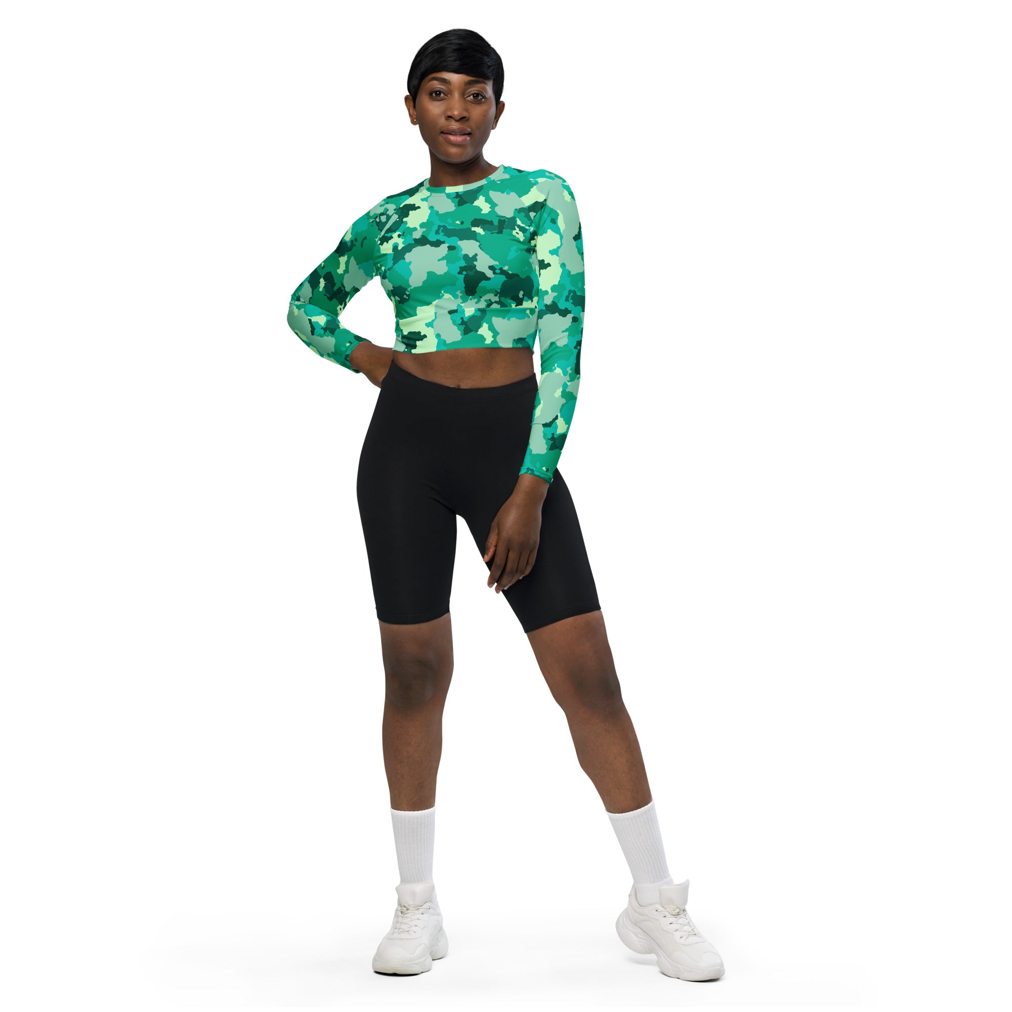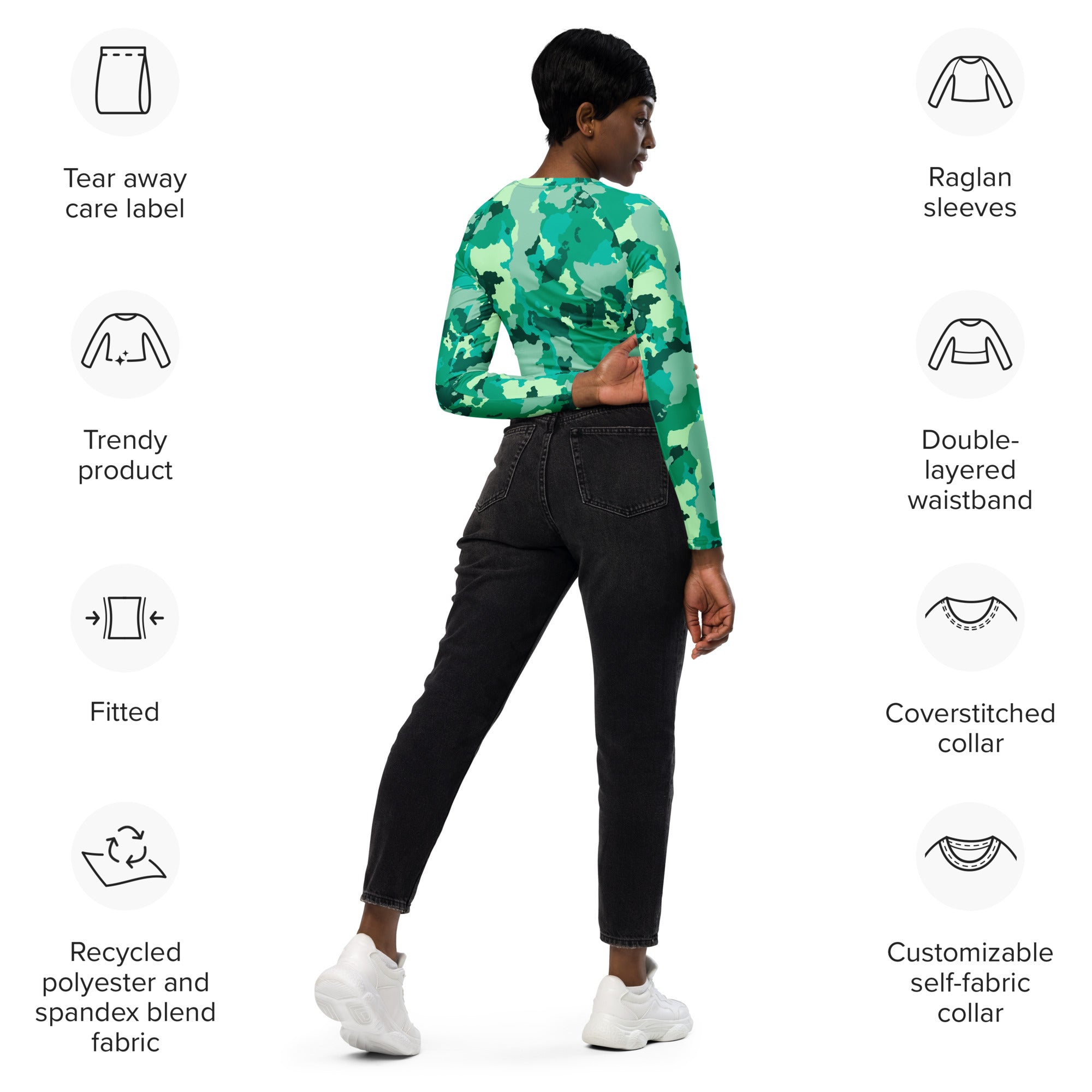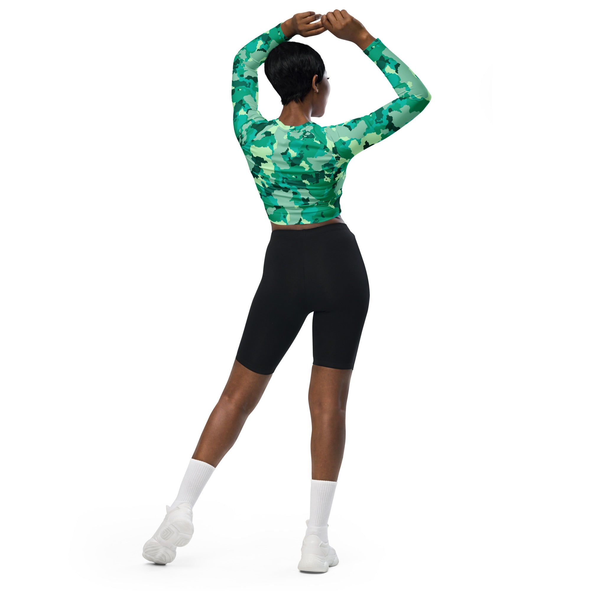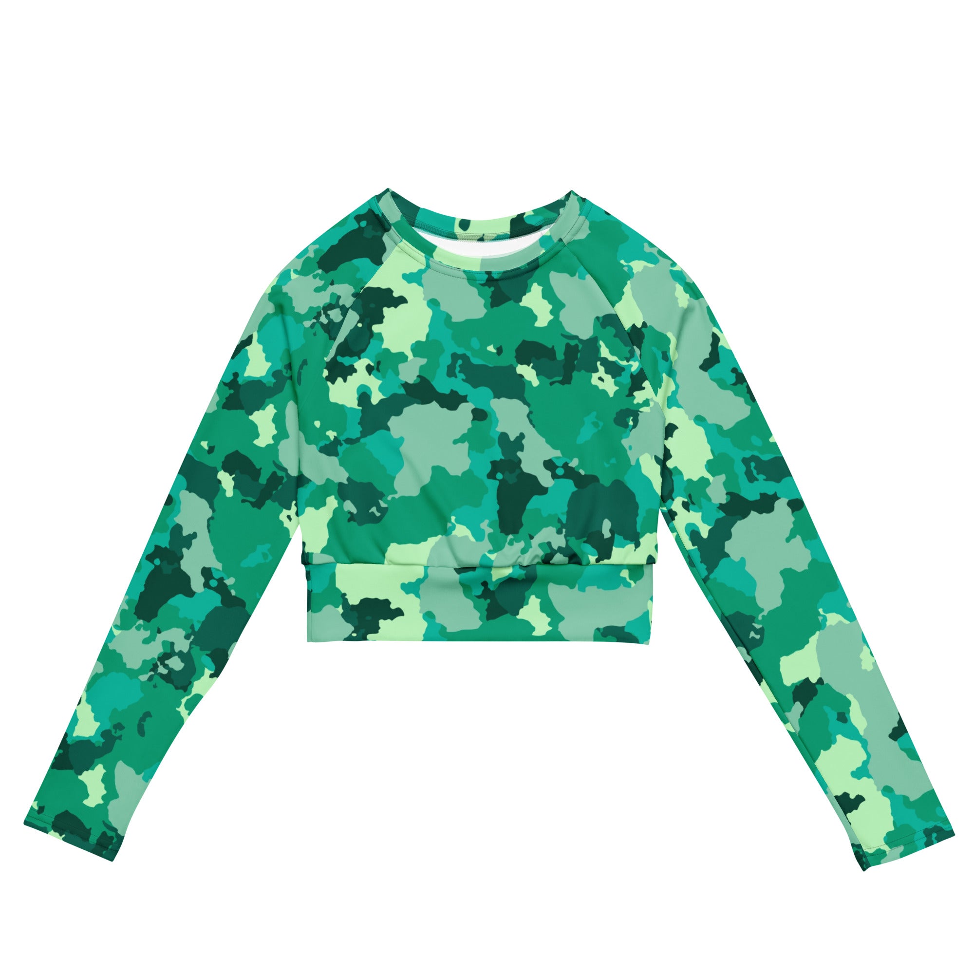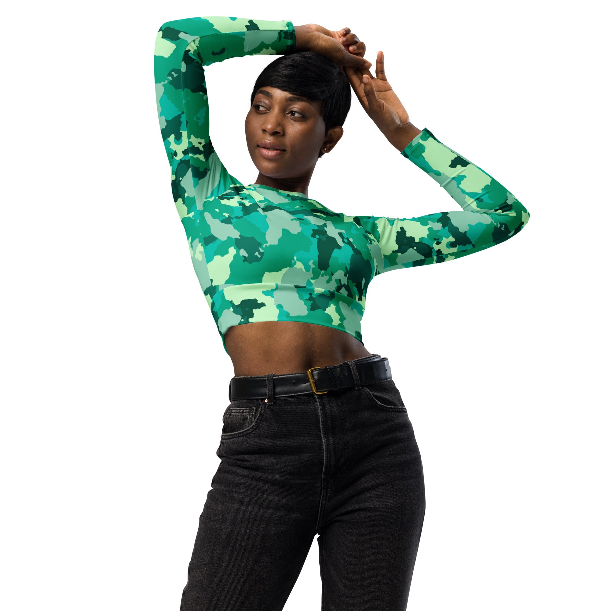 Camo Crop Top | Cyan Green Camouflage | Long-sleeve