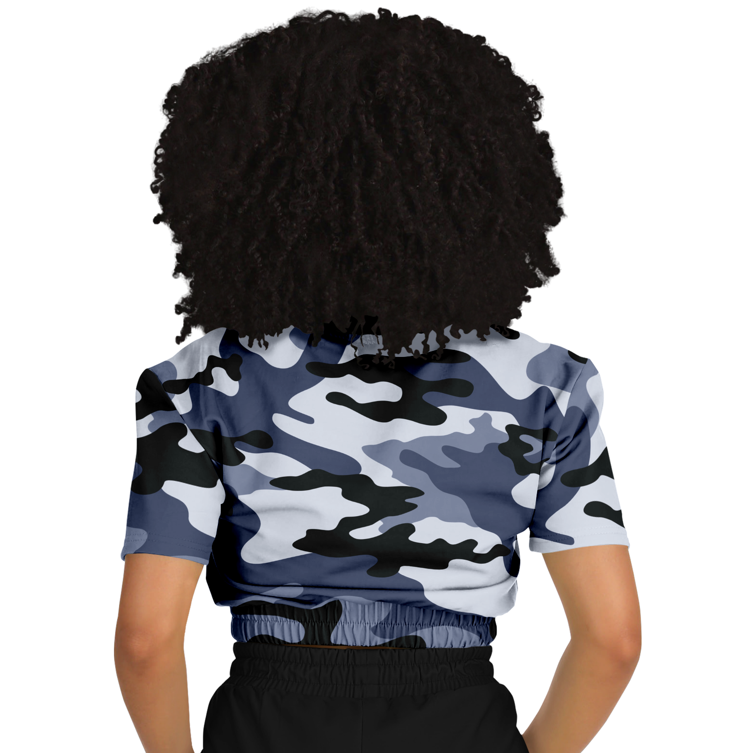 Expertly crafted from high-quality materials, our Camo Crop Top Sweatshirt in Light Blue Camouflage is the perfect addition to your wardrobe. With its trendy design and comfortable fit, this sweatshirt is sure to keep you looking and feeling great all day long. Stay on-trend and stylish with our must-have Camo Crop Top Sweatshirt.