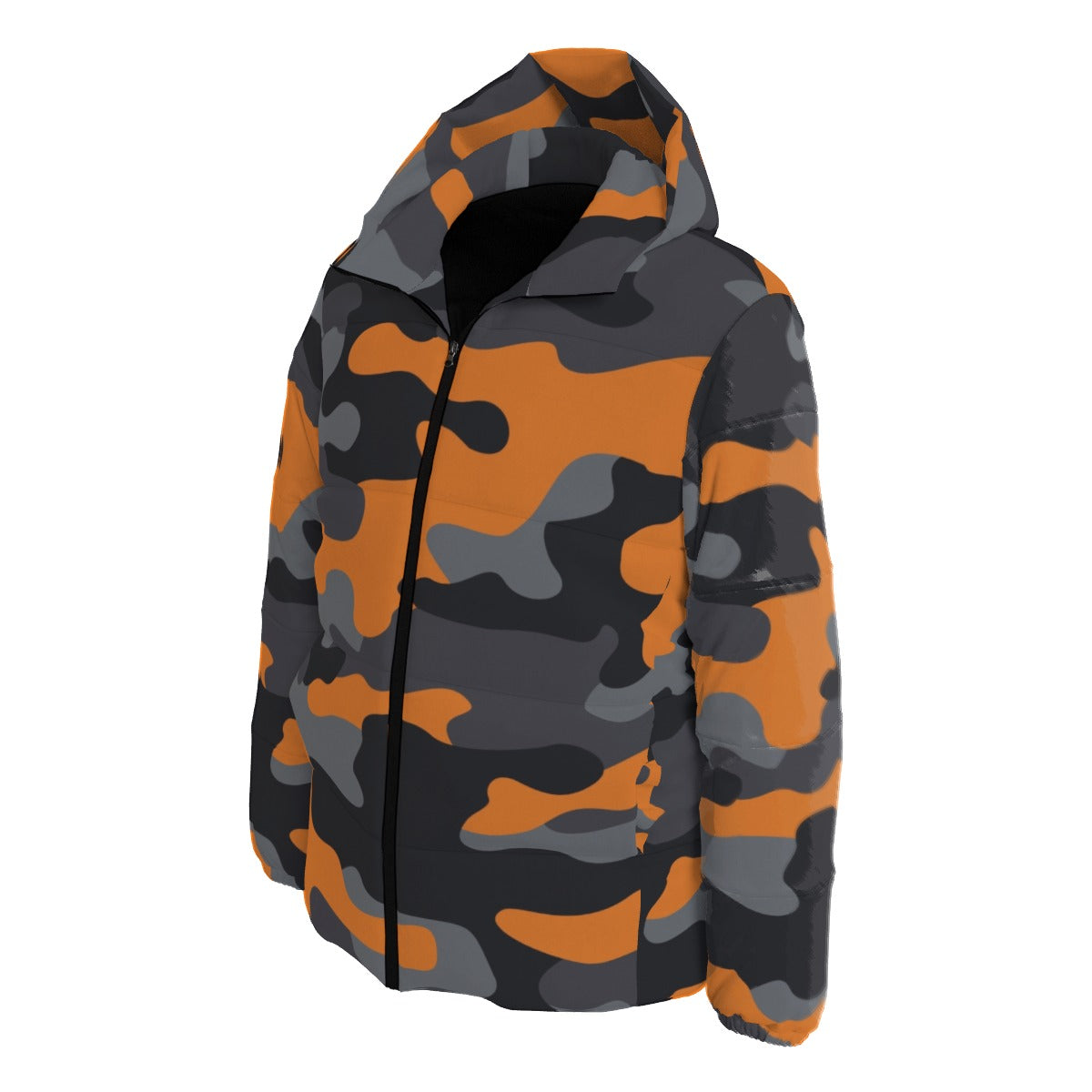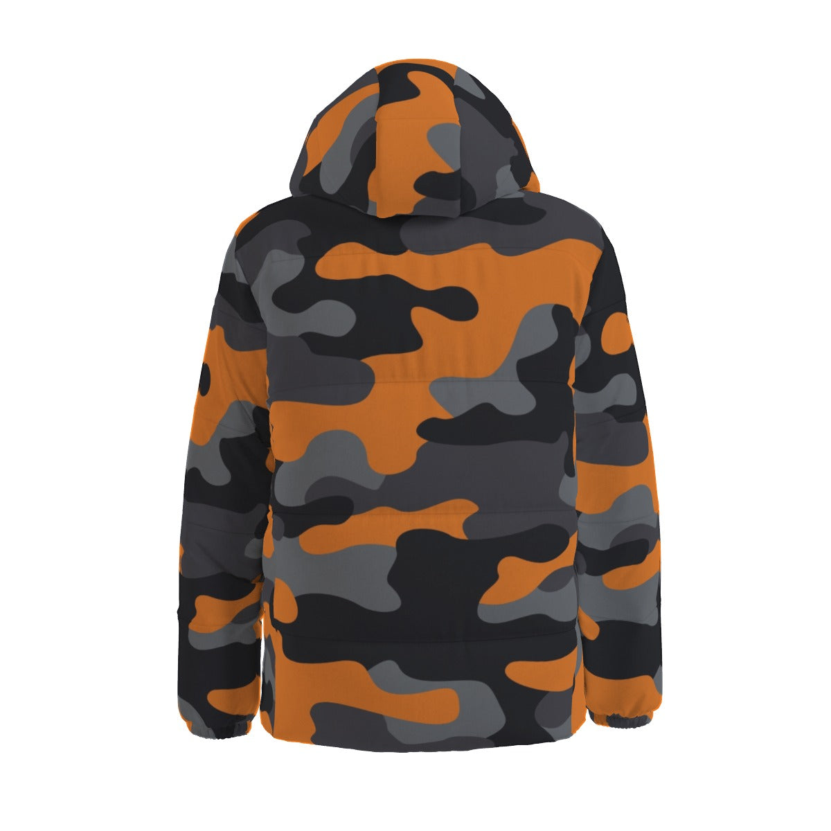 Stay warm and stylish with our Camo Down Jacket. Made with high quality materials, this jacket features a bold orange, black, and gray camouflage design, a cozy hood, and puffer insulation for ultimate comfort. Perfect for outdoor adventures or everyday wear.